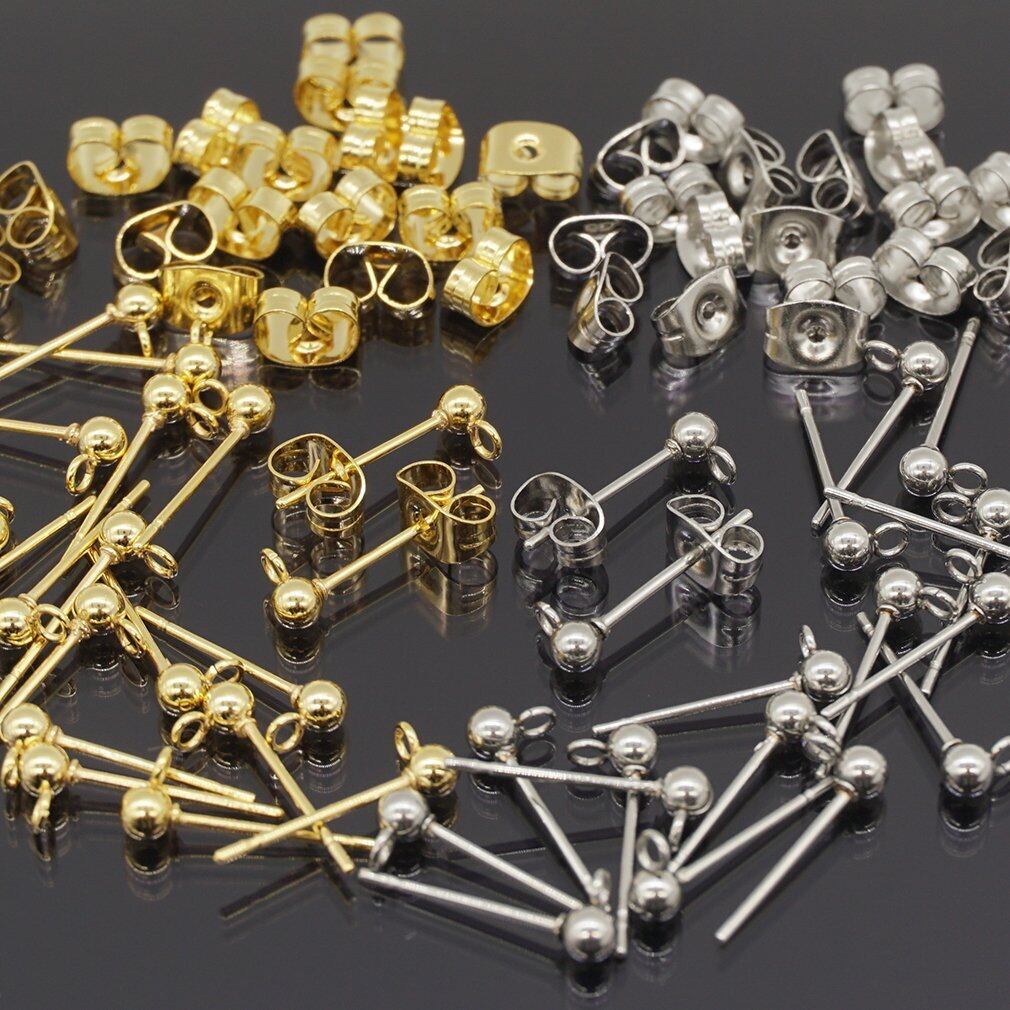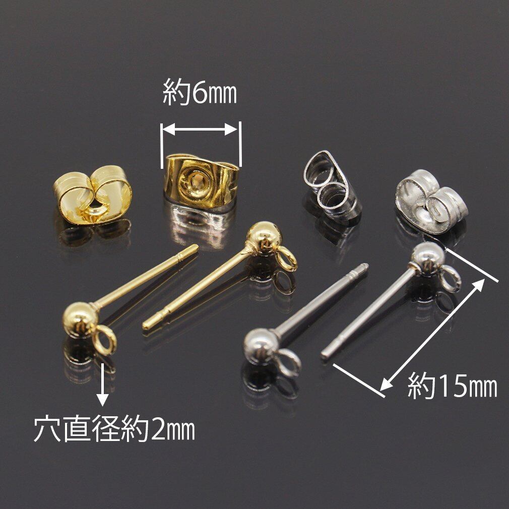サージカルステンレス カン付き ピアス パーツ 3mm 丸玉 キャッチ付き ゴールド シルバー 2色20ペア40個 セット