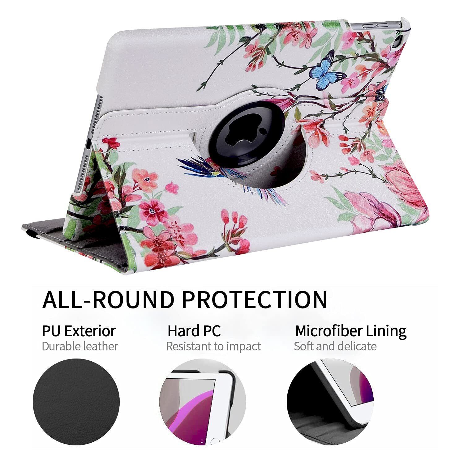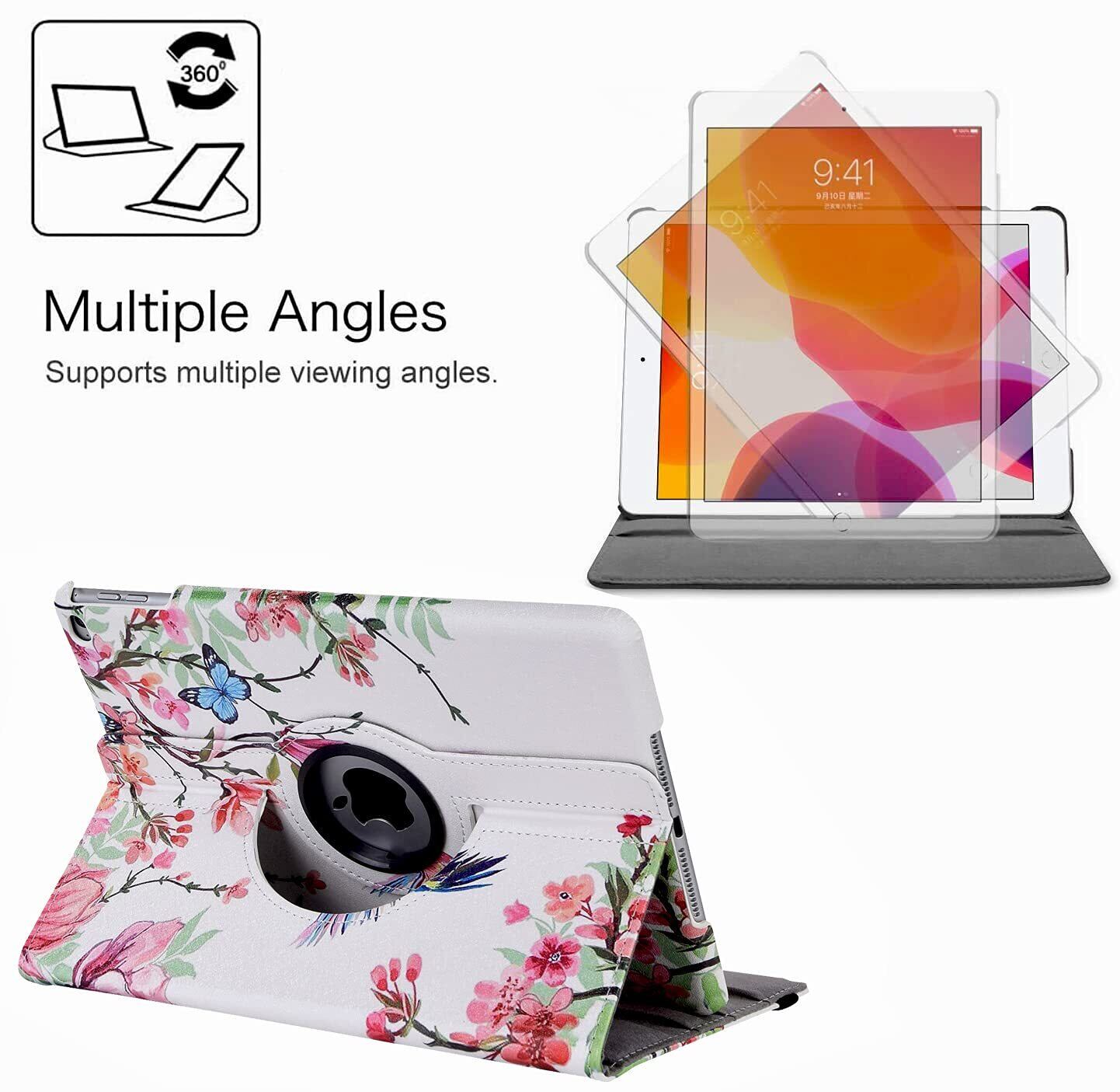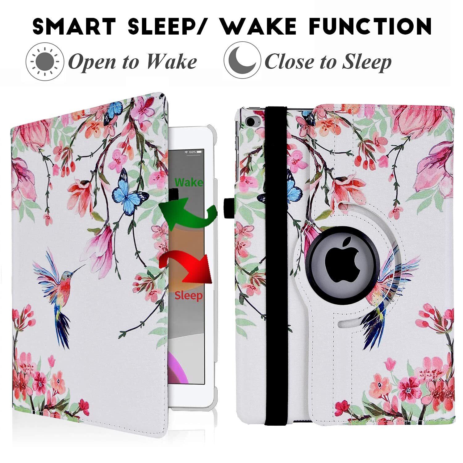 iPad 9.7 2018/2017ケース 新型(Newモデル)/iPad Air/iPad Air2カバー iPad 9.7インチ(第6、5世代)軽量 手帳型 360度回転スタンド オートスリープ機能 3段階調節可能 固定バンド 脱落防止耐衝撃 耐久性 おしゃれ (花と鳥)