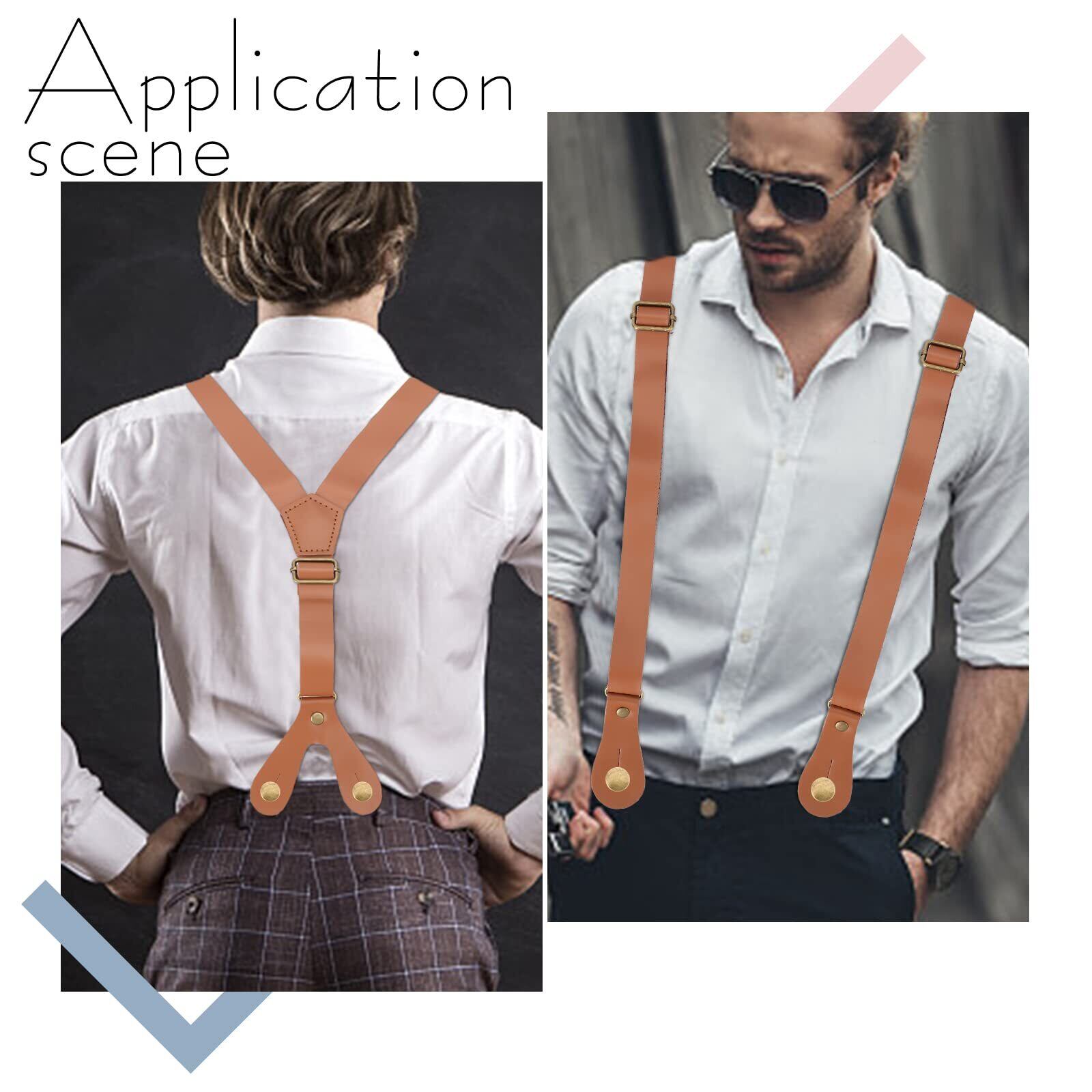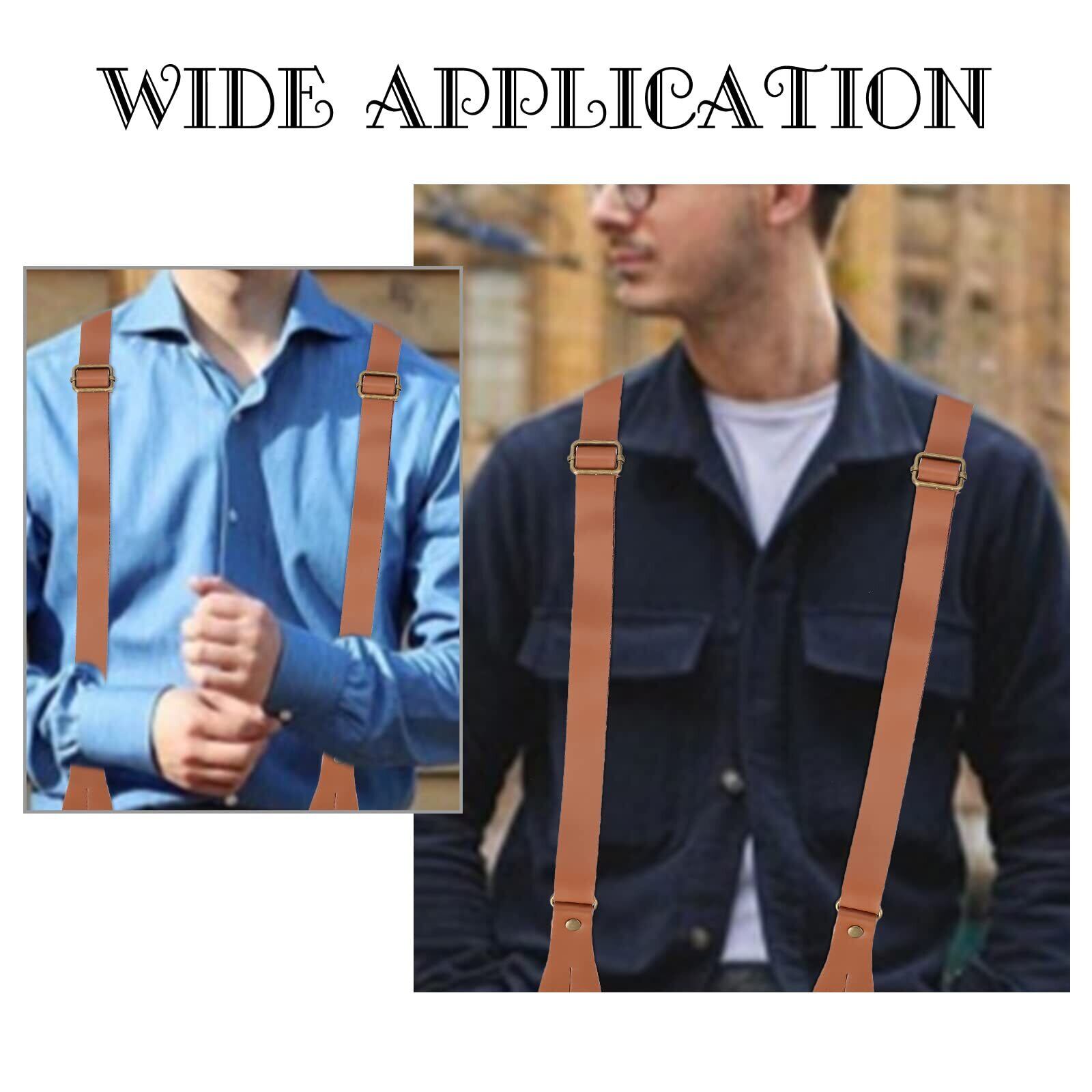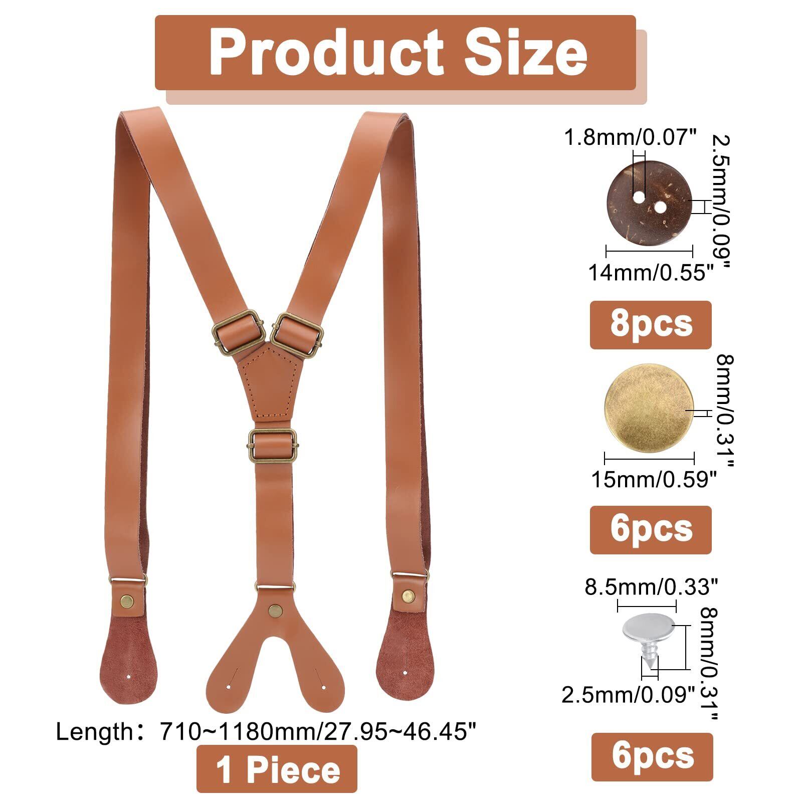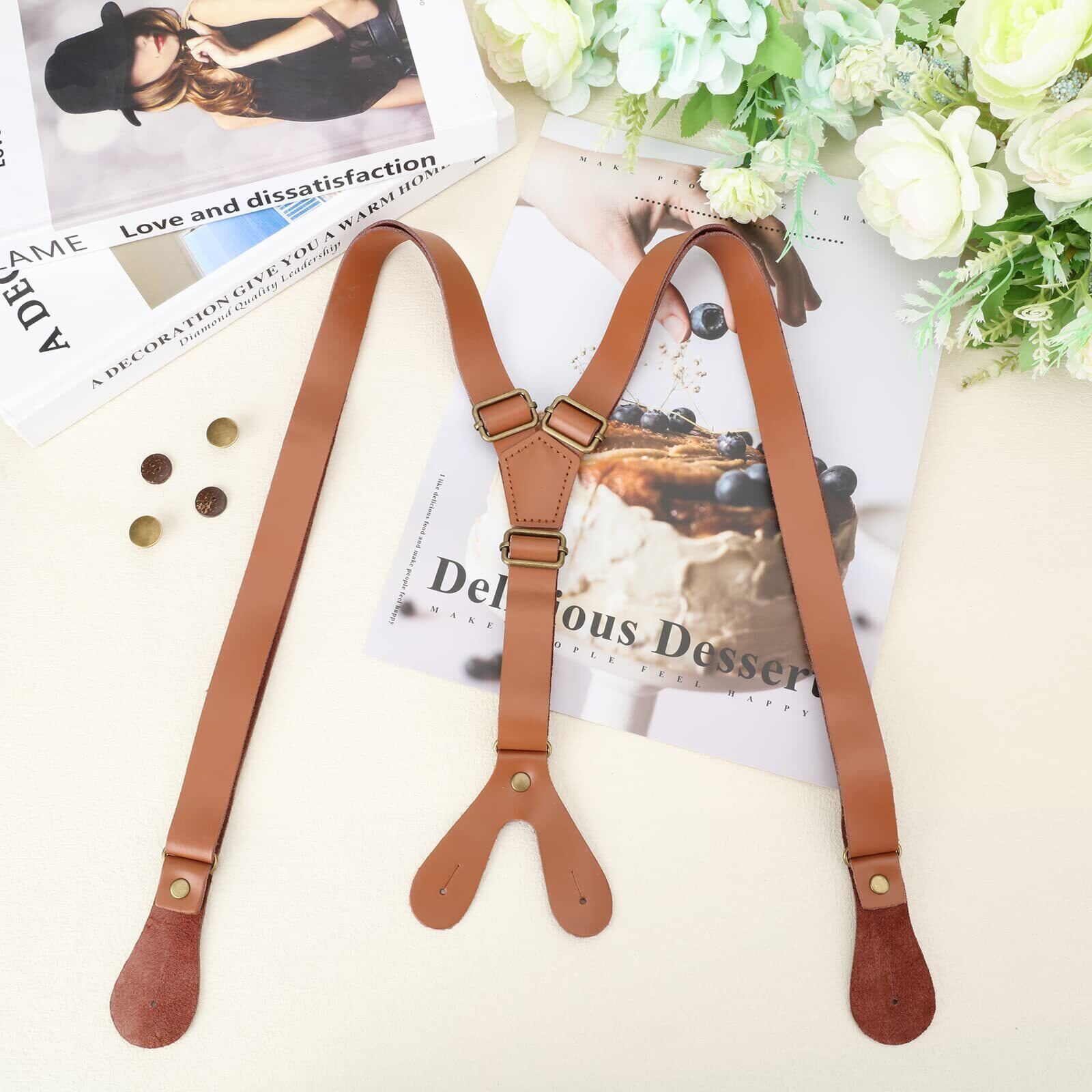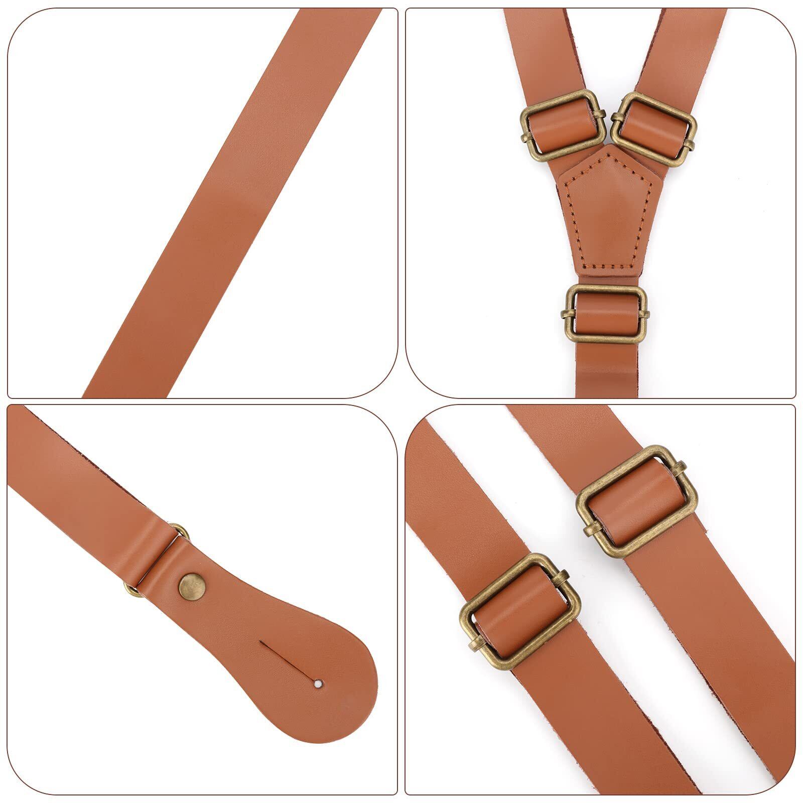 SUPERFINDINGS ブロンズ Y型レザーサスペンダー メンズ吊りバンド 調節可能な サスペンダー レザー 高耐久 長さ71~118cm ボタン ネジ付き 男女兼用 幅広タイプ 無地 サスペンダー レザー 衣装飾り 1本セット