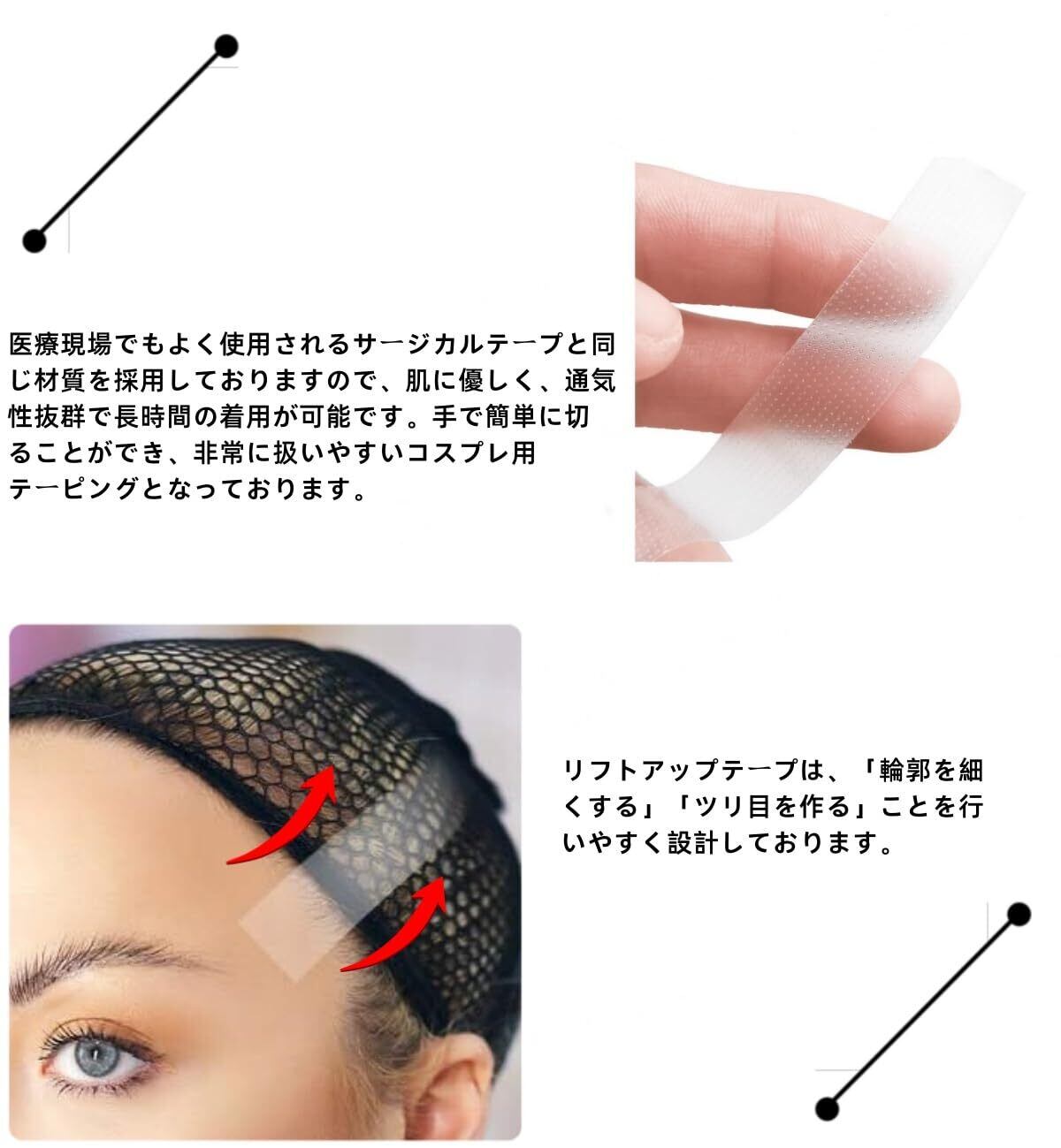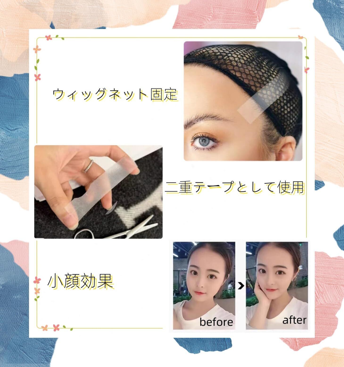【サイズ】:ウィッグネット,フリーサイズ、男女兼用。【素材】ナイロン、弾性布帛。リフトアップテープ(幅12.5mm*長さ4.5m)。ウィッグ固定用クリップ(長さ3.2cm)