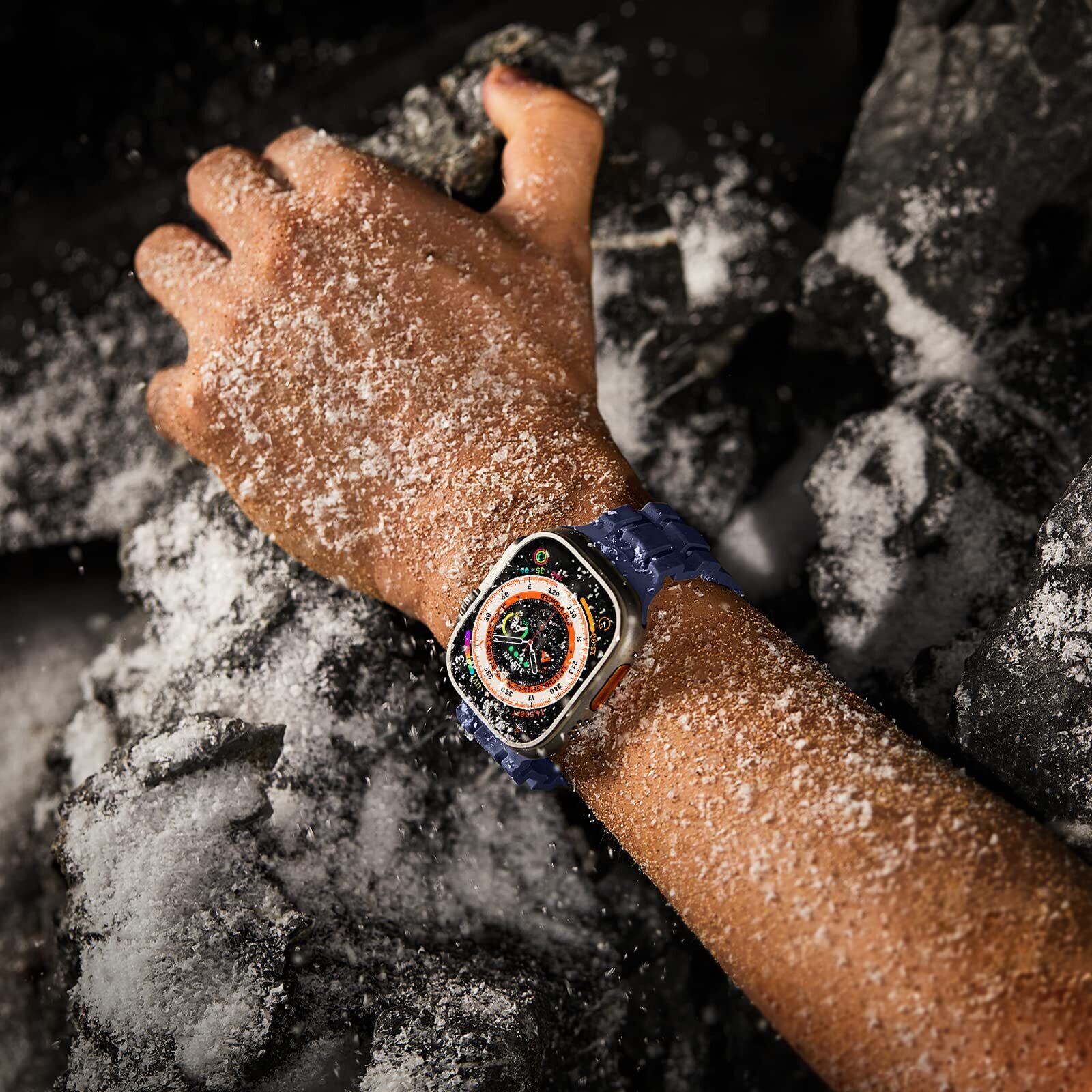 【極限スポーツ風】屈強なバンド造形、男性向けの荒っぽいスタイルです。このアップルウォッチベルトは優れた防水性と防汗性で、サーフィン、水泳、登山、ハイキング、キャンプ、ロッククライミングなど冒険スポーツ用には最適です。