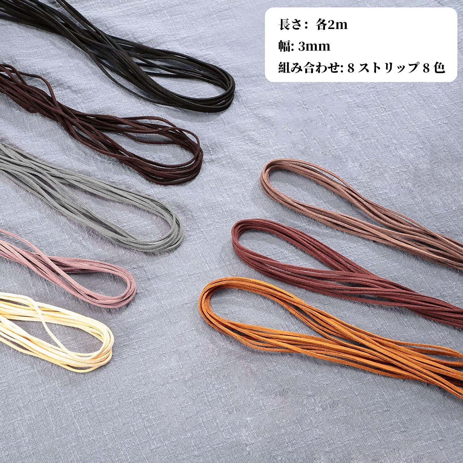 スエード 革紐 8色セット 各長さ2m 全長16m 幅3mm 革ひも 皮ひも レザー 紐 レザークラフト アクセサリー用紐 DIY 手芸材料 スウェード調