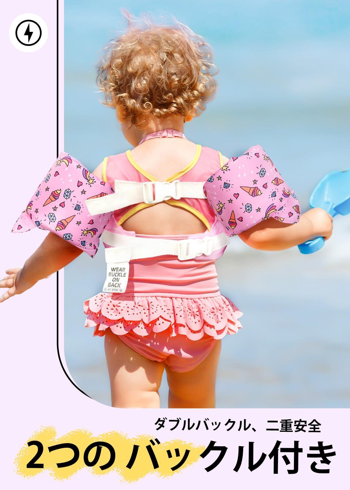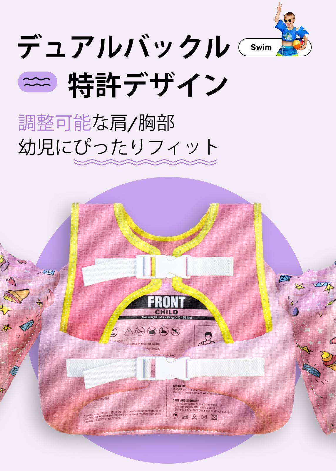USCG 規格 (米国沿岸警備隊承認 ): 水泳指導用の浮力補助具) 検証済み | アームウィング付きの幼児用浮力ベストは、水中でお子様を安全に保ち、プールでの水泳に最適です。