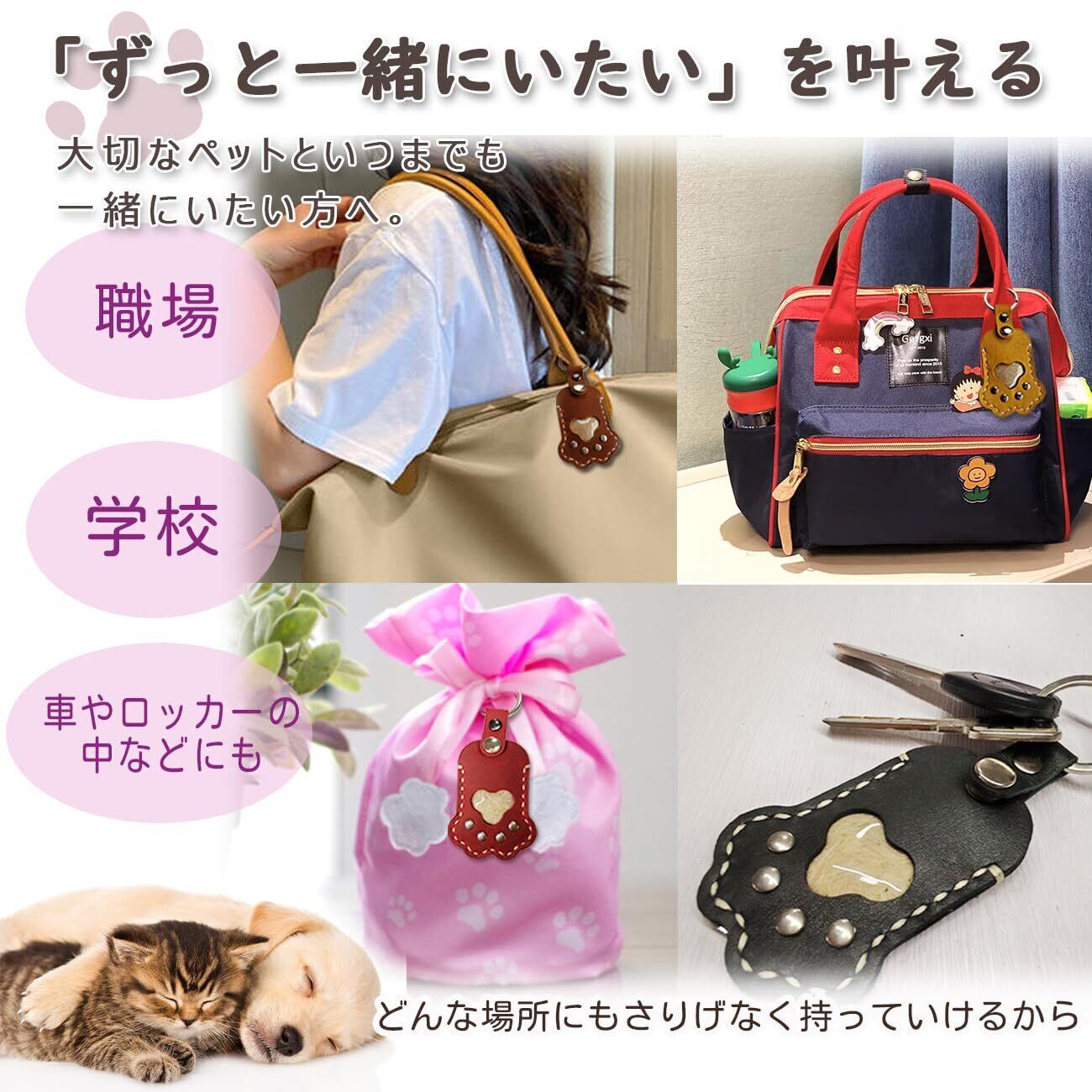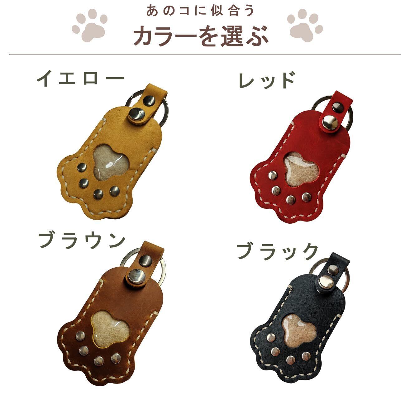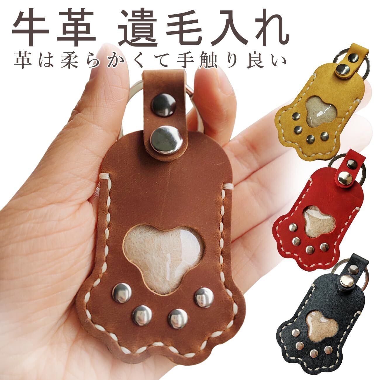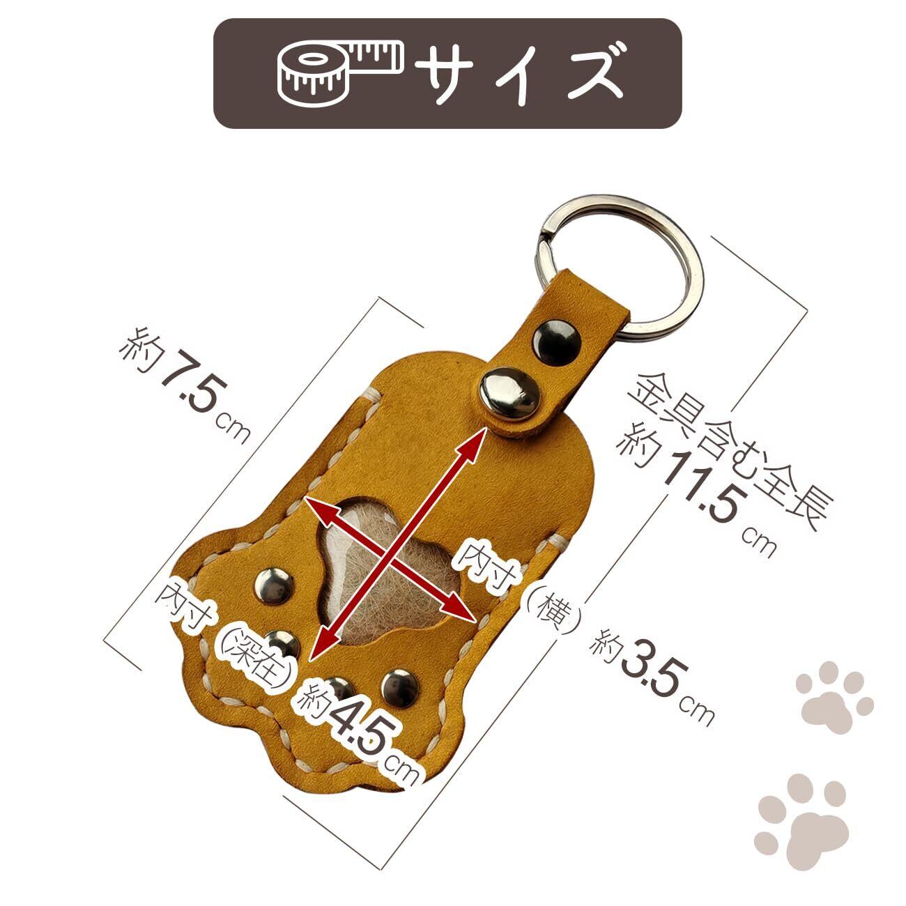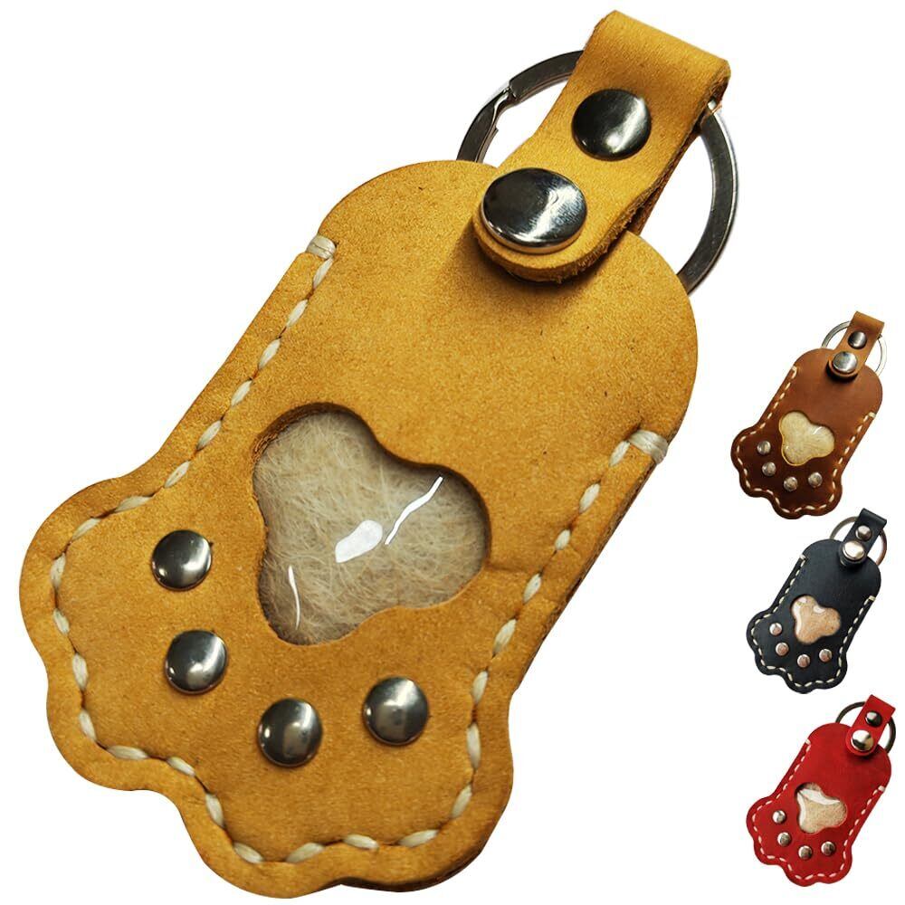 【大切なペットとずっと一緒】大切なあのコの遺毛を安心して納めておくことができる。天然皮革(牛革)の遺毛ケースです。肉球のカタチにくり抜かれた窓からはあのコの毛を見ることができます。キーホルダーのリング付きで一緒にお出掛けするときも安心です。