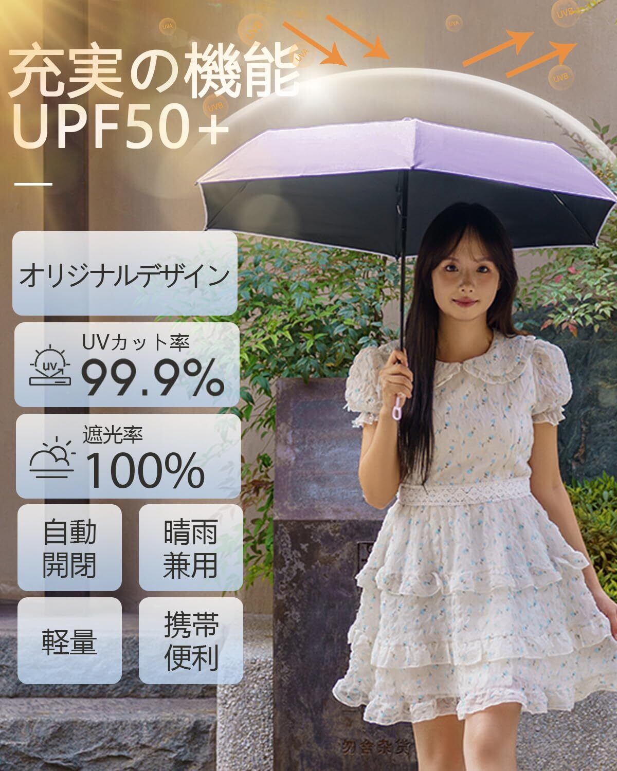 【UVカット遮光率100 折りたたみ日傘】高密度傘生地と黒ゴムの完璧な組み合わせ、優れた品質、UPF+50、UVカット率99%以上、完全遮光100%、遮熱効果付き。 特に夏場は、熱中症予防にもなります。 日差しが強くなくても、紫外線は強いので、この傘で美肌をしっかり守ってくださいね