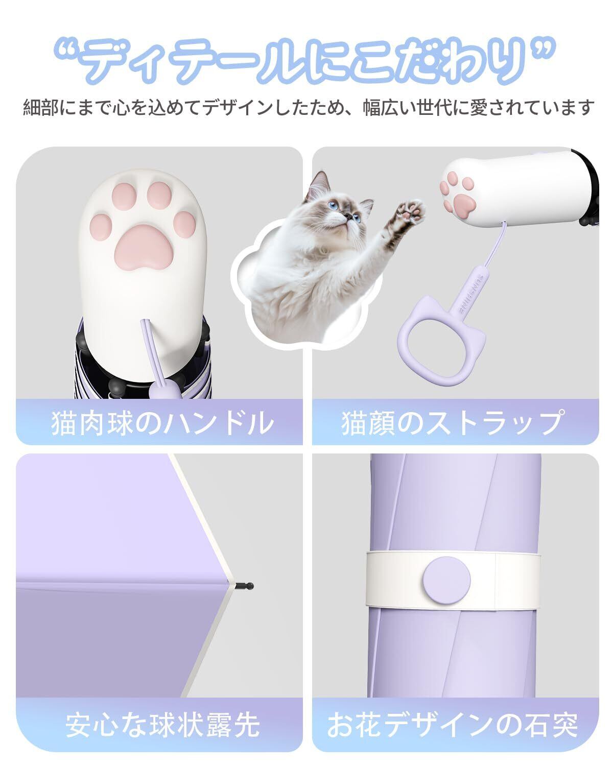 【可愛い猫の肉球 日傘】日傘の持ち手には、可愛らしい猫爪デザインが施されており、見た目もユニークで楽しい気分に。実用性と可愛さを兼ね備えた男女兼用のおしゃれな折りたたみ傘です。母の日、誕生日、敬老の日、お祝い、入学、卒業、バレンタインデーなど、上質な贈り物としてご利用いただけます