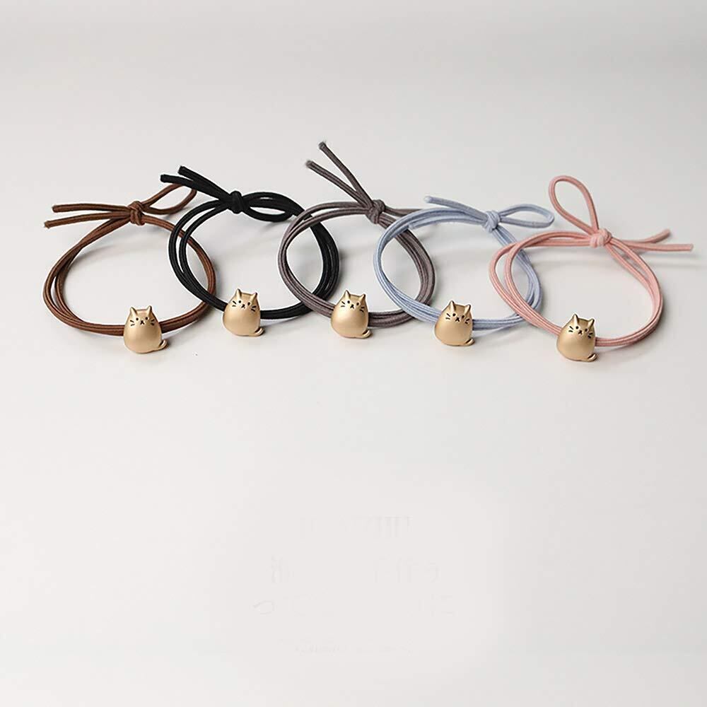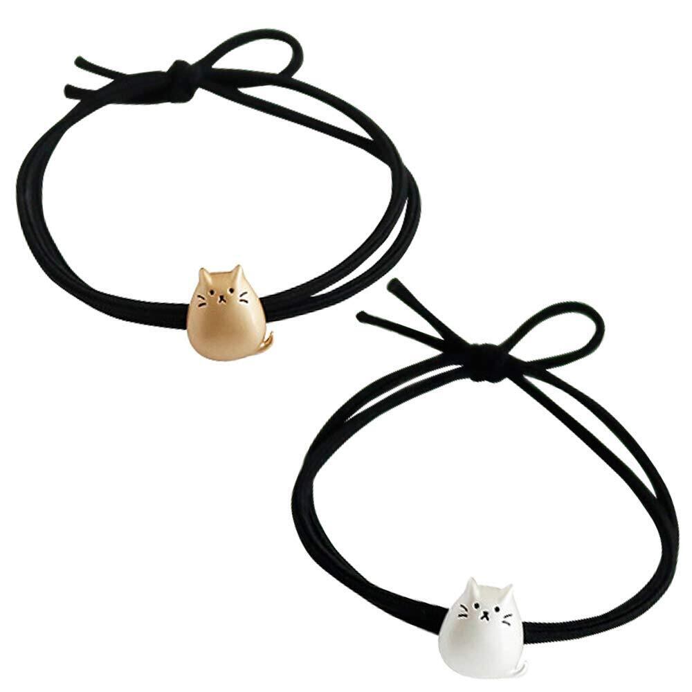 moin moin ヘアゴム ヘアアクセサリー レディース ブレスレット もふもふ ぷっくり もっちり 猫 ねこ ミニサイズ / 2種セット / シルバー & ゴールド (ゴム色 : 黒 ブラック)