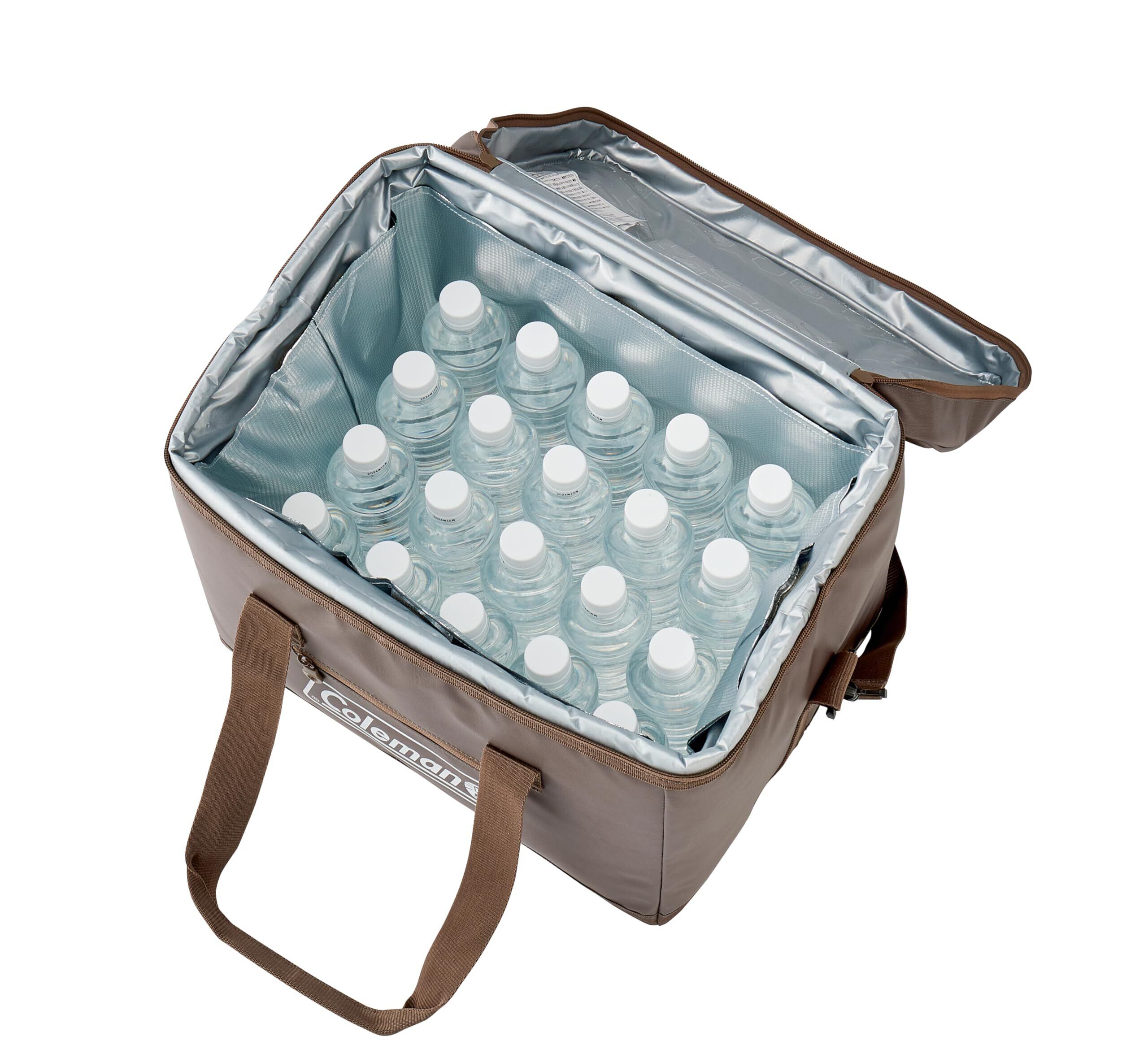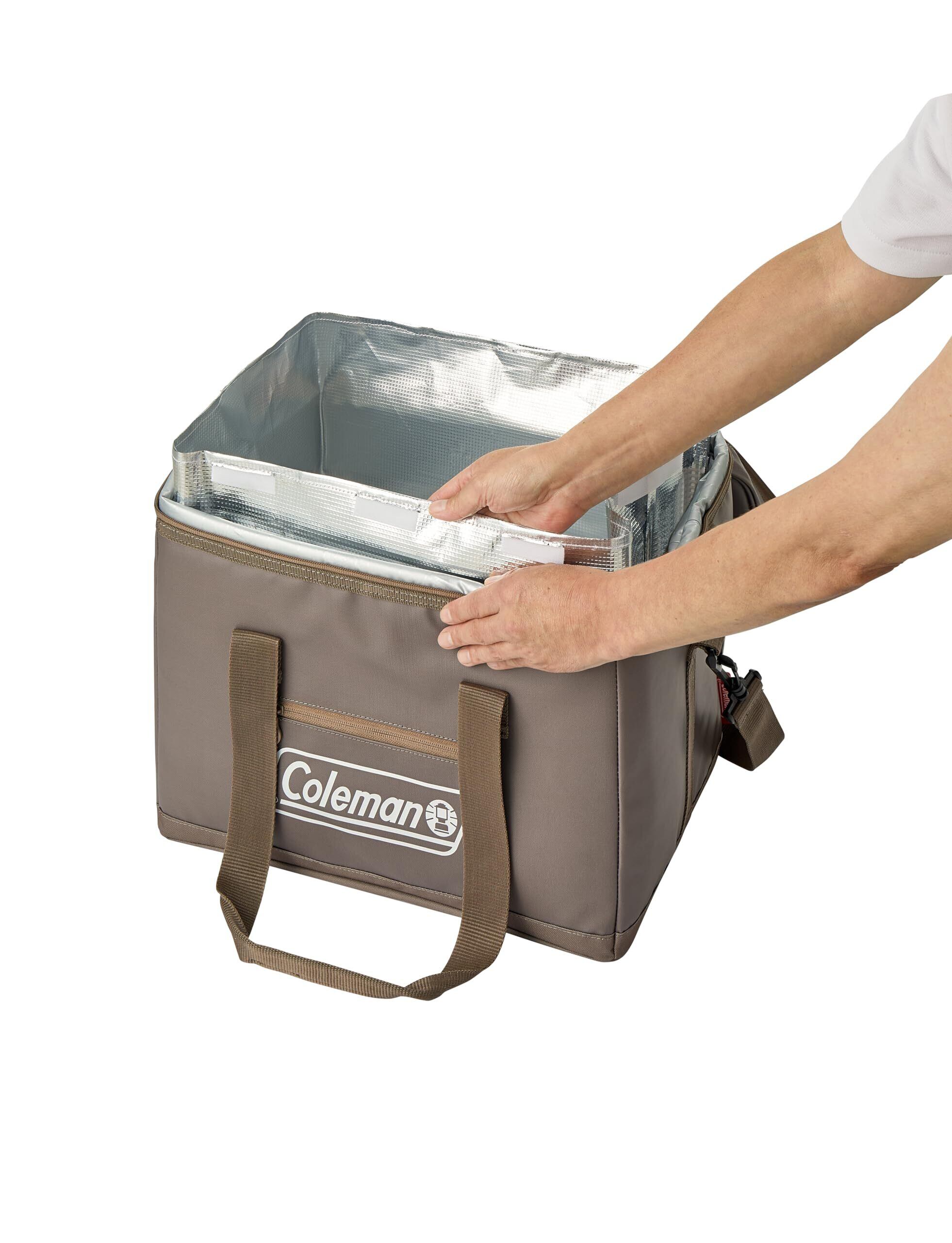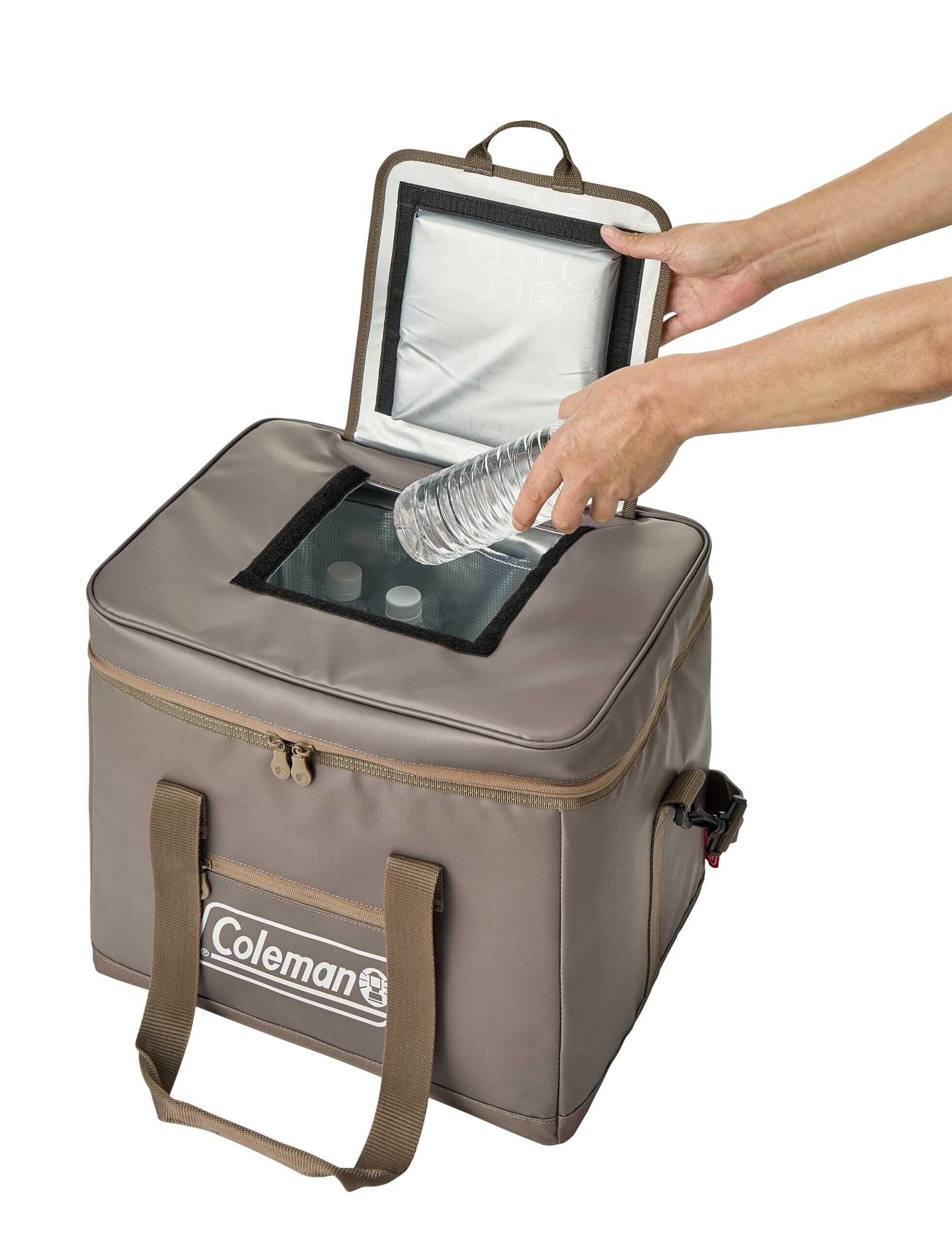 【冷気をブロック】上部に取り出し口(クイックサーブオープニング)があり、クーラー内の冷気を逃す事なく中の物を素早く簡単に取り出すことができます。また、メインファスナーから冷気を逃さないように断熱フォームでカバーする設計となっています。