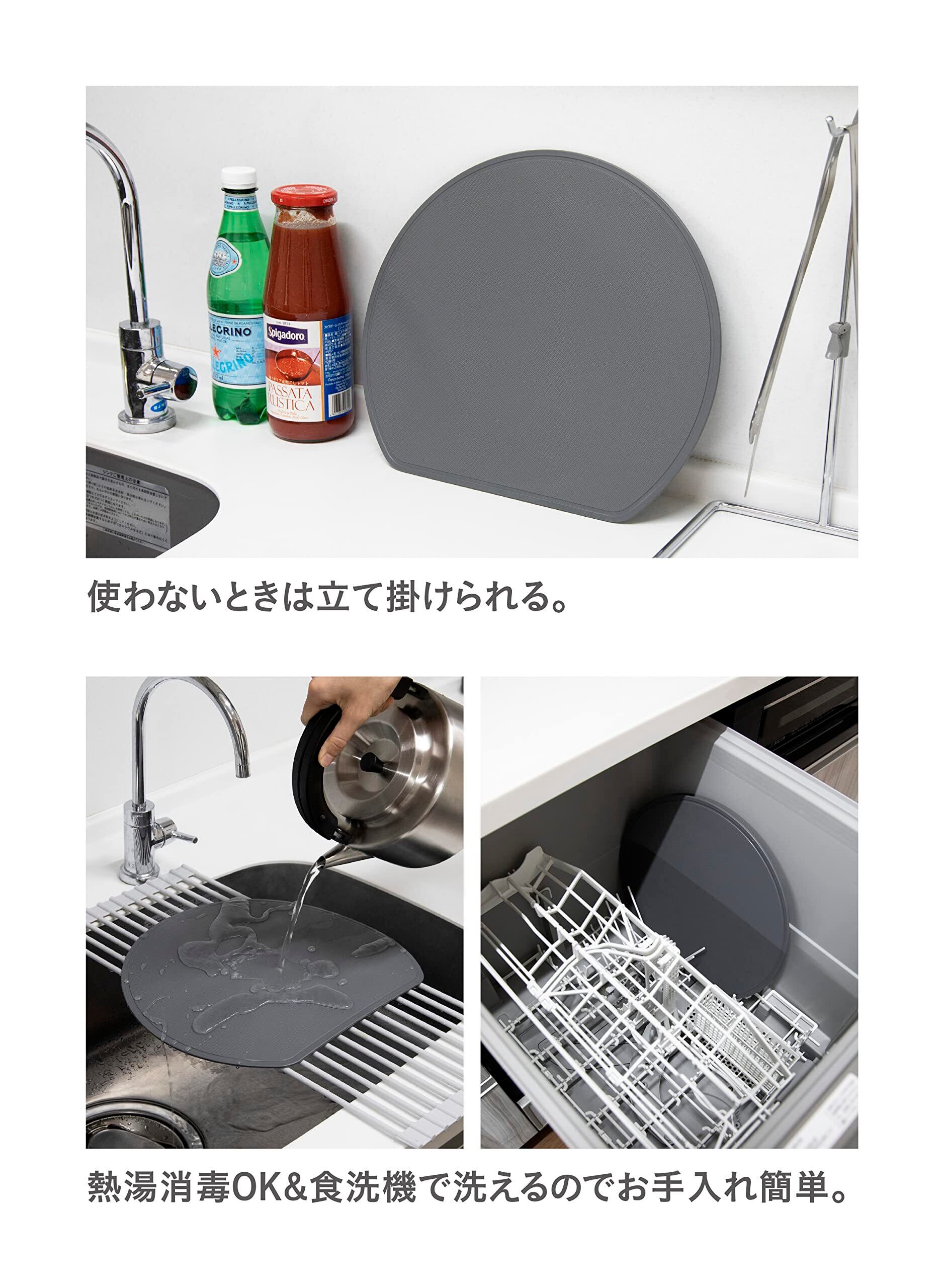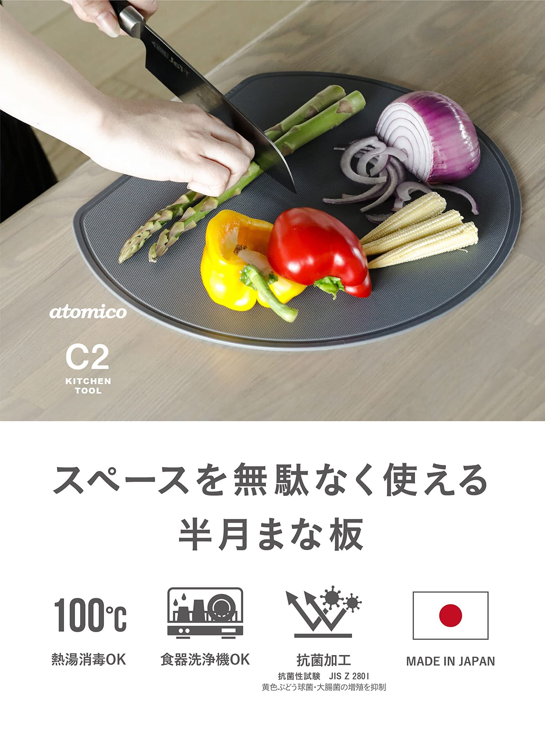 シービージャパン(CB JAPAN) まな板 半月型 [32×28cm] ダークグレー 抗菌仕様 日本製 食洗機対応 熱湯消毒OK スペースを無駄なく使える半月まな板[抗菌] atomico