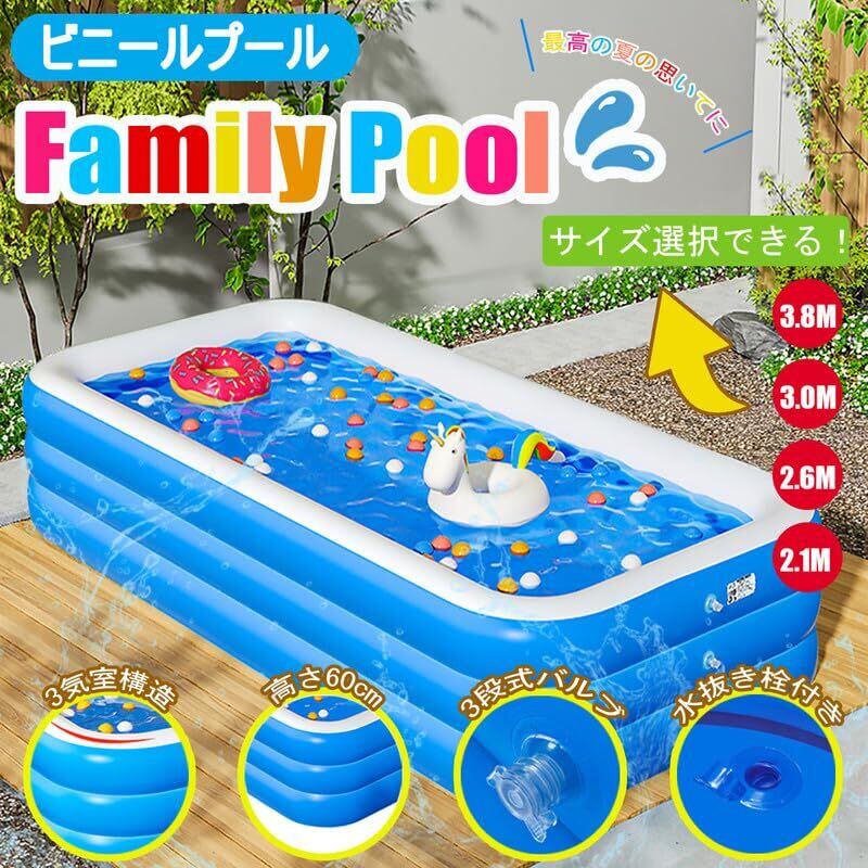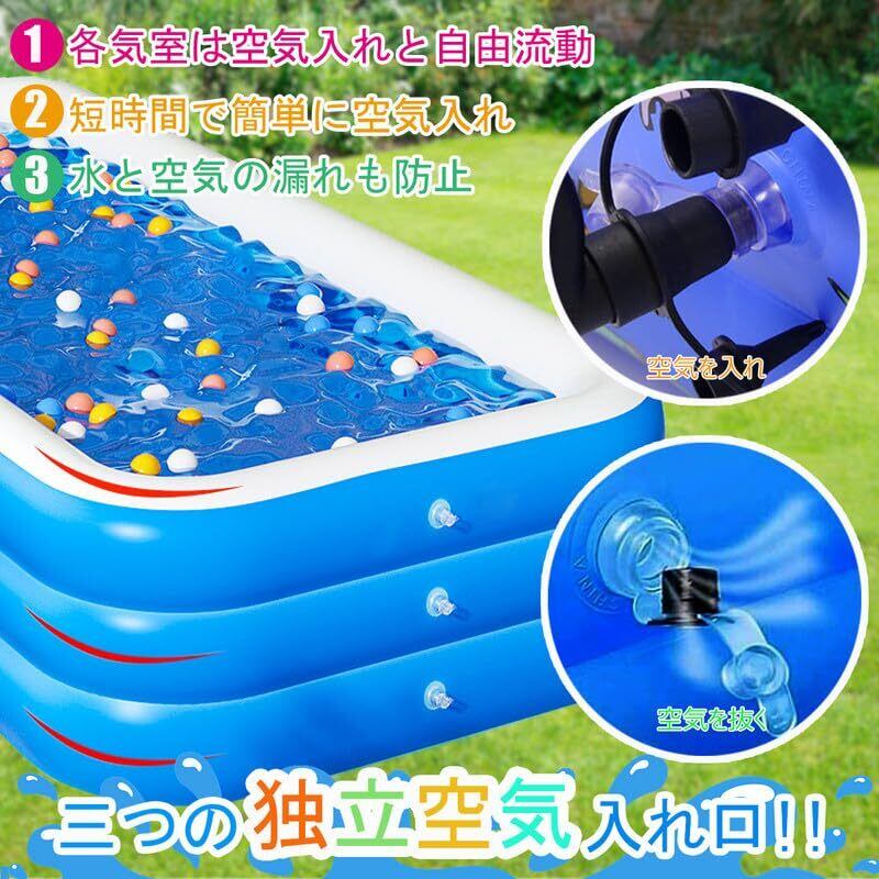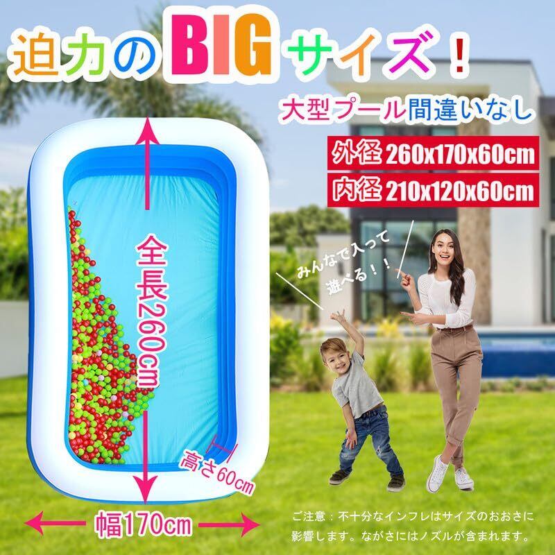 ビニールプール 大型 家庭用プール 2.6M 260x170x60cm ファミリープール 大容量 3つ気室 夏の日 スイミング 屋内 屋外用 暑さ対策 水遊び お庭用 ビーチ用
