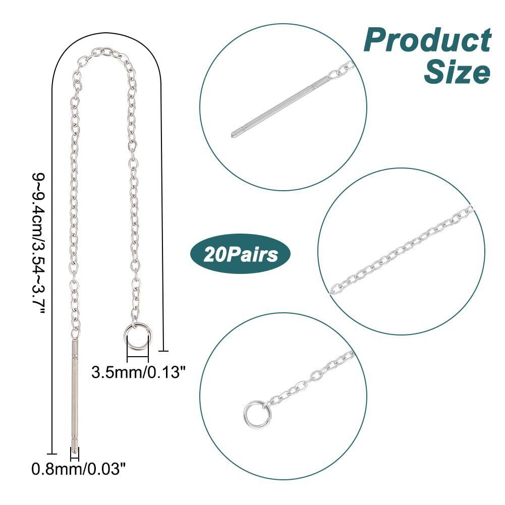 仕様&サイズ:チェーンピアス:長さ:90~94mm、幅:1.2mm、リンク:1.5x1.2x0.3mm;リング:3.5x0.5x2.5mm、ピン:0.8mm、20ペア入り;素材:ステンレススチール;素晴らしいチャームを加えて、あなたのユニークな特徴を示してください。