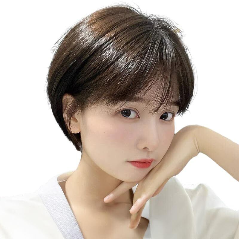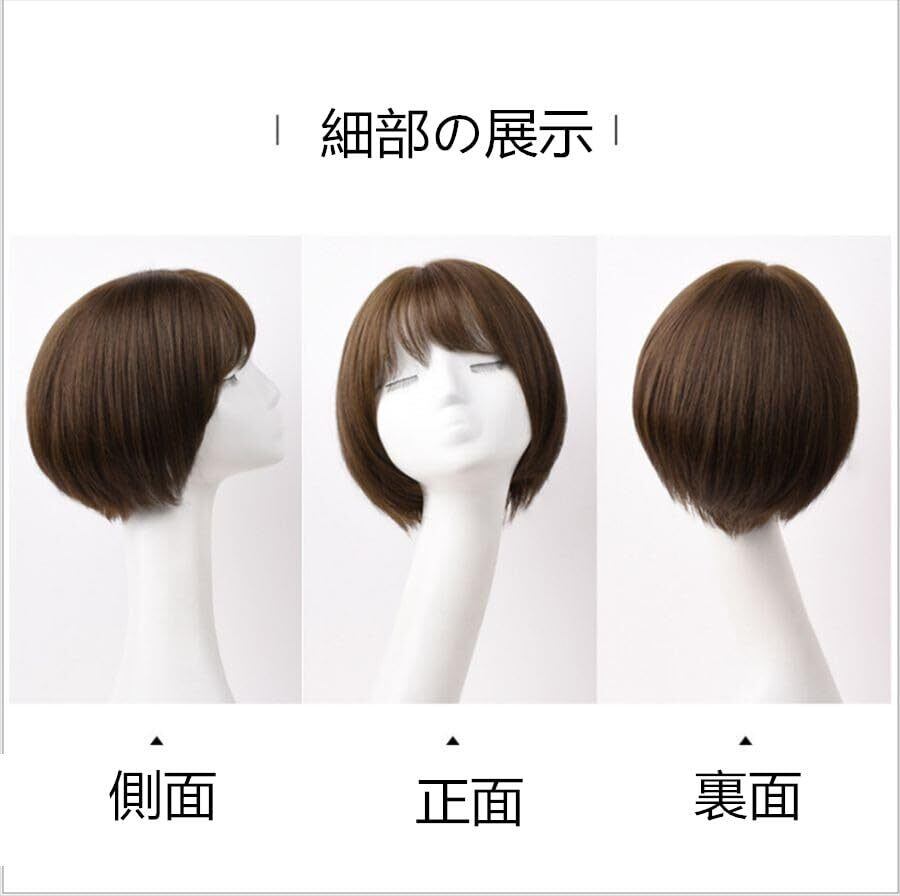 IFLY 人毛 ボブ ウィッグ ショート レディーズ フルウィッグ かつら 女性用 ストレート 自然 小顔 原宿系 空気前髪ウィッグ 日常 調整可能 通気性 人気 定番 ウィッグ (ブラウン-分け目遞針)