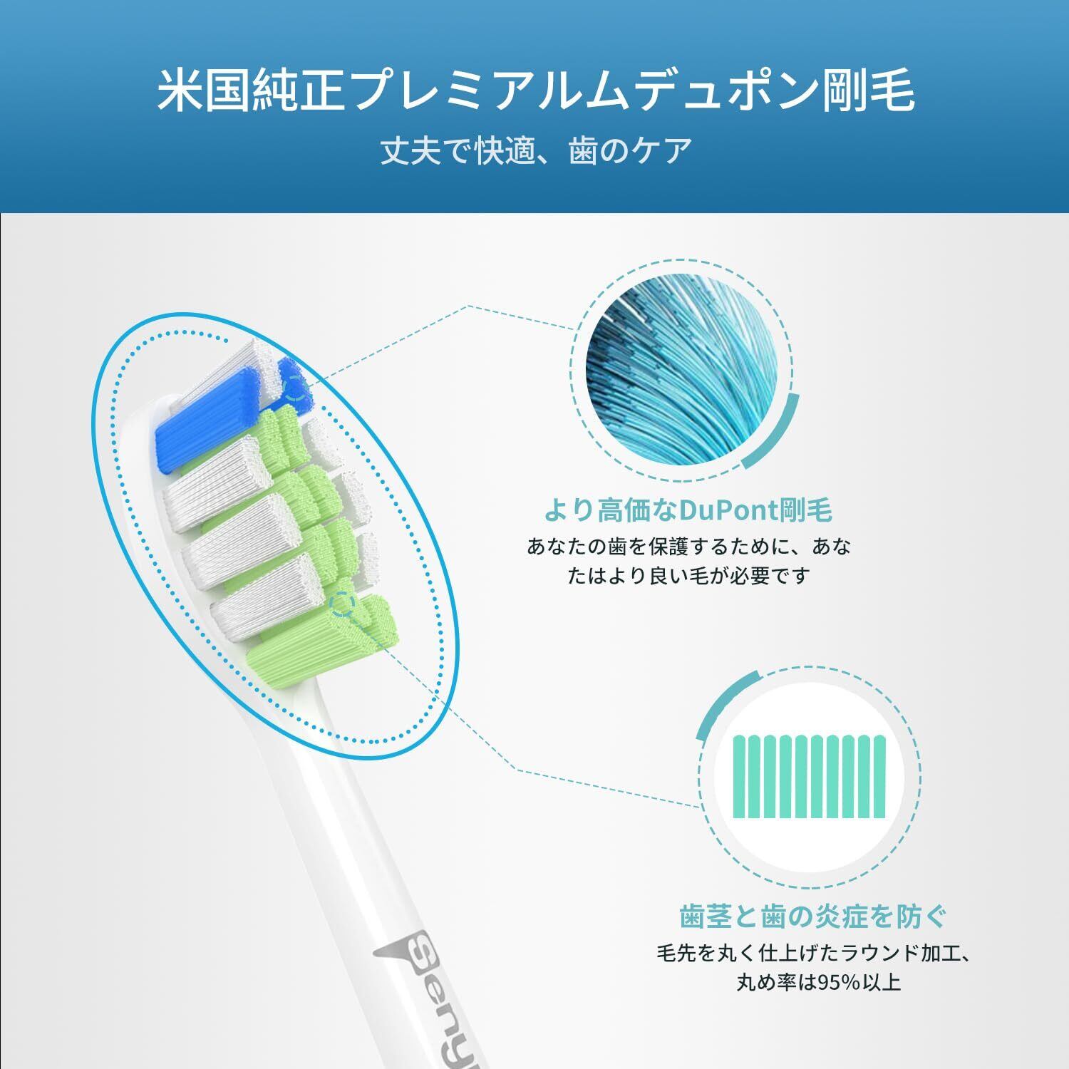 白い歯が輝く魅力的な笑顔:Senyum電動歯ブラシ 替えブラシヘッドの毛は、密集をしていて、ブラッシング接触面積を最大化にして、手動歯ブラシより7倍以上のクレンジング効果を提供できます。僅かな1週間で効果的なホワイトニングを実現します!