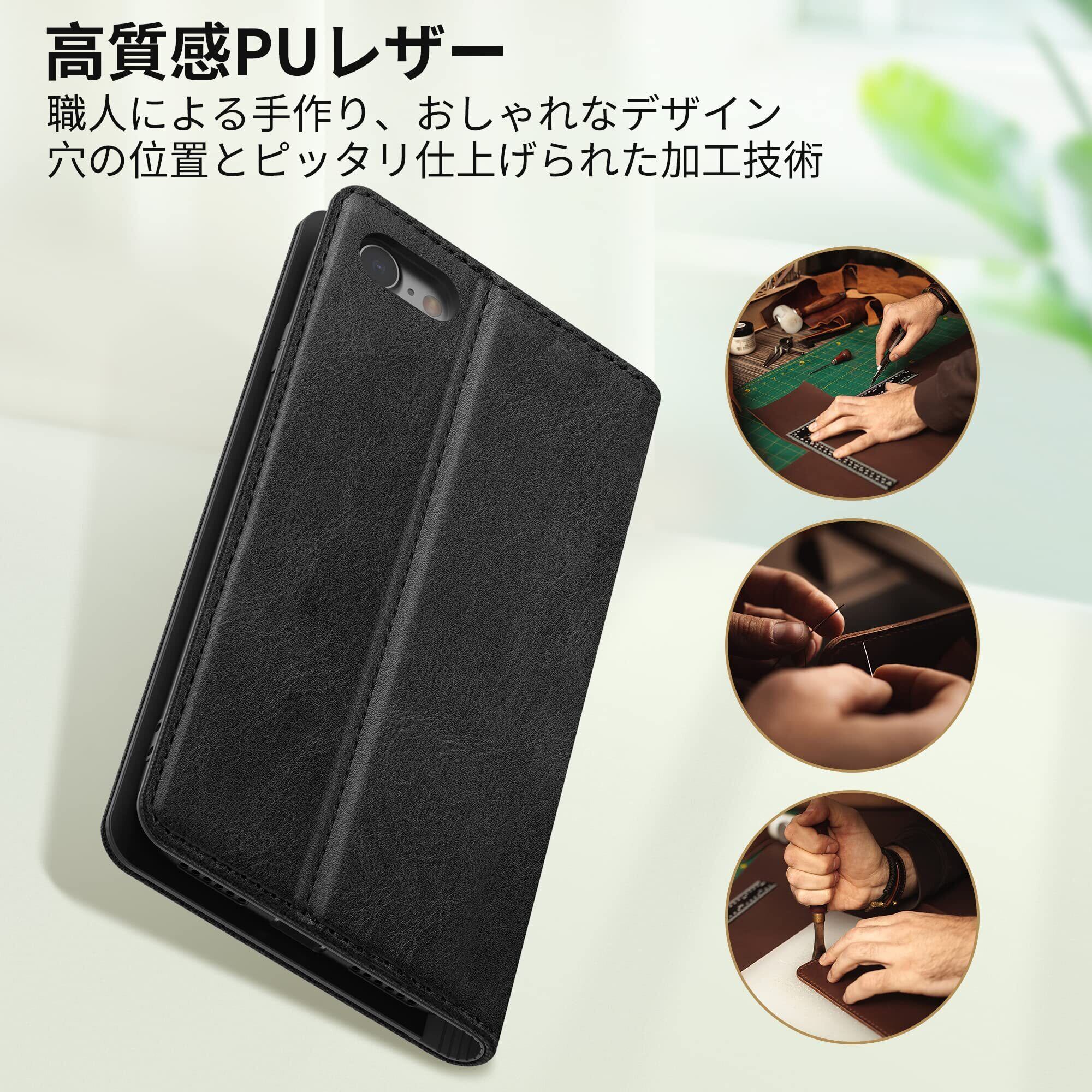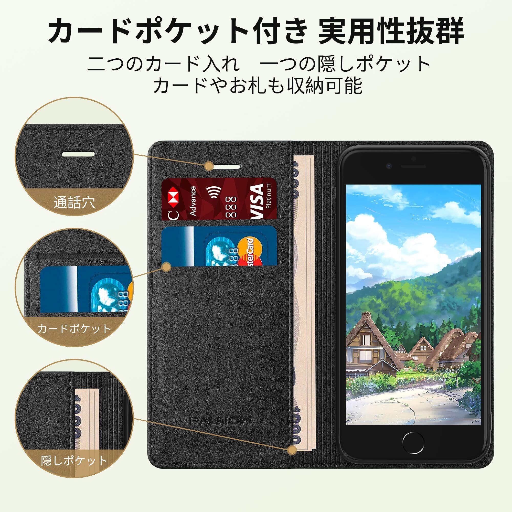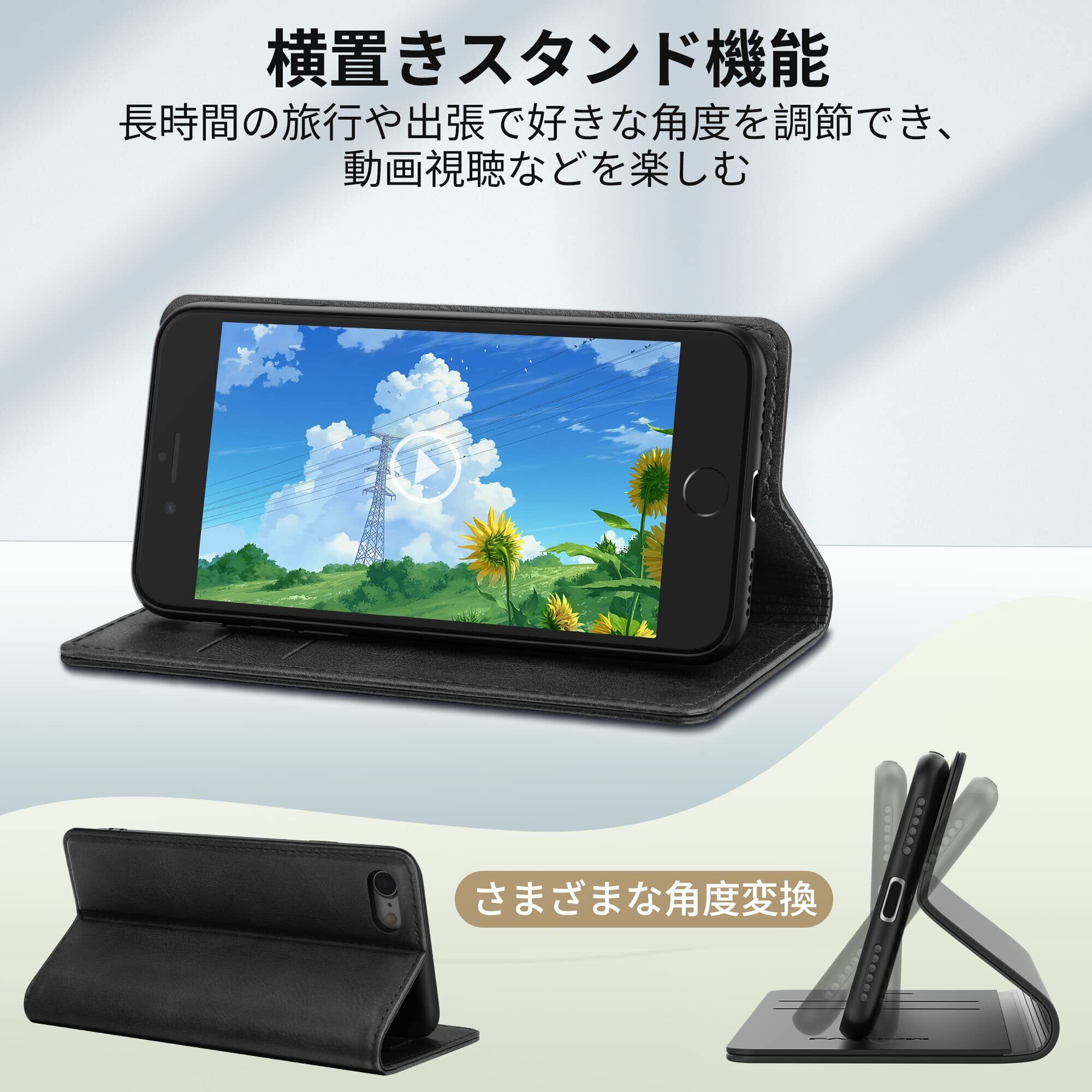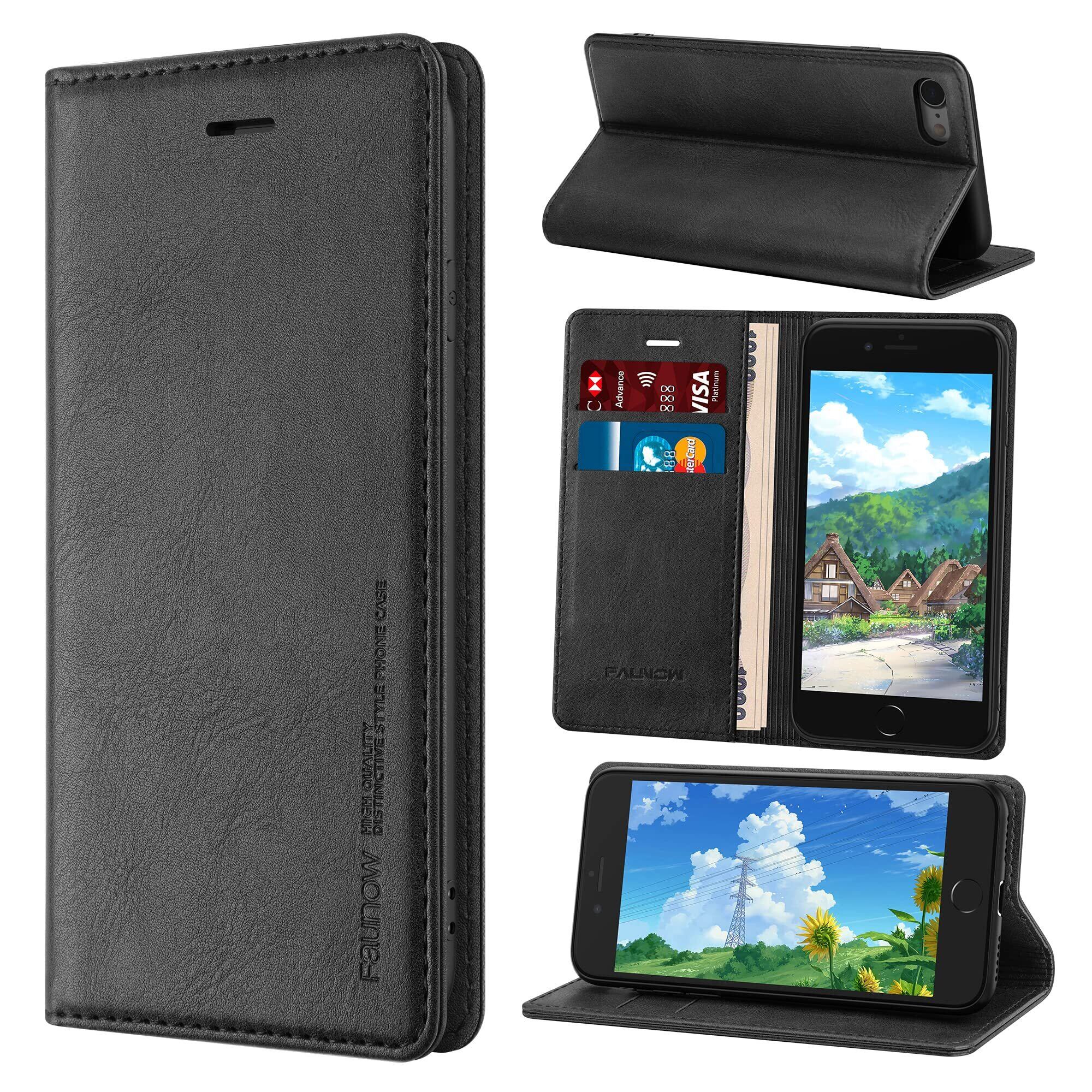 FAUNOW iPhone SE ケース 手帳型 iPhone8 ケース 手帳型 iphonese第3世代 第2世代 ケース スマホケース iphone se iphone se2/se3/8/7 ケース 手帳型 PUレザー 携帯ケース 耐衝撃 放熱性 スマホケース 手帳型 マグネット式 軽量 薄型 全面保護 スタンド機能 カード収納 4.7インチ対応 アイフォンse ケース(ブラック)