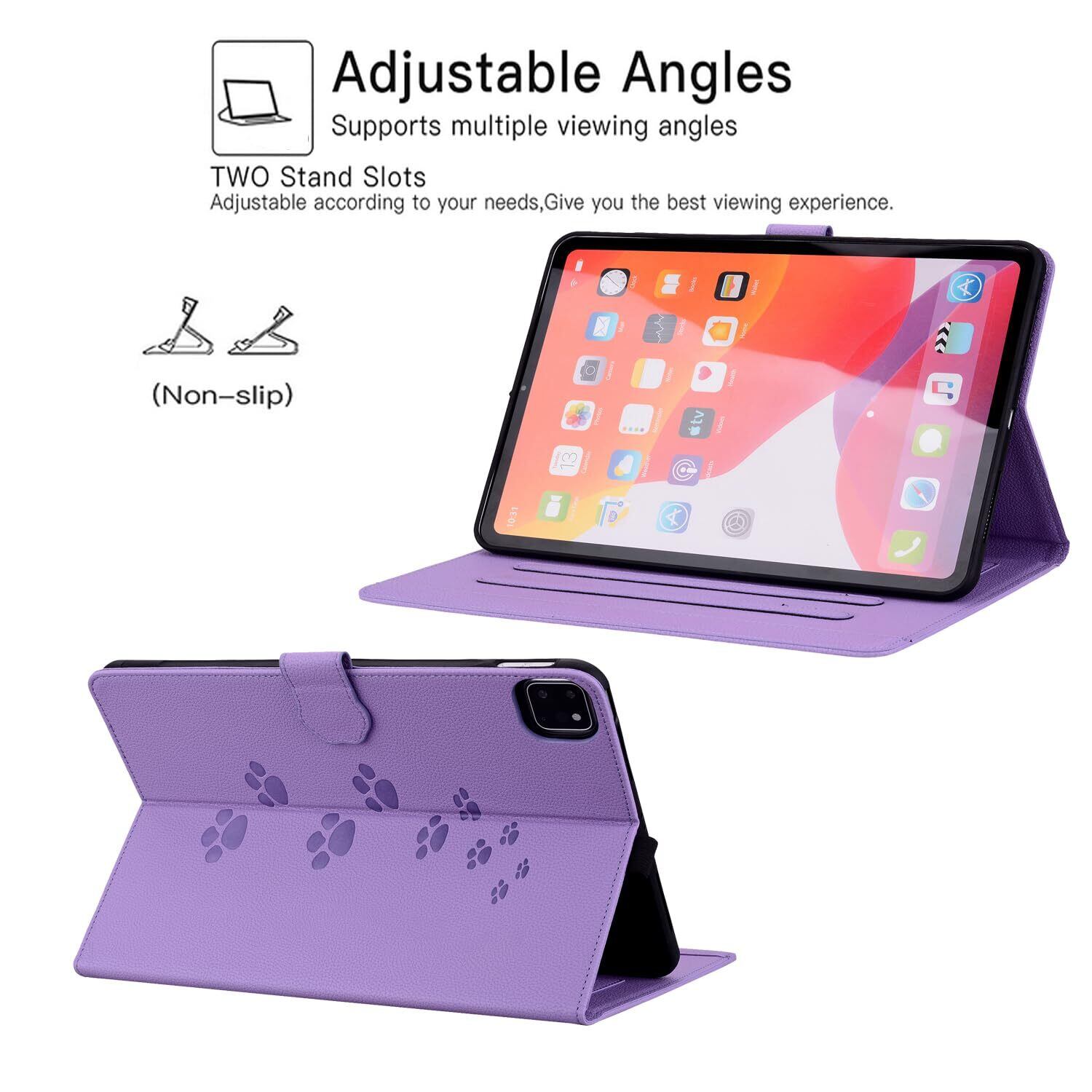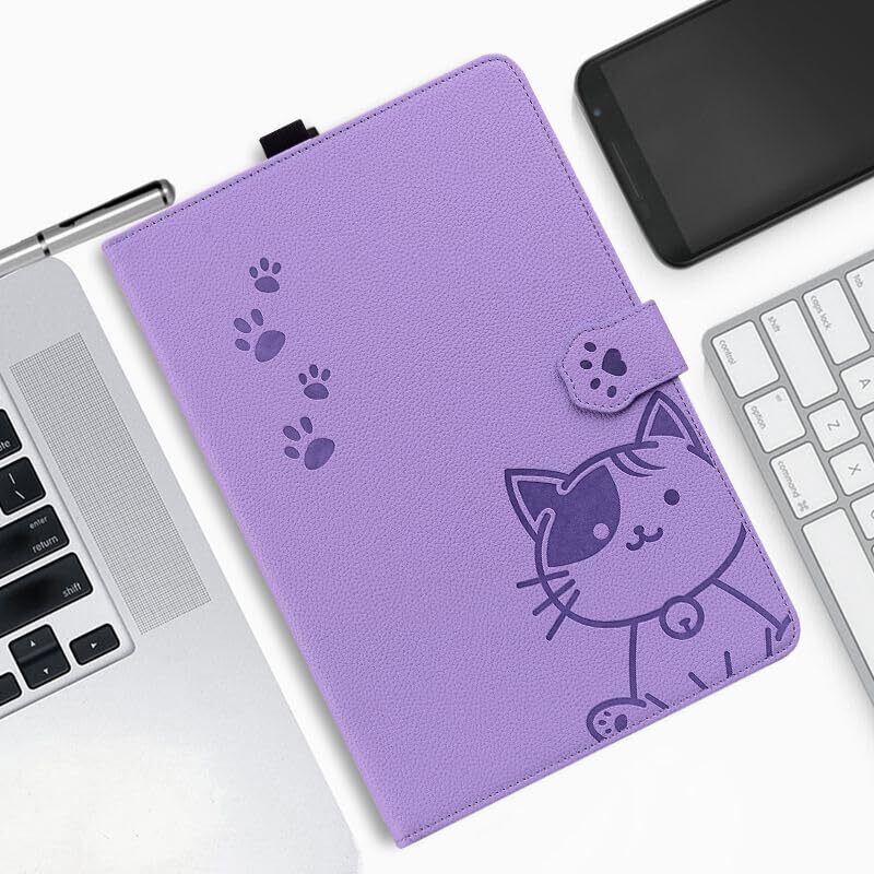 【YIMASE iPad Air 13インチケース 2025/2024 (M3/M2) iPad Pro 12.9ケース 2022/2021/2020/2018 】 新鮮でかわいい猫のプリント iPadプロ12.9ケース iPadPro12.9 カバー 防塵傷つきにくい iPad 12.9 カバー 第6世代 着脱が簡単 iPad airケース 13インチ スタンド機能付き -パープル