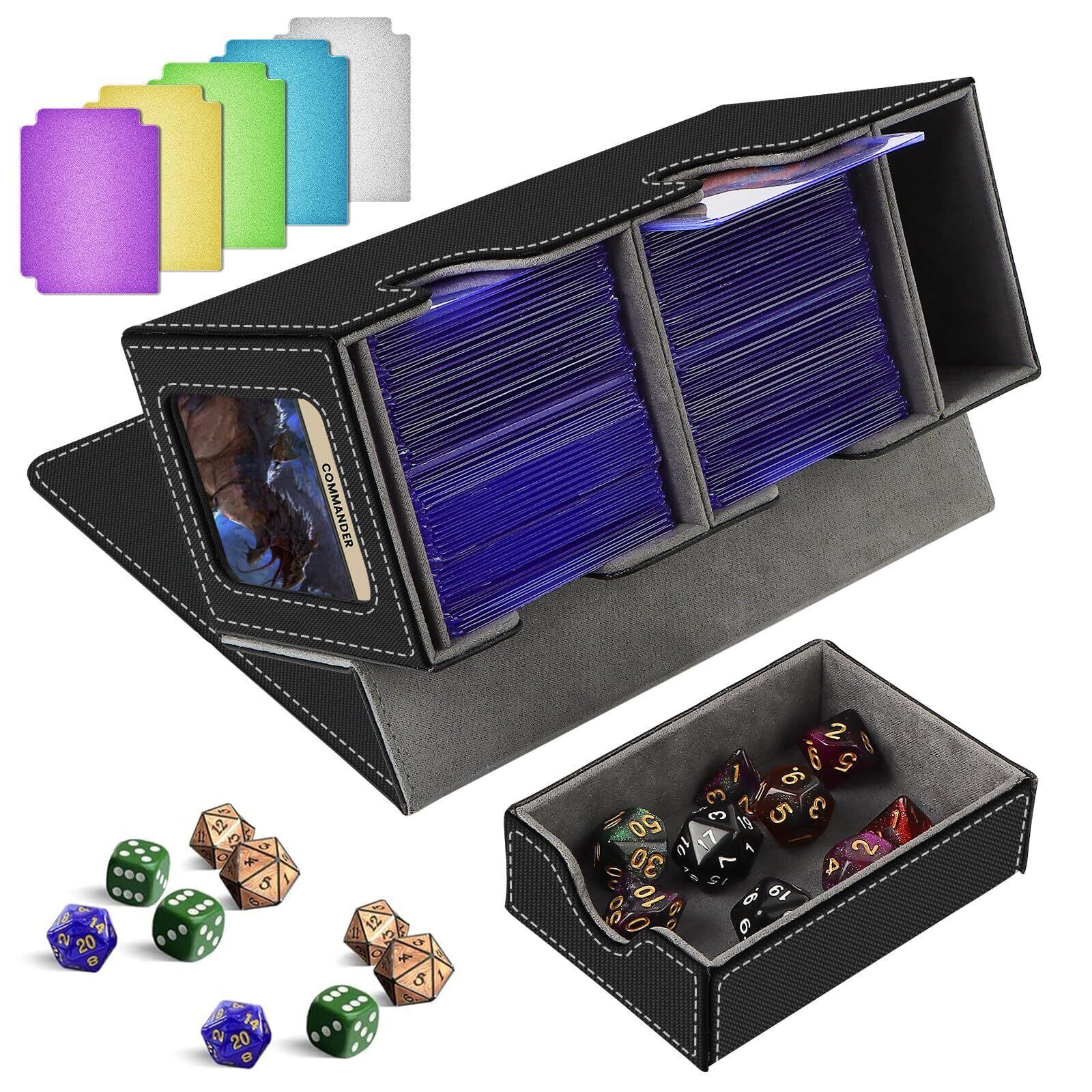 ATPWONZ デッキケース 500+枚カード収納可能 カードケース トレカ、トレカ 収納 統率者戦デッキケース カードケース トレカ、PUシェル5つの仕切りと陳列窓付き (黒内装灰)