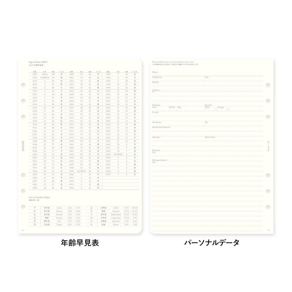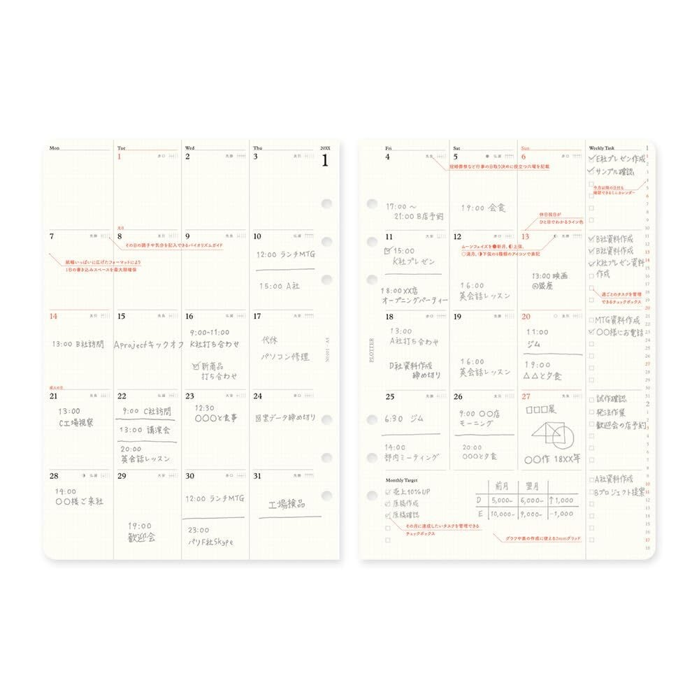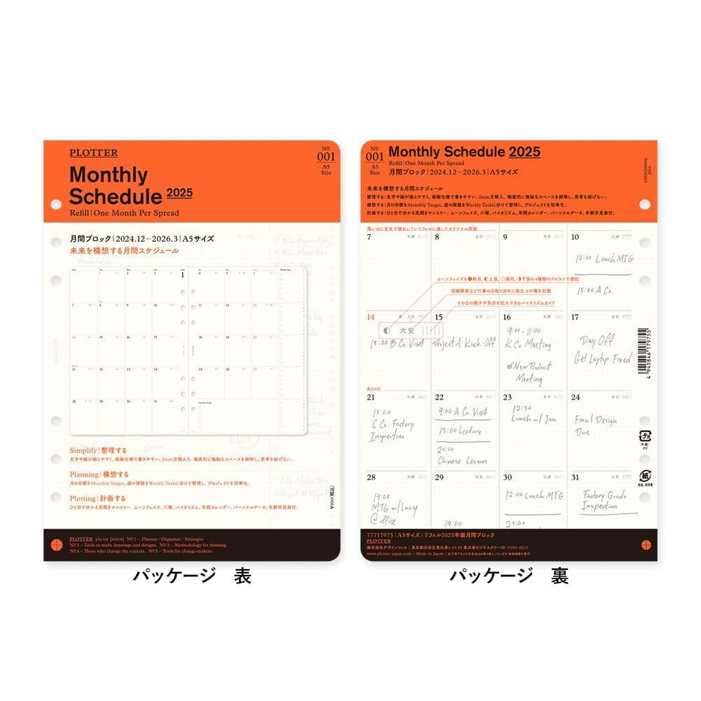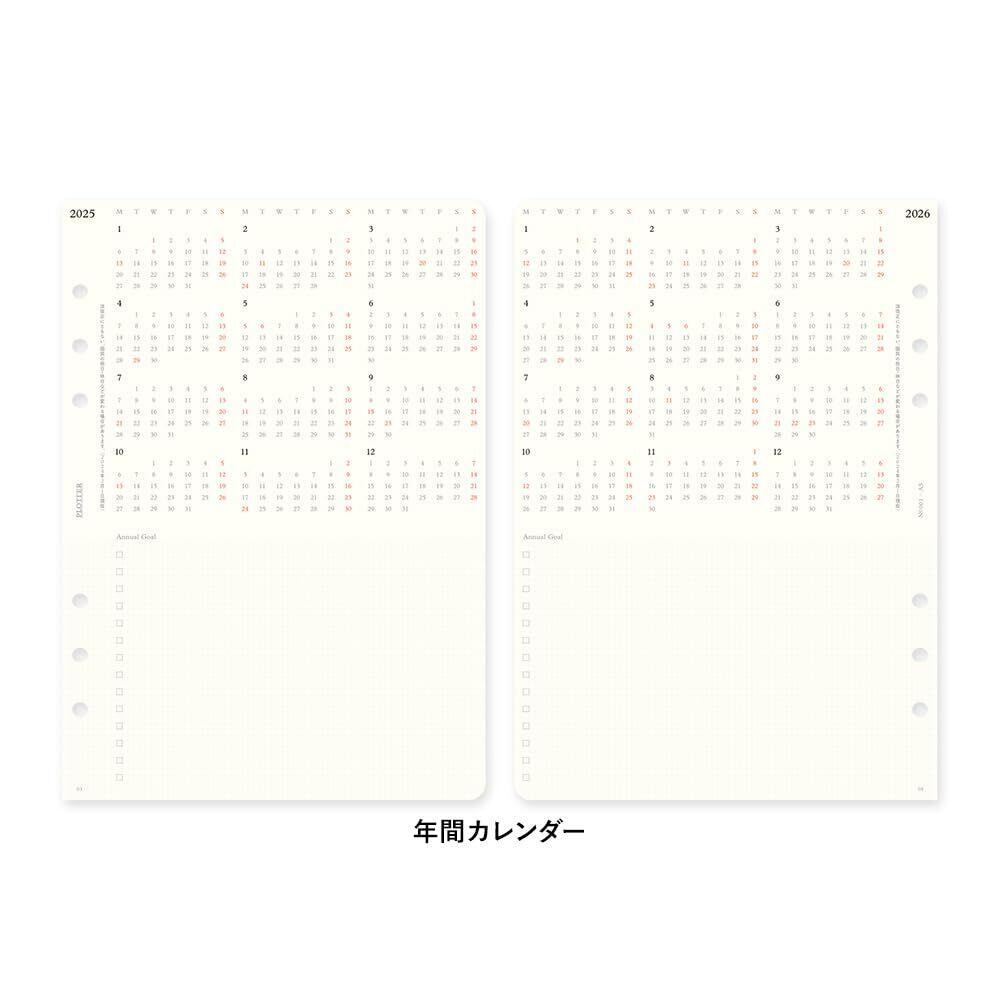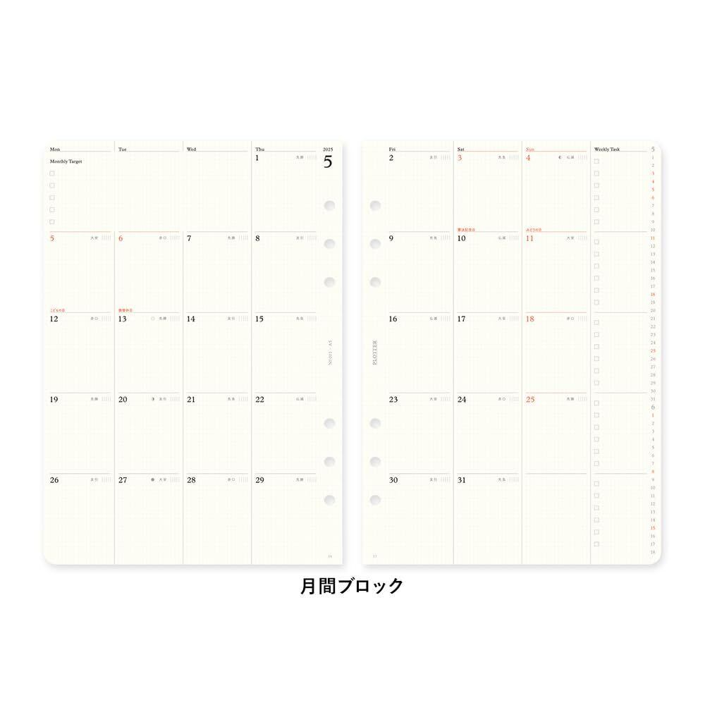 PLOTTER システム手帳 リフィル 2025年 A5 マンスリー 月間ブロック 77717975 (2024年12月始まり)