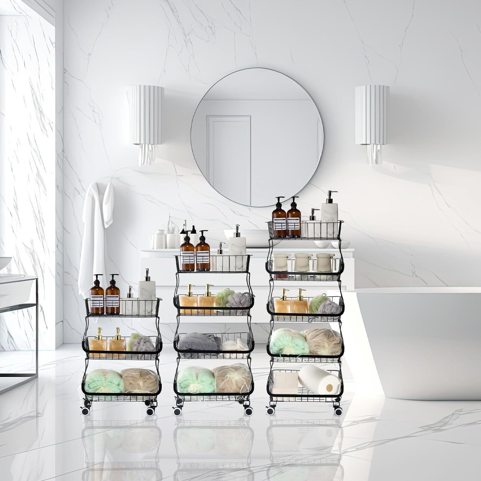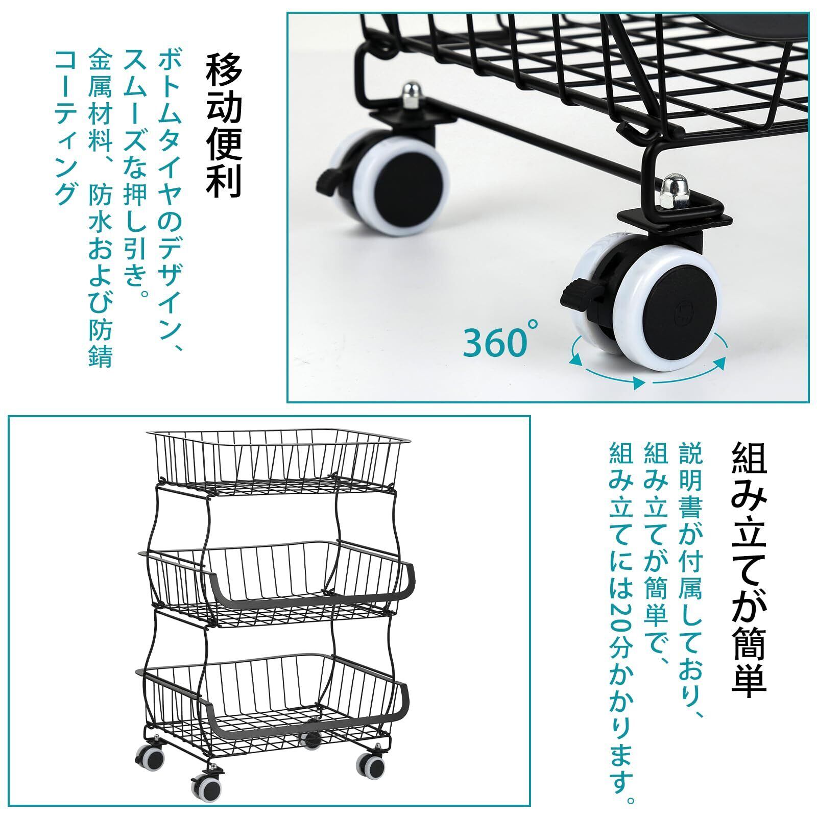 ONEDONE キッチンワゴン キャスター付き ワゴン キャスター付き キッチン収納 カート ラック バスケット 大容量 各段耐荷重10キロ 多機能ランドリー収納 調味料/皿/野菜/服/雑貨収納収納 洗濯室 バルコニー 組立簡単 メタル製 黒
