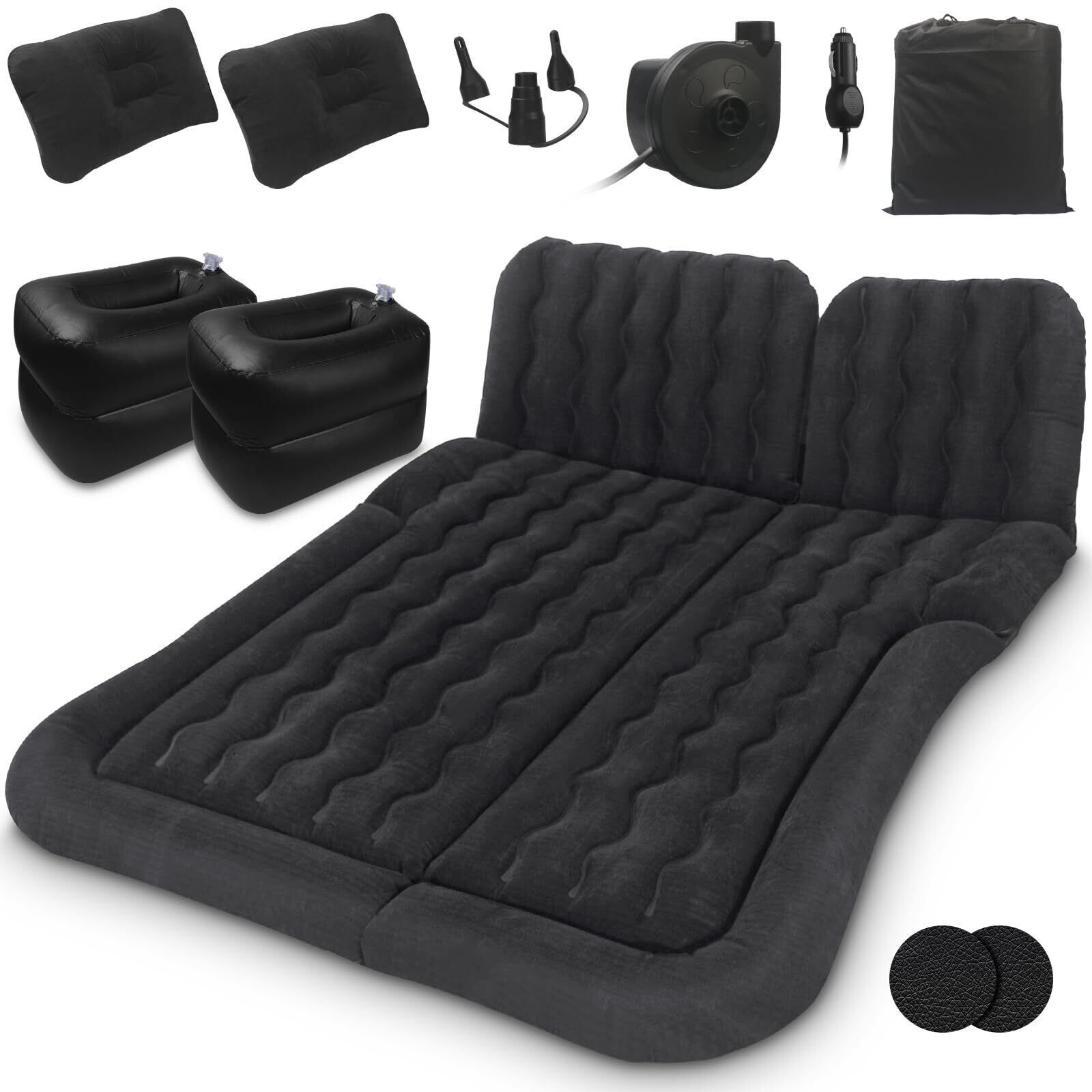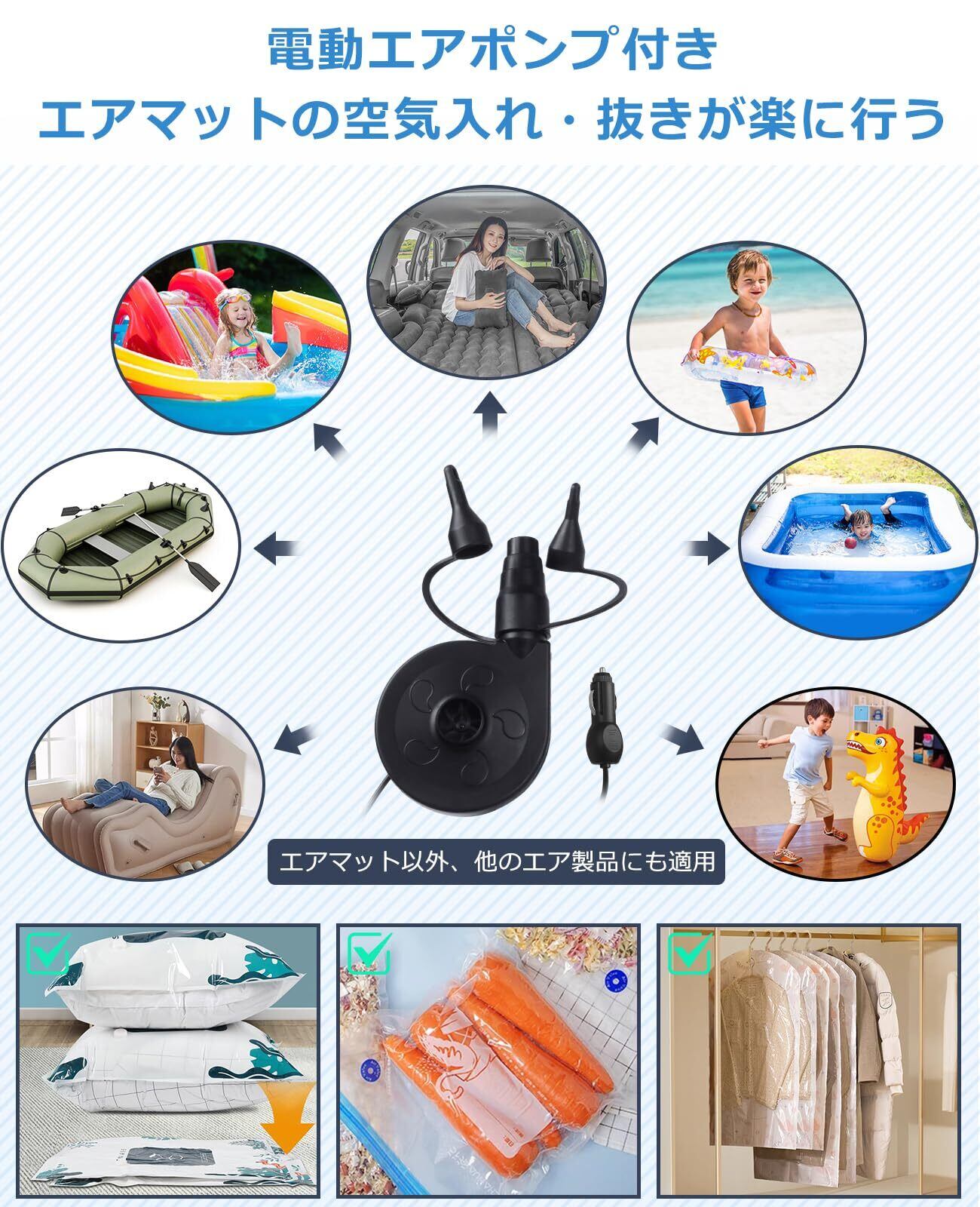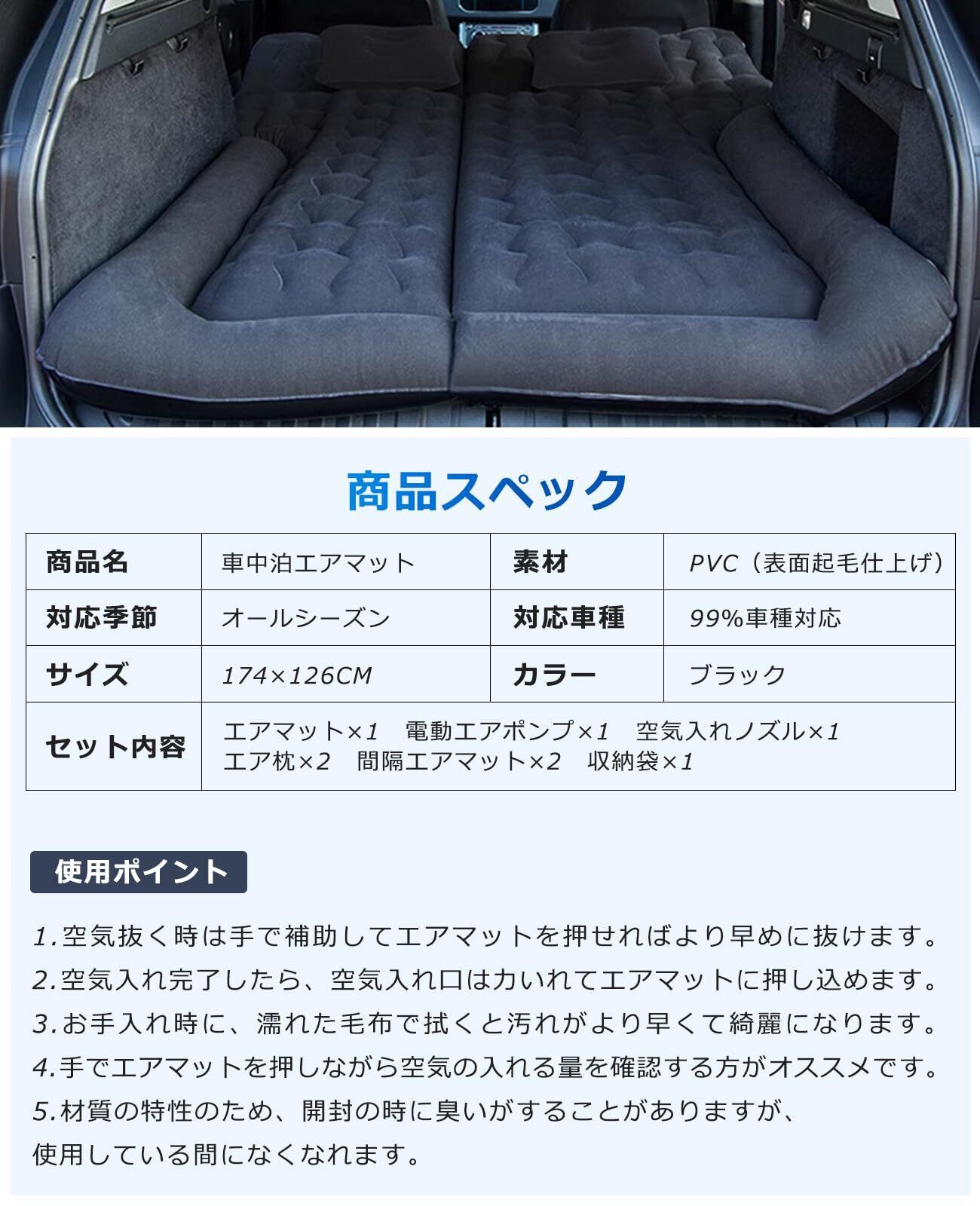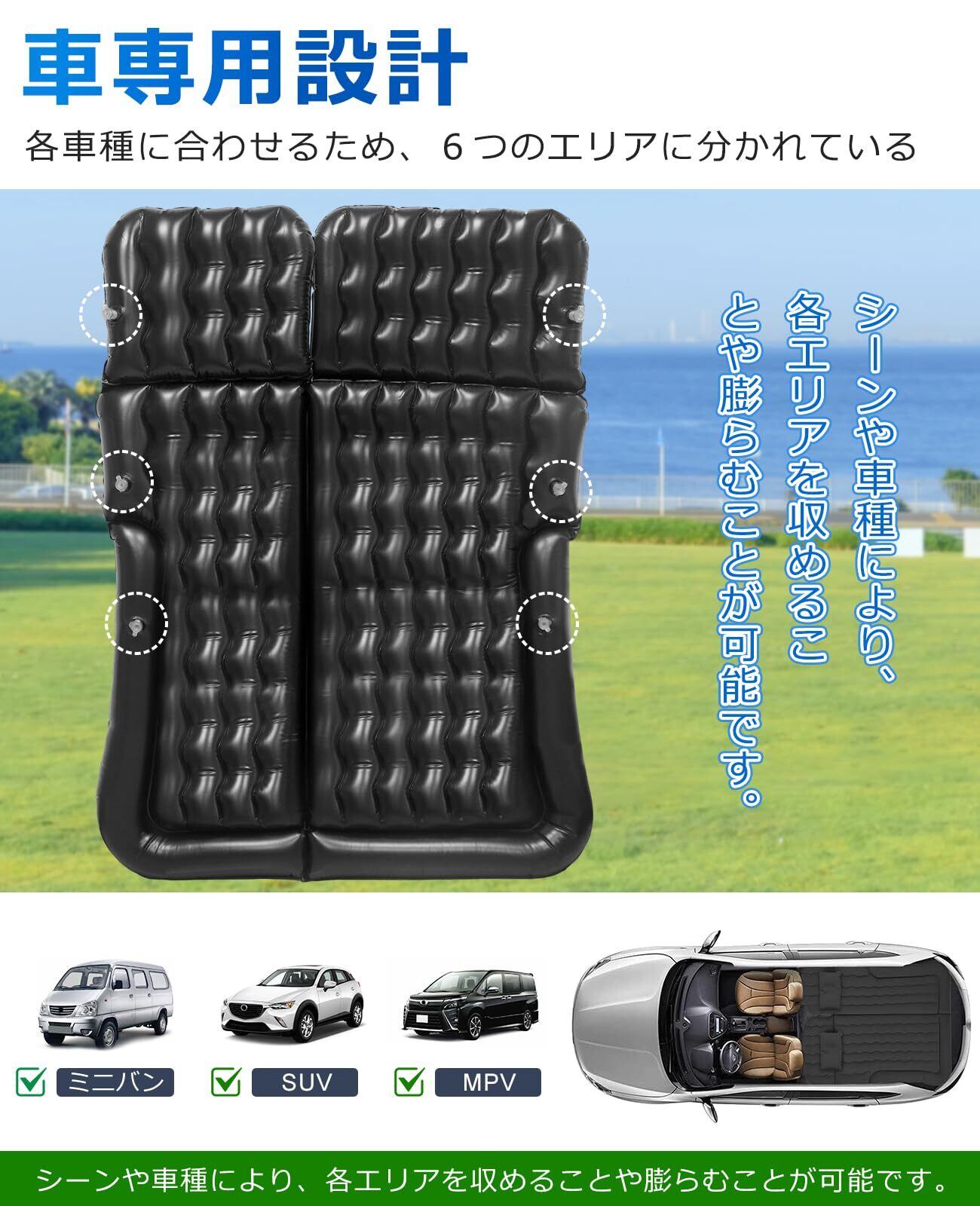 PORAXY 車中泊マット エアーマット 車中泊用ベッド 車中泊グッズ エアーベッド 間隔マット付き3way使い方 後部座席兼用 アウトドア・キャンプ・車中泊用品 電動エアポンプ付き 災害マット テントマット ミニパン SUV MVP セダンなどに