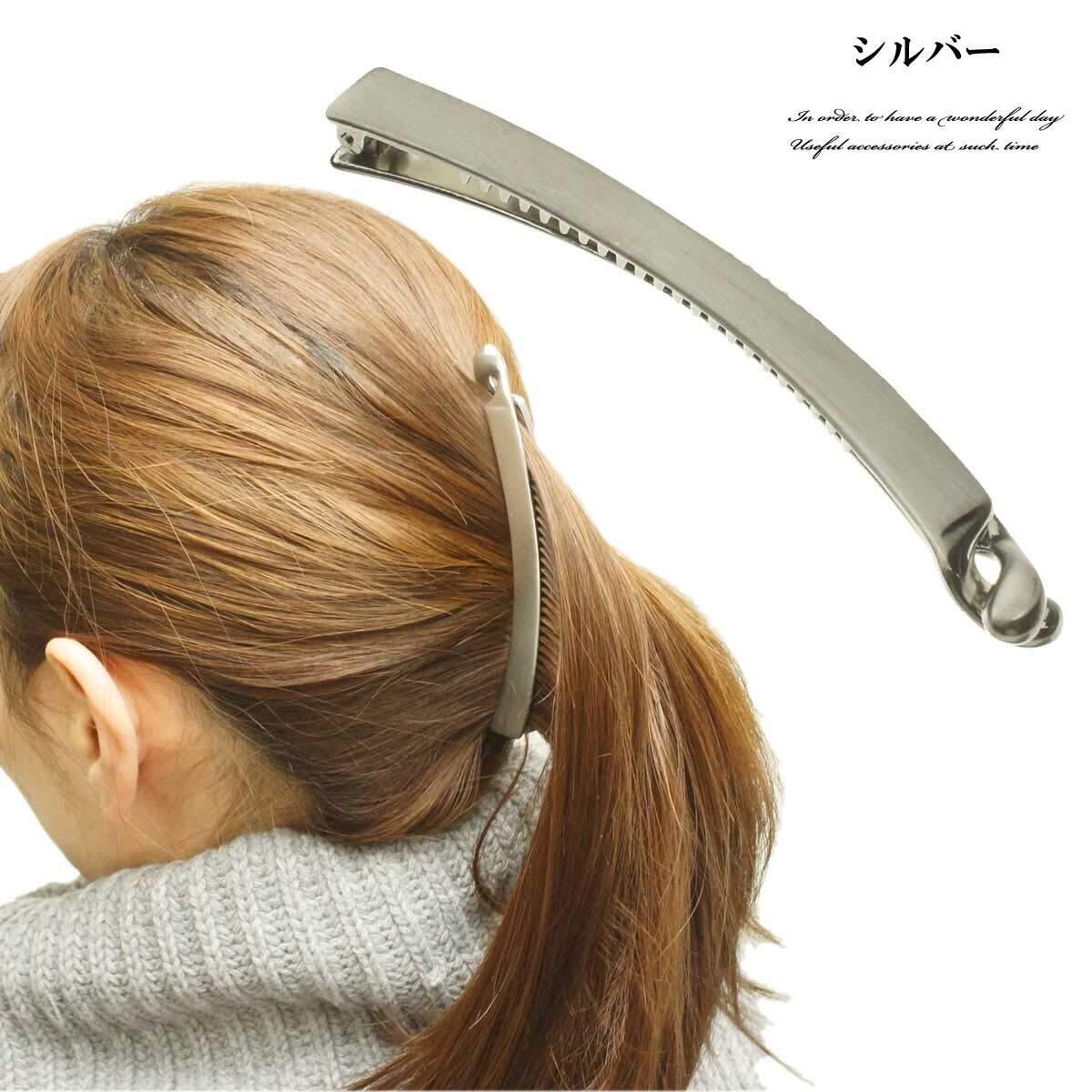 OVER RAG メタルバナナクリップ シンプルバナナクリップ メタル バナナクリップ シルバー ゴールド バナナクリップ 上品 バナナクリップ ヘアクリップ ヘアアクセサリー ヘアアクセ クリップ 大人可愛い プレゼント (シルバー)