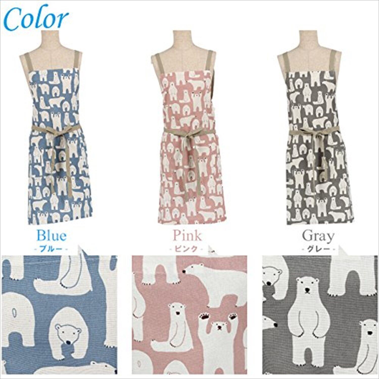 cocoro コ・コロ レップ(Rep) habituel(アビチュアル) コニー エプロン ブルー しろくま 着丈73×幅84cm ポケット付き 綿100%使用 洗濯機対応 レディース 女性用 肩掛け 前結び おしゃれ かわいい キッチン 料理用 カフェ 452608