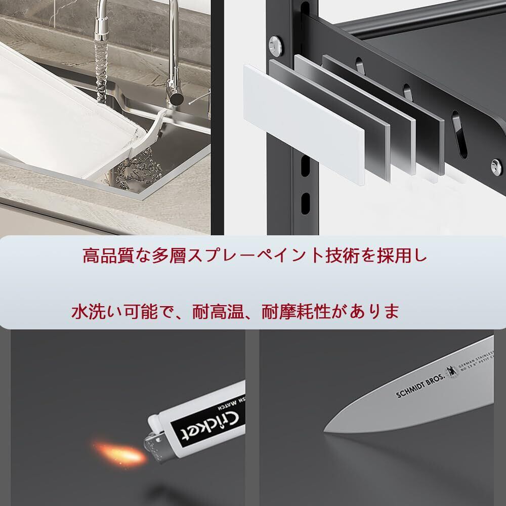 モダンでスタイリッシュなブラックの外観が、キッチンに上品なアクセントを与えます。耐荷重30kgで頼りになり、防熱、防蝕、防錆の素材を使用しています。