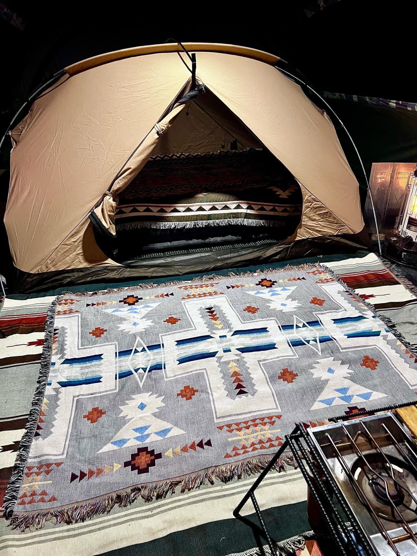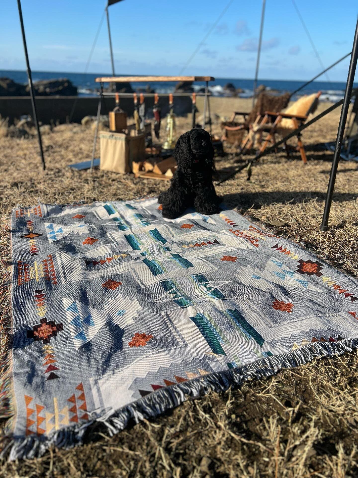 Peel Forest エルパソブランケット マルチカバーメキシカンラグ ネイティブ柄 オルテガ柄 キャンプラグ サドルブランケット アウトドア バンライフ ,グレー,130X160cm……