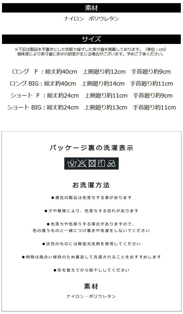 ショート F :総丈約24cm 上腕廻り約11cm 手首廻り約9cm