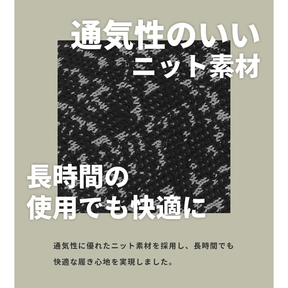 ニット素材で通気性がよく、柔らかでラフな履き心地の軽作業靴。履いている感覚がないほど柔らか。かかとを踏んで履いても型崩れしないように補強もしてあります。室内作業で床に色がつかない白い靴底を採用。