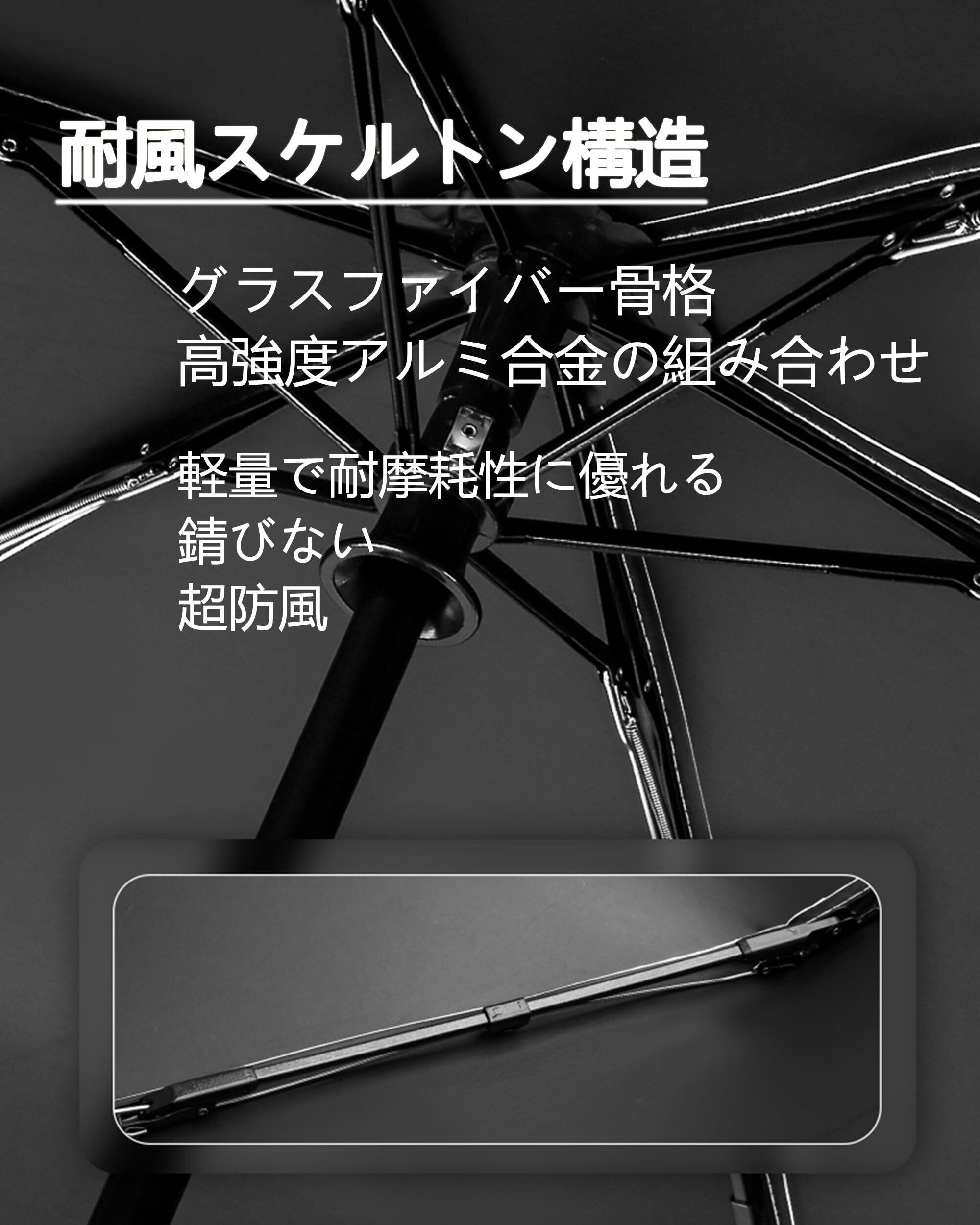 【UVカット・日焼け止め】日傘布の裏側はナノ抗紫外線ノリコーティングと断熱黒ノリコーティングを採用して、可視光と紫外線を遮断して、効果的に日焼け止めすることができます。暑い夏に、紫外線からしっかり肌を守れます。UPF50+、UVカット率95%以上、遮光で熱線となる太陽光線がカットされ、紫外線をブロックして、お肌を守り、熱い日差しの中でも涼しく過ごせます。