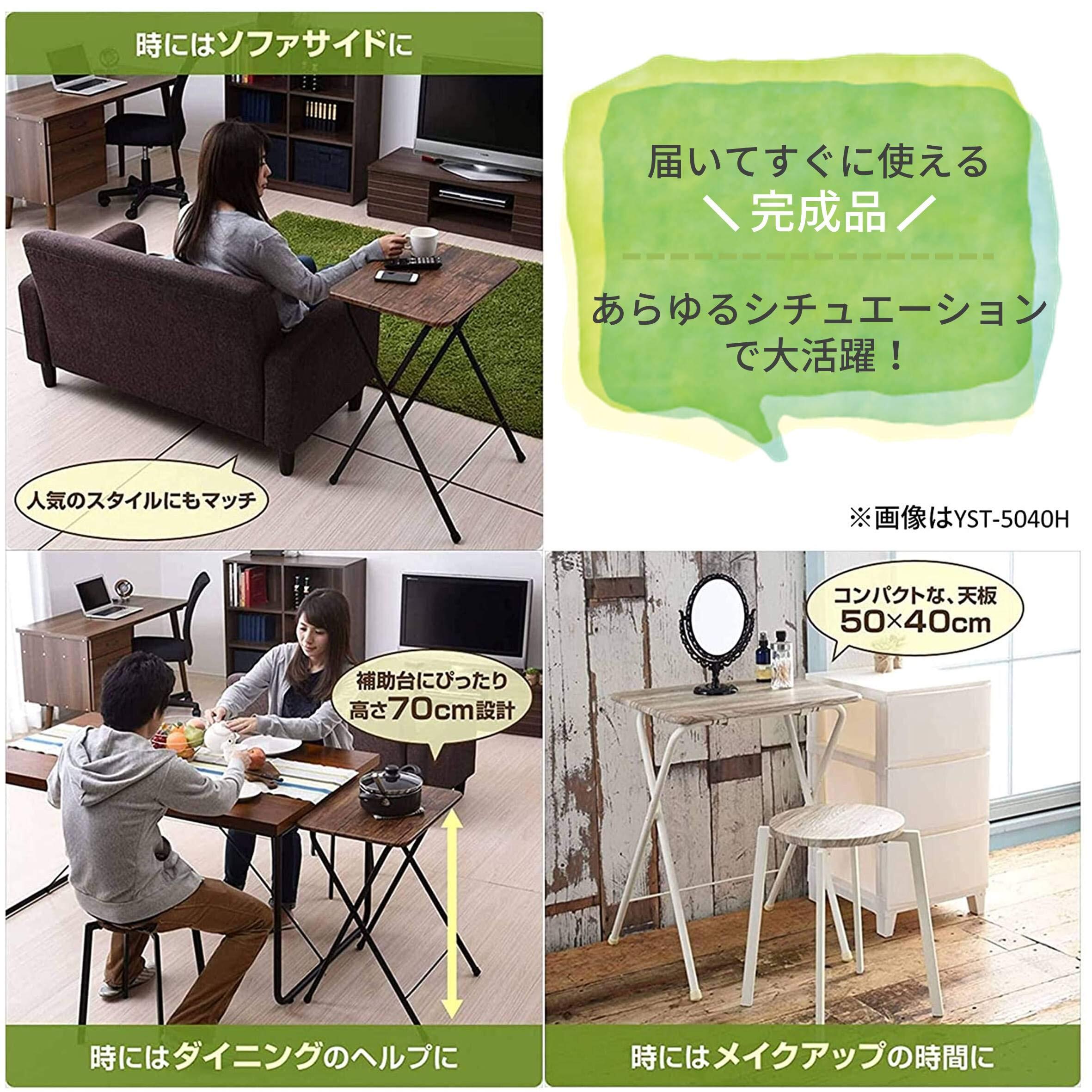 山善(YAMAZEN) テーブル ミニ 折りたたみ サイドテーブル 幅50×奥行48×高さ70cm ハイタイプ 傷・汚れ・水分・熱に強い天板(メラミン加工) なめらかな表面 角が丸い アンティークアイボリー/ホワイト RYST5040H(AIV/WH2) 在宅勤務