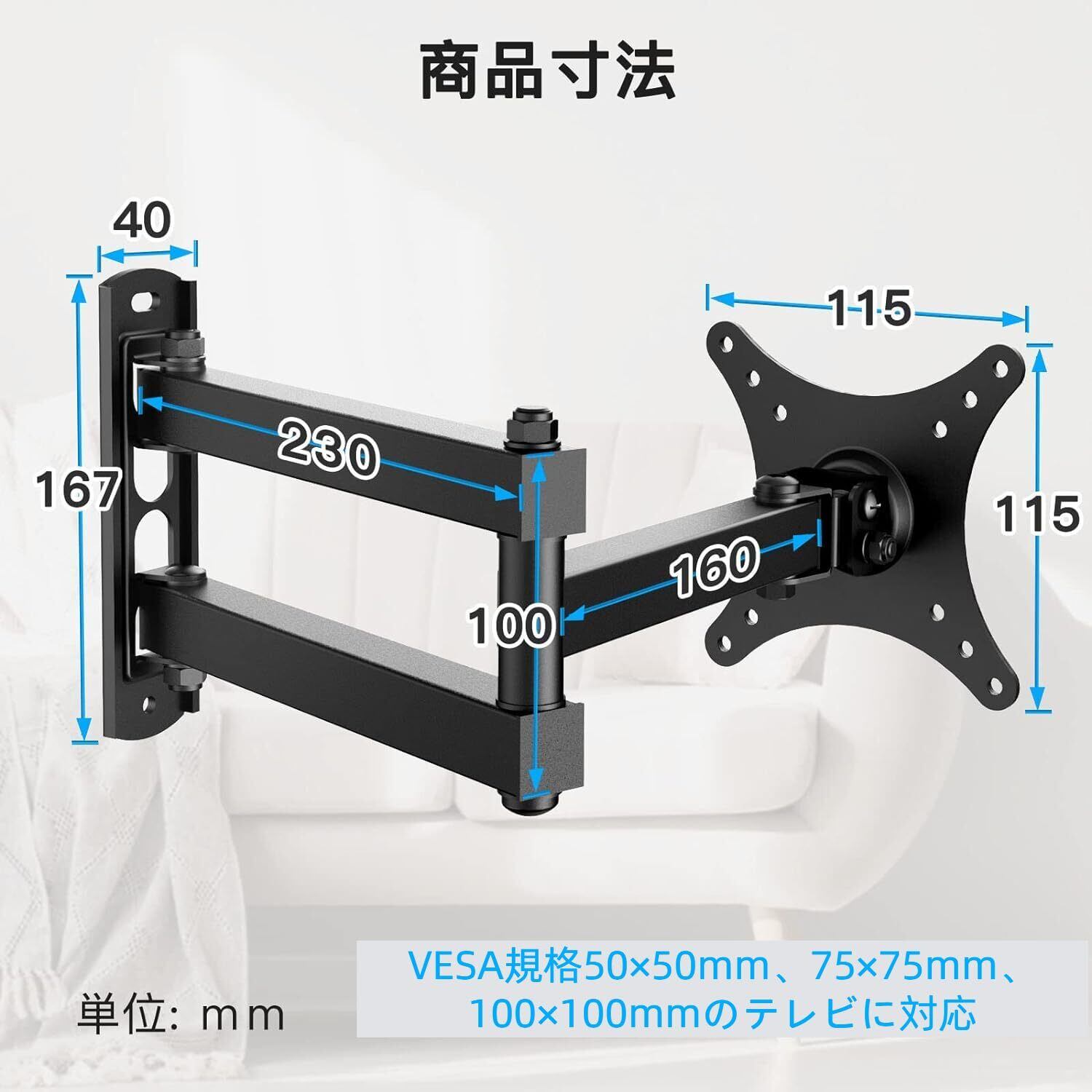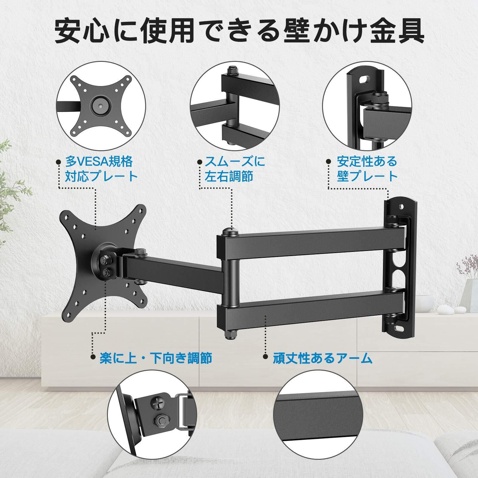 PERLESMITH 壁掛けテレビ金具 モニターアーム 10~32インチ対応 アーム式 テレビ壁掛け金具 耐荷重20kg tv壁掛け金具 テレビアーム テレビかべかけ金具 前後&左右&上下多角度調節 VESA50×50 75×75 100×100