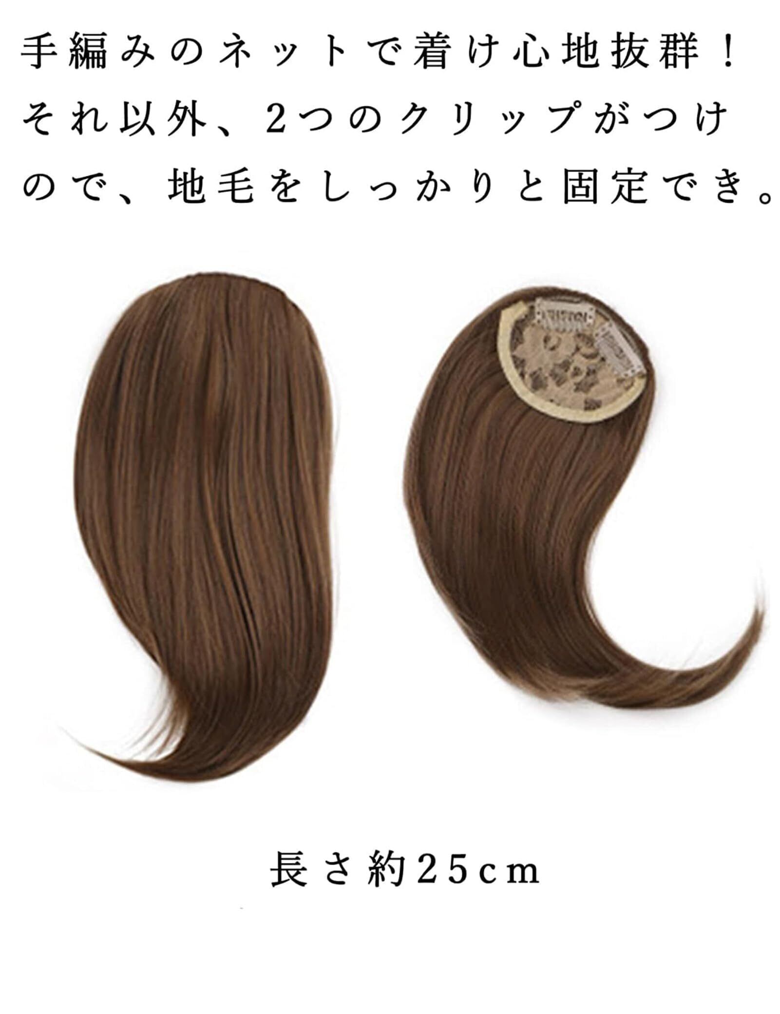 GFun 前髪ウィッグ ぱっつん 斜め 自然 総手植 部分ウィッグ ポイントウィッグ 仮装 日常 ライトブラウン