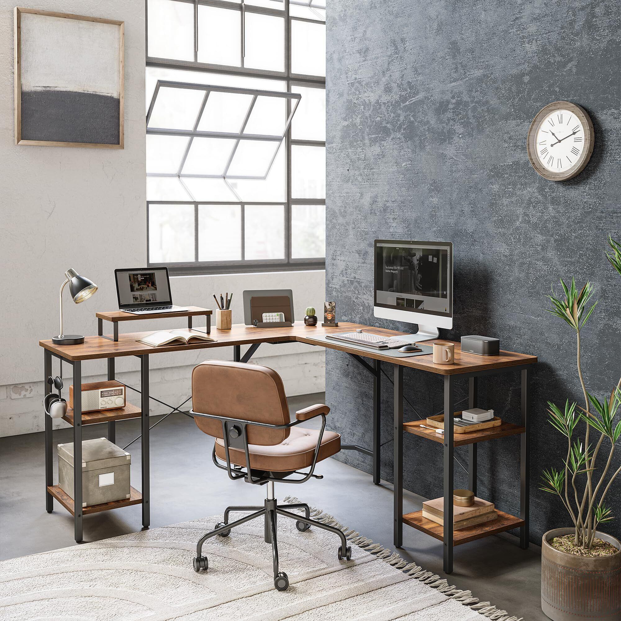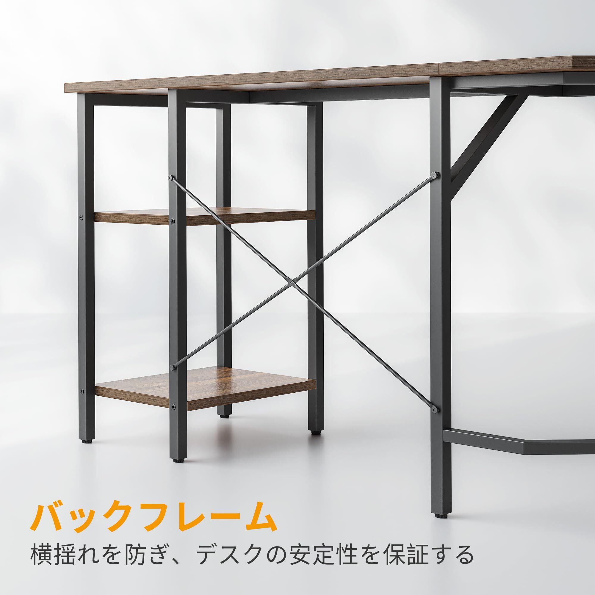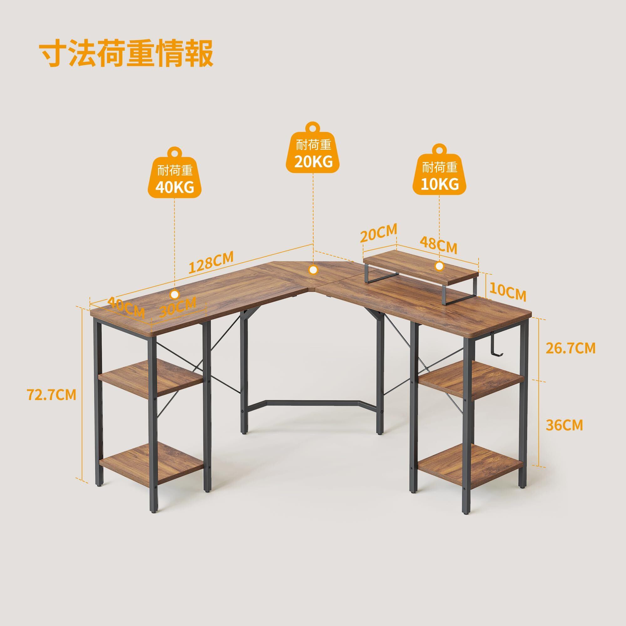 CubiCubi デスク l字デスク ラック付きデスク モニター台付き ゲーミングデスク パソコンデスク 勉強机 一人暮らし 収納便利 128cm*128cm pcデスク ブラウン