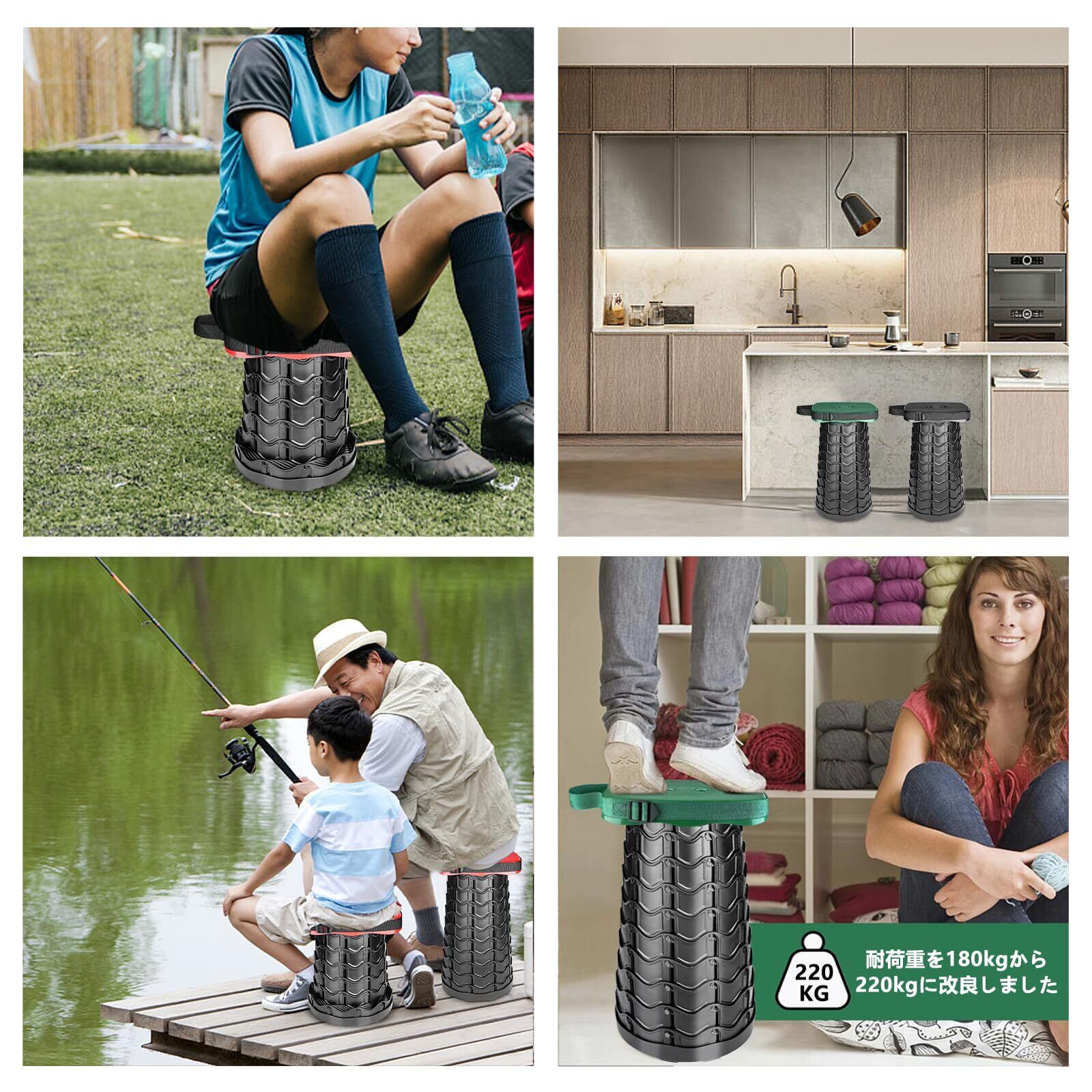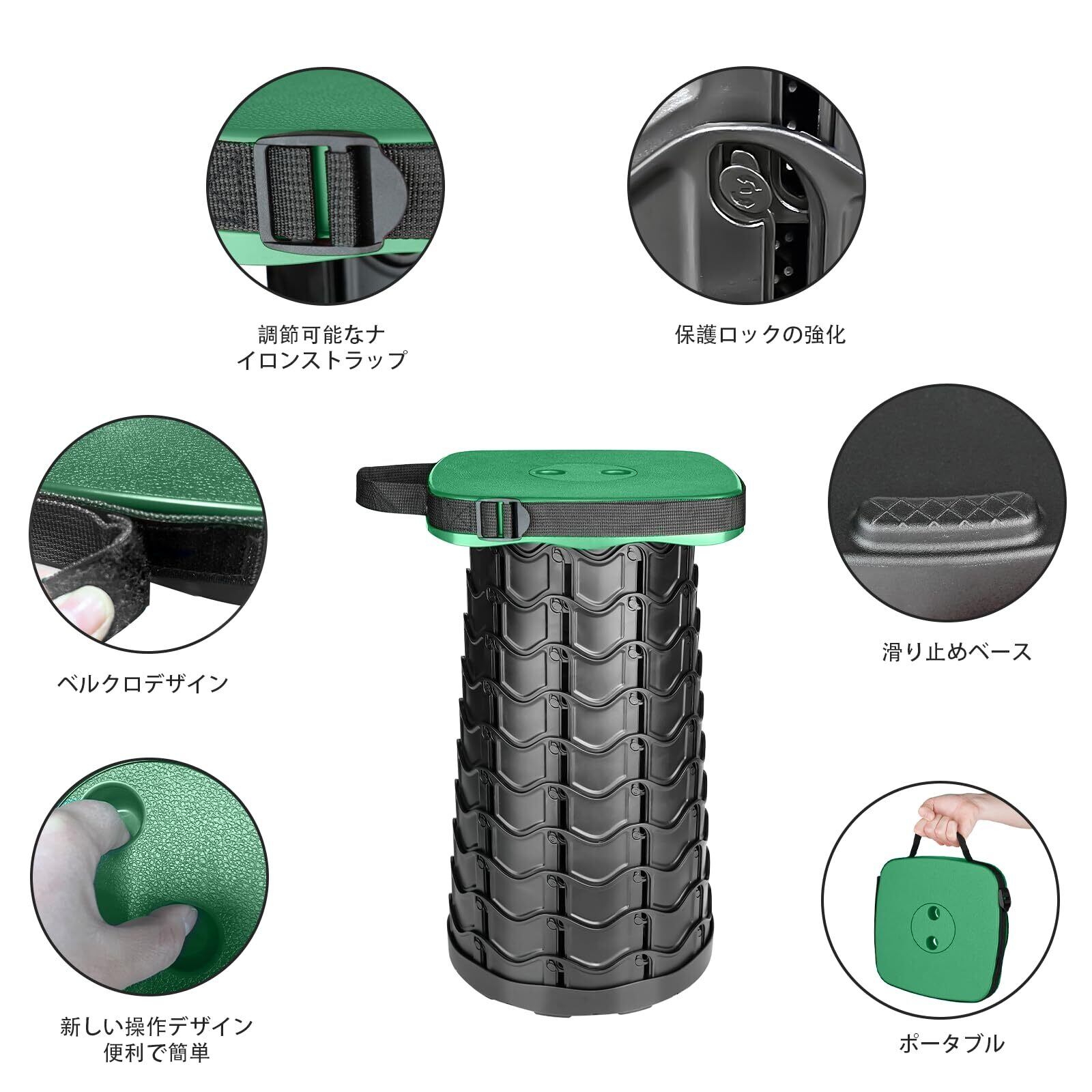[SCIVEI] 折りたたみ椅子 アウトドアチェア 折畳椅子 コンパクト 角型 超軽量1秒開閉 耐荷重220KG 高さ調整可能 伸縮式スツール 防水「意匠登録」キャンプ 釣り 体育会 花見用