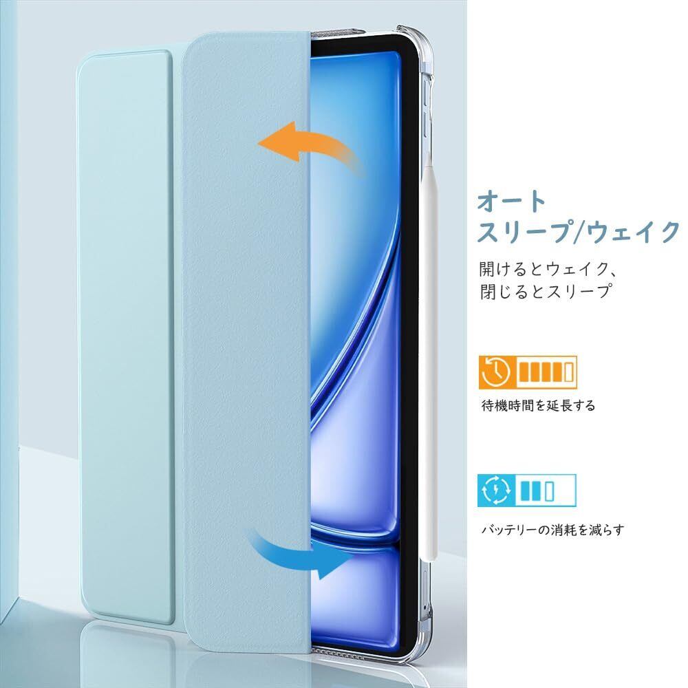 TiMOVO iPad Air 11インチ ケース M3/M2 第7/6世代 (2025/2024) iPad air 第5/4世代 ケース 10.9インチ iPadAir7/6/5/4 カバー 11インチ/10.9インチ PencilPro/第2世代ワイヤレス充電対応 PUレーザー 三つ折り オートスリープ機能 落下防止 手帳型 半透明 スカイブルー