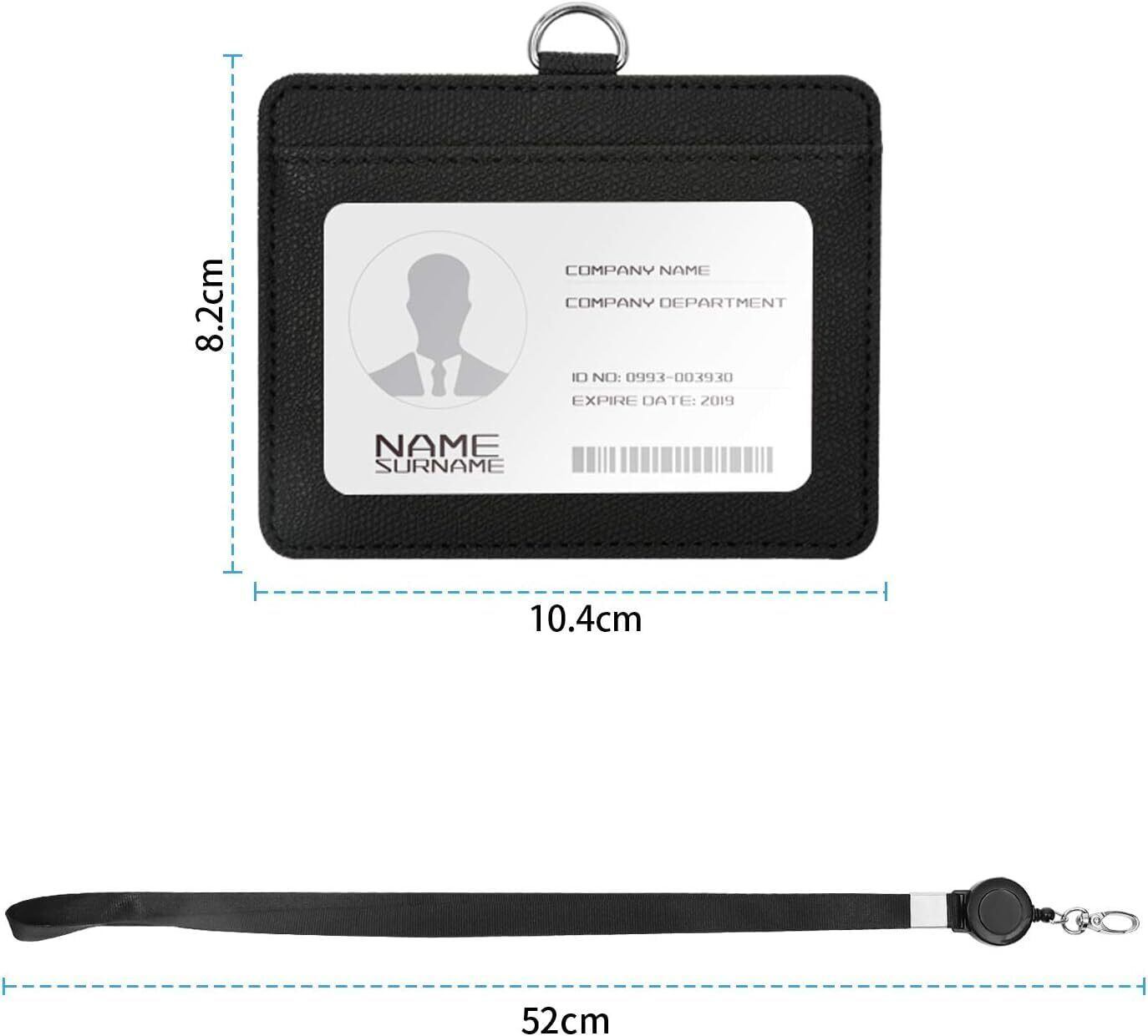 Furifer IDカードホルダー ネームホルダー 伸縮リール式 名札ホルダー 社員証 idカードケース PU革 横型 両面用 カードホルダー 首掛け 通勤 通学 男女兼用 (横型 + ブラック)