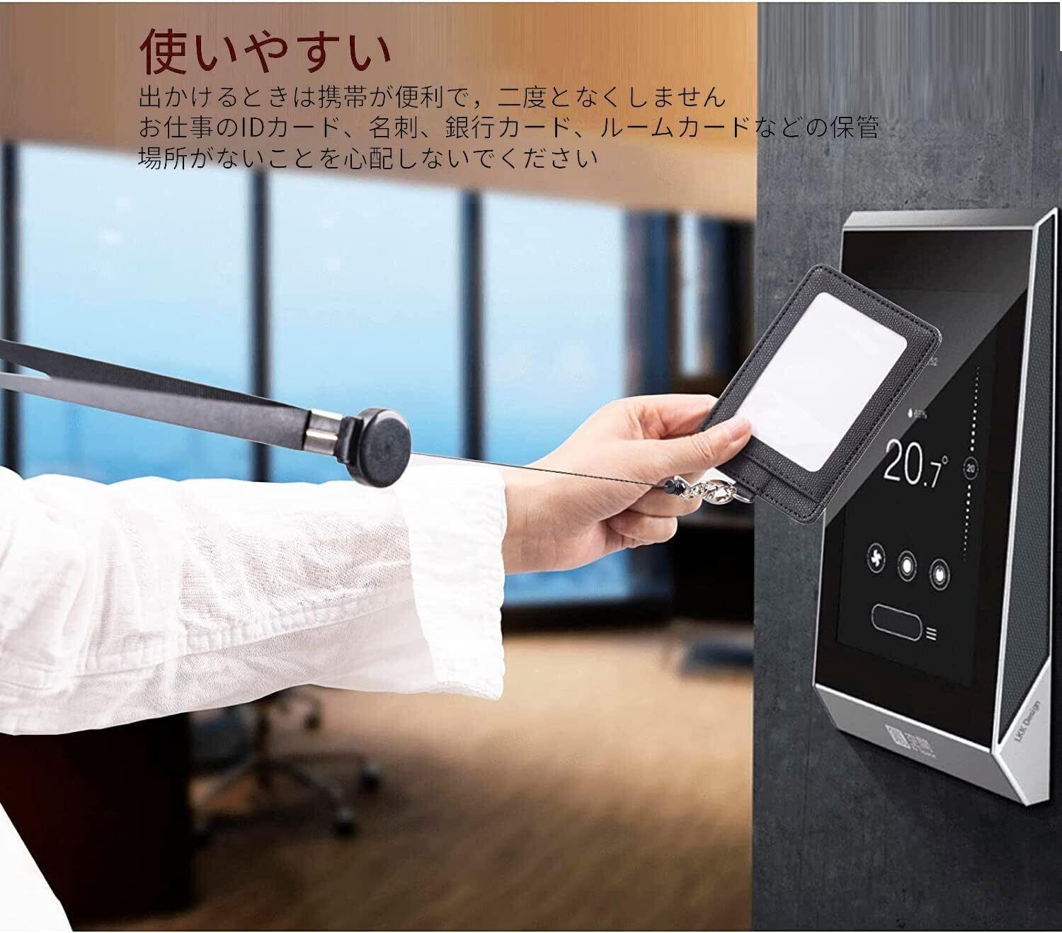 IDカードホルダー ネームホルダー PU 横型 社員証 カードケース カードケース メンズ 防水 伸縮リール式 ネックストラップ 吊り下げ パスケース カード入れ 名札ケース 定期入れ 通勤 通学 男女兼用 IDカードホルダー ネームホルダー 名札ホルダー 社員証 伸縮リール式 脱着式 横型 両面用 ネックストラップ パスケース カード入れ 定期入れ 吊り下げ名札 通勤 通学 名刺サイズ 男女兼用 伸縮リール設計。 均一な車の針が糸を走り、細部を明らかにする卓越した技術。 超耐摩耗性で頑丈で丈夫で、汎用リールのナイロンロープよりもずっと丈夫です。 ホルダーとネックストラップの間の伸縮性リールが日常での使い勝手を向上させています。 近年さまざまなカードが増えてきている。定期券をはじめ、ICカード、IDカード、ポイントカード等多数。その中でも特に定期券・ICカードは通勤通学で毎日使用する、いざ使用するときにバッグからすぐに見つからないと焦ってしまうし、手間になる。でも、駅構内で混雑の中手に持つのは落としてしまいそうで怖い、と等いう方に是非オススメの商品が登場。カードを探す時間が省かれ、スマートに行動することができます。 保安エリアでID認証する際に首にかけたまま届く構造です。定期券に応用すれば、リードを引っ張るだけで改札機にタッチできる便利さもあるでしょう。最大45cmまで伸長するリールコード付きで、ご自身がチョイスしたリールを定期入れといつも持ち歩くバッグに取り付ければ、定期入れを忘れる心配はなくなります。フックは360 Degree C回転ですから、ネームストラップは捻じにくいです。
