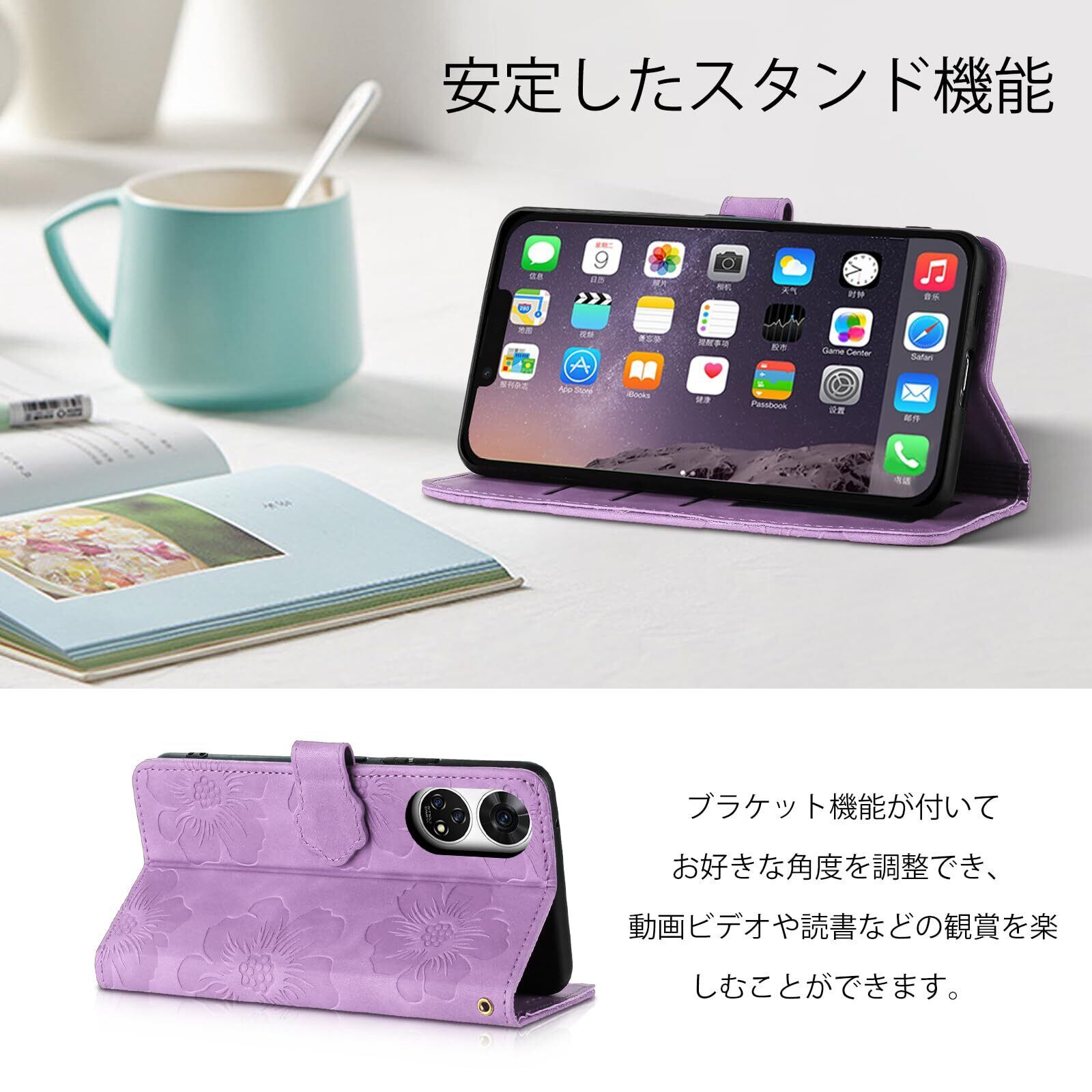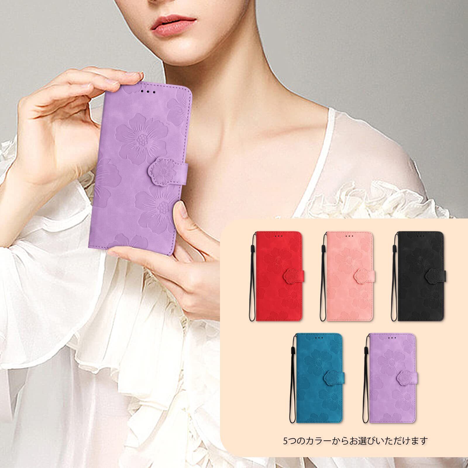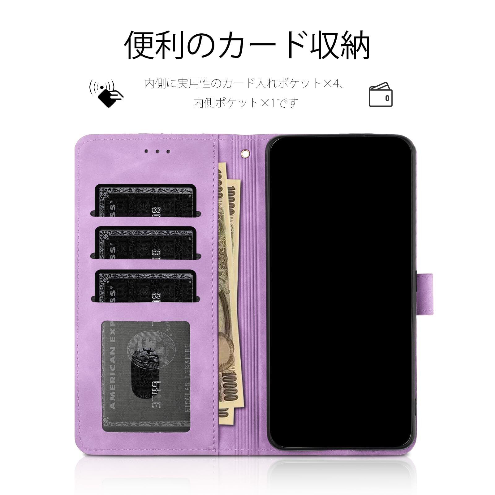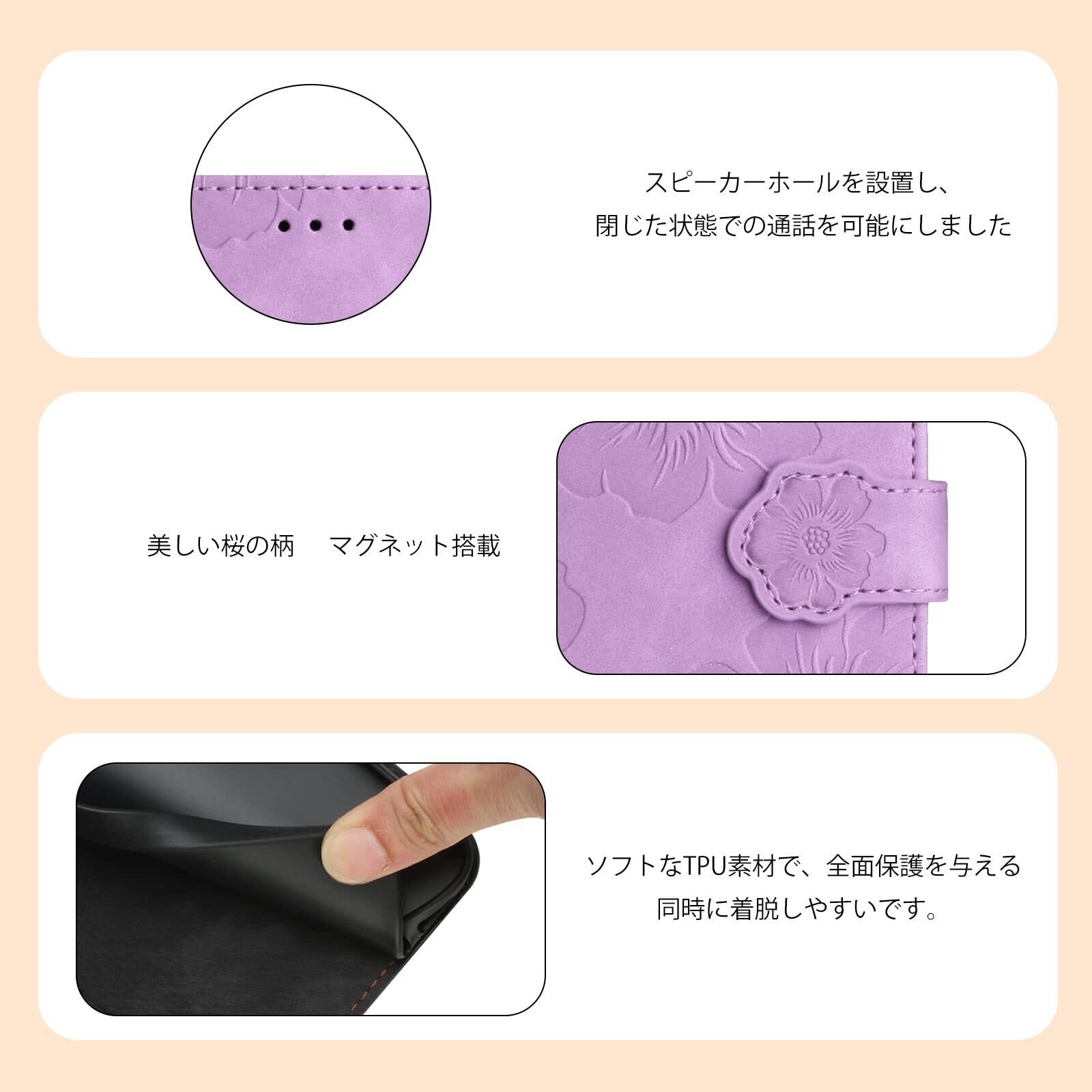 For ZTE あんしんファミリースマホ ケース 手帳型 人気 ZTE Anshin Family ケース 手帳型 おしゃれ 保護カバー あんしんファミリースマホ A303ZT ケース かわい い 美しい桜の柄 携帯カバー 本革レザー 財布型カバー 耐衝撃 スマートフォンケース お洒落 手帳ケース スマホケース 軽量 カード収納 マグネット式 スタンド機能(6.7インチ)パープル