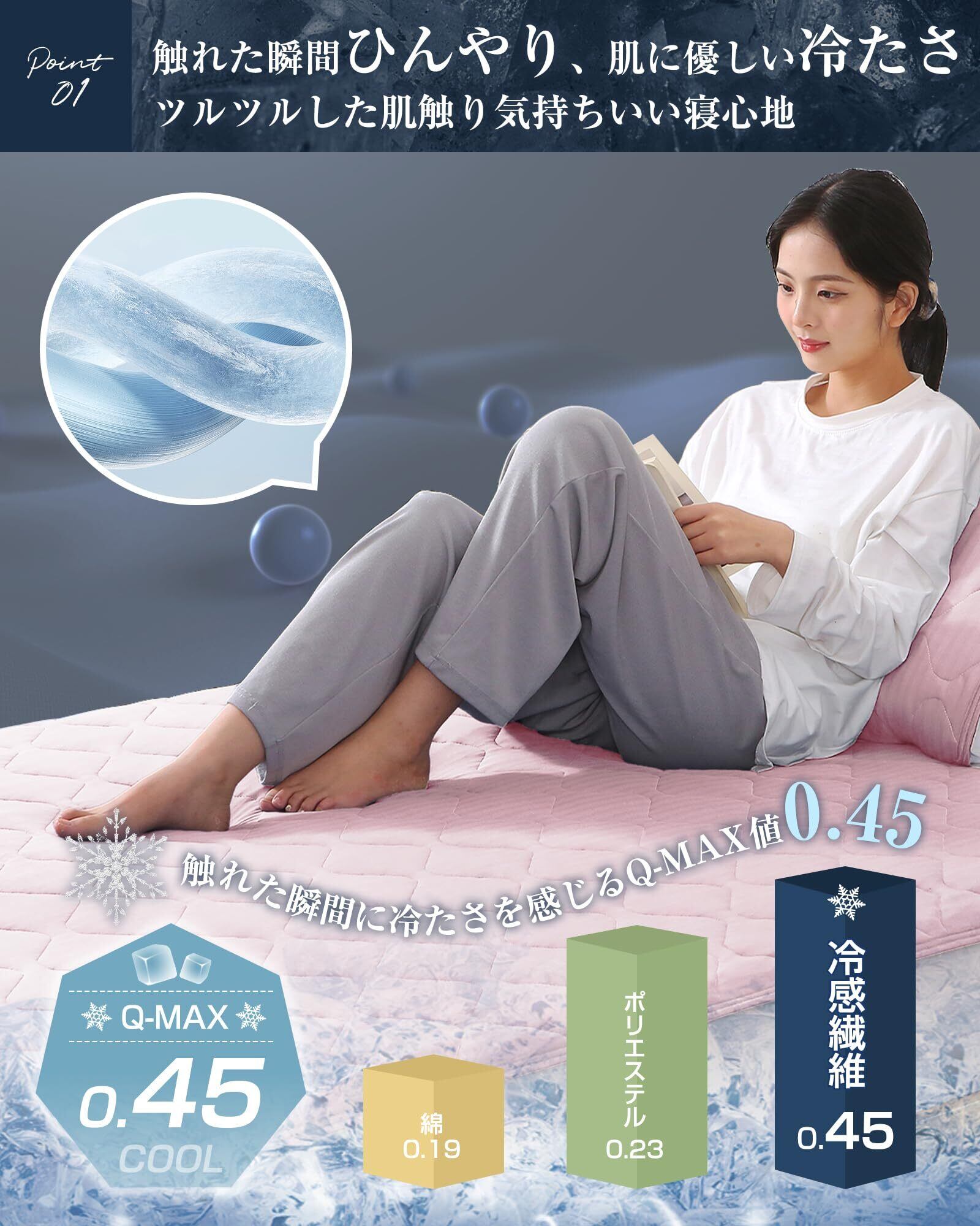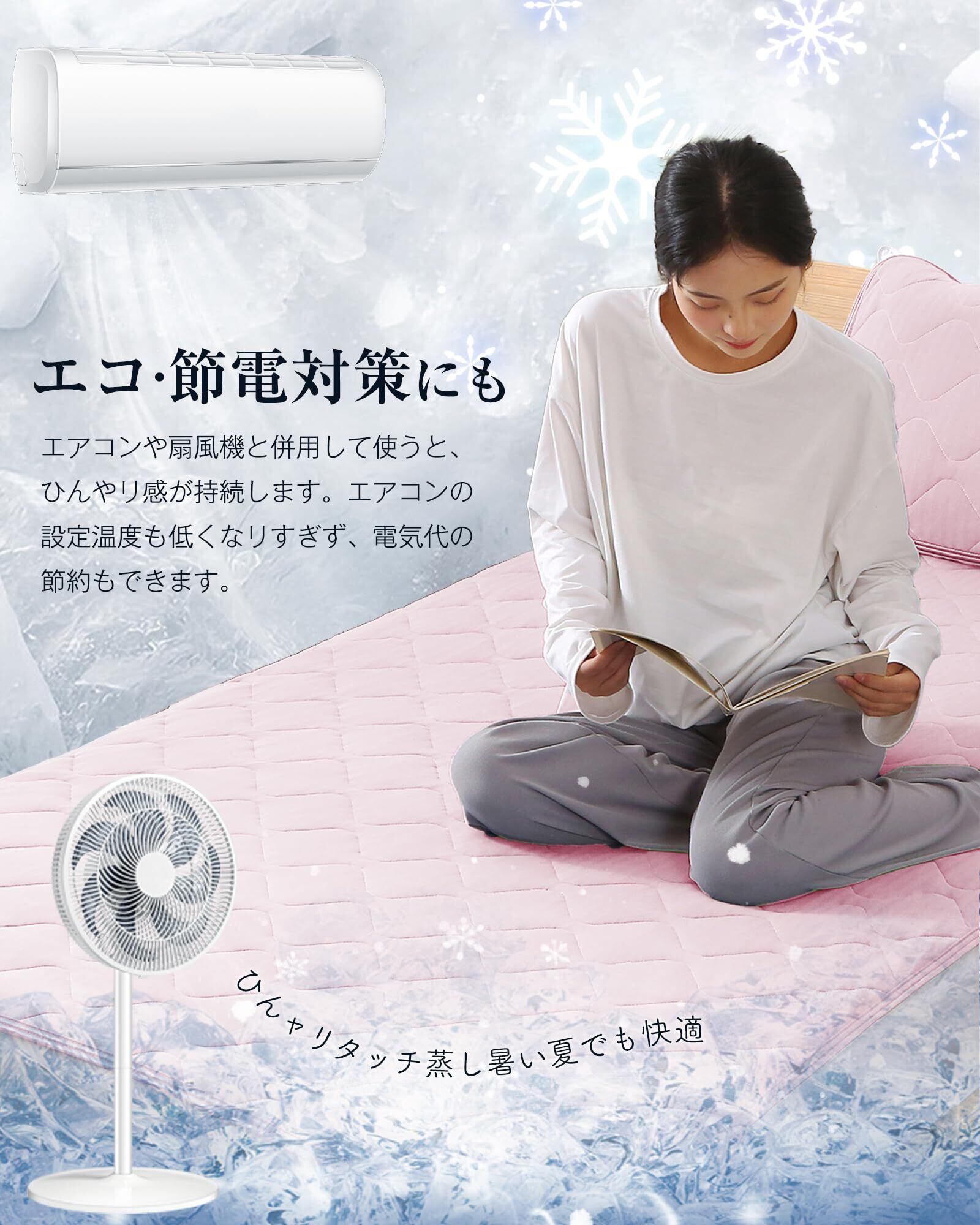 【ひんやり敷きパッド】接触冷感と吸汗機能をもつ冷感新素材を採用します。一般の冷感敷きパッドに比べ、ひんやり感がグレードアップ!ひんやり、サラサラ、快適な寝心地に! ! 冷房との併用でひんやり度がさらにUP! 入浴後や日焼けした後の火照った体を、冷たい敷きパッドでクールダウン! ひんやり冷たくて気持ちいいので、寝苦しい夜も快適な眠り夏の快眠グッズとして、ギフト用にも大変喜ばれています! 接触冷感の冷たさはお部屋の気温にも左右されますので、ひんやり感を高めたいなら、使用前に冷房等でお部屋を冷やしておくことをオススメします。(エアコンの温度設定は26~29℃がおすすめ)。弊店ではエアコンを使いすぎない健やかな眠りを提案するクール寝具は他にも取り扱っています。一緒にセットで使えばさらにクール~暑い夏、蒸し暑い夜、梅雨のじめじめした夜に!