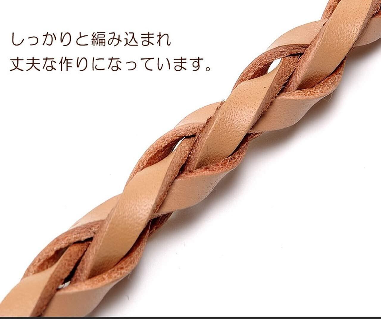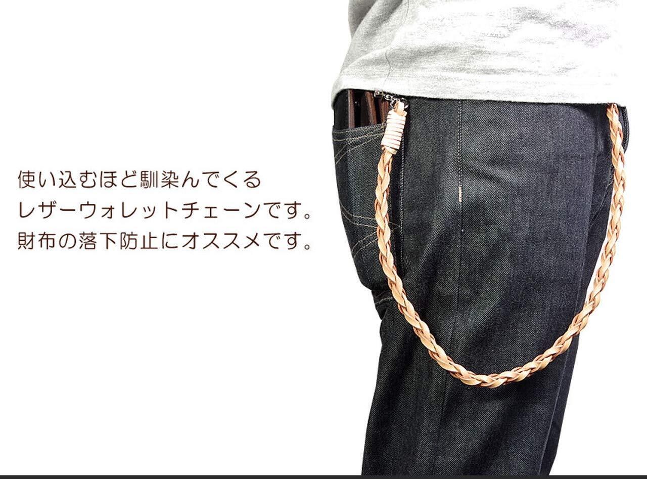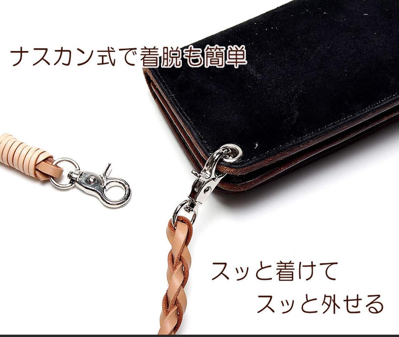 GoodsLand 【 本革 レザー 】 牛革 ウォレットチェーン 革 編み込み ロング おしゃれ メンズ 約58cm ナスカン カラビナ キーリング バイカー バイク 鍵 キーホルダー ひも 紐 財布 チェーン 落下防止 ストラップ GD-WLCHAIN-02