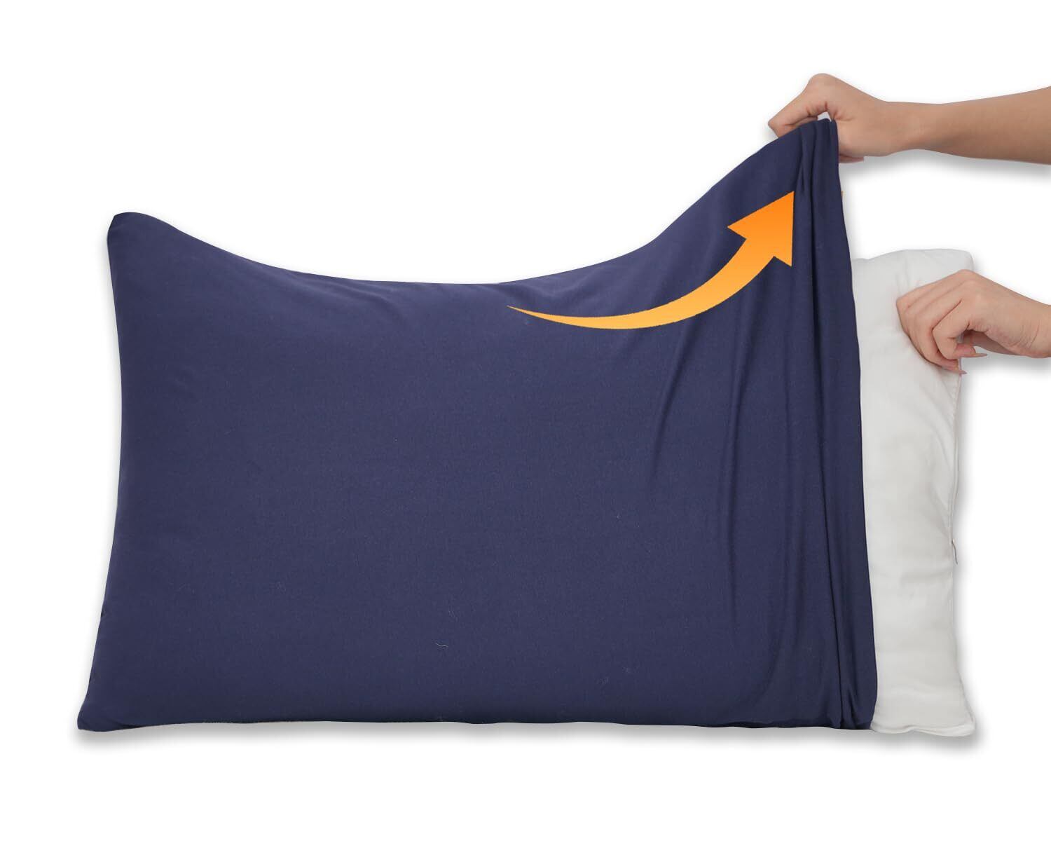 ムニュニュ 伸びる 枕カバー 35×50 綿 まくらカバー いろんなサイズやかたちのまくらにのびのびフィット ピローケース のびのび枕カバー 小さめ 封筒式 枕套 柔らか サラサラ Tシャツ素材 オールシーズン 吸汗 通気 抗菌 防臭 ストレッチ 洗える pillow case ネイビー