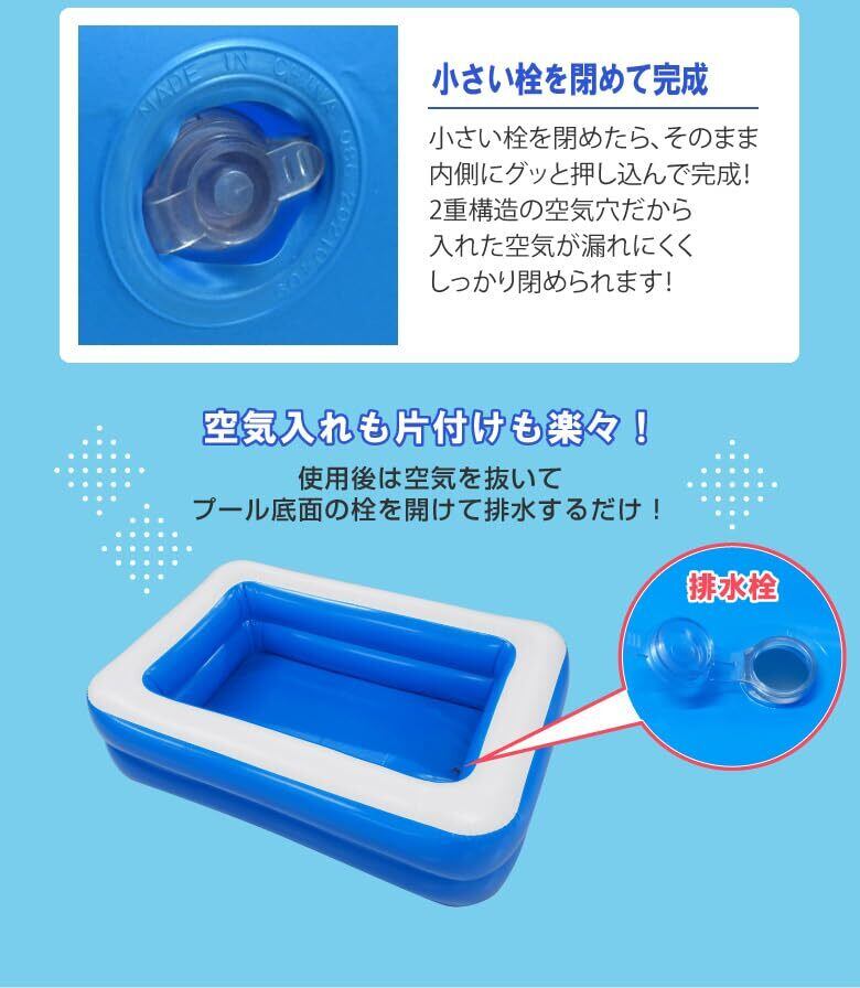 ビニールプール本体は2気室構造で、プールの空気を入れた固さなどが安定します。