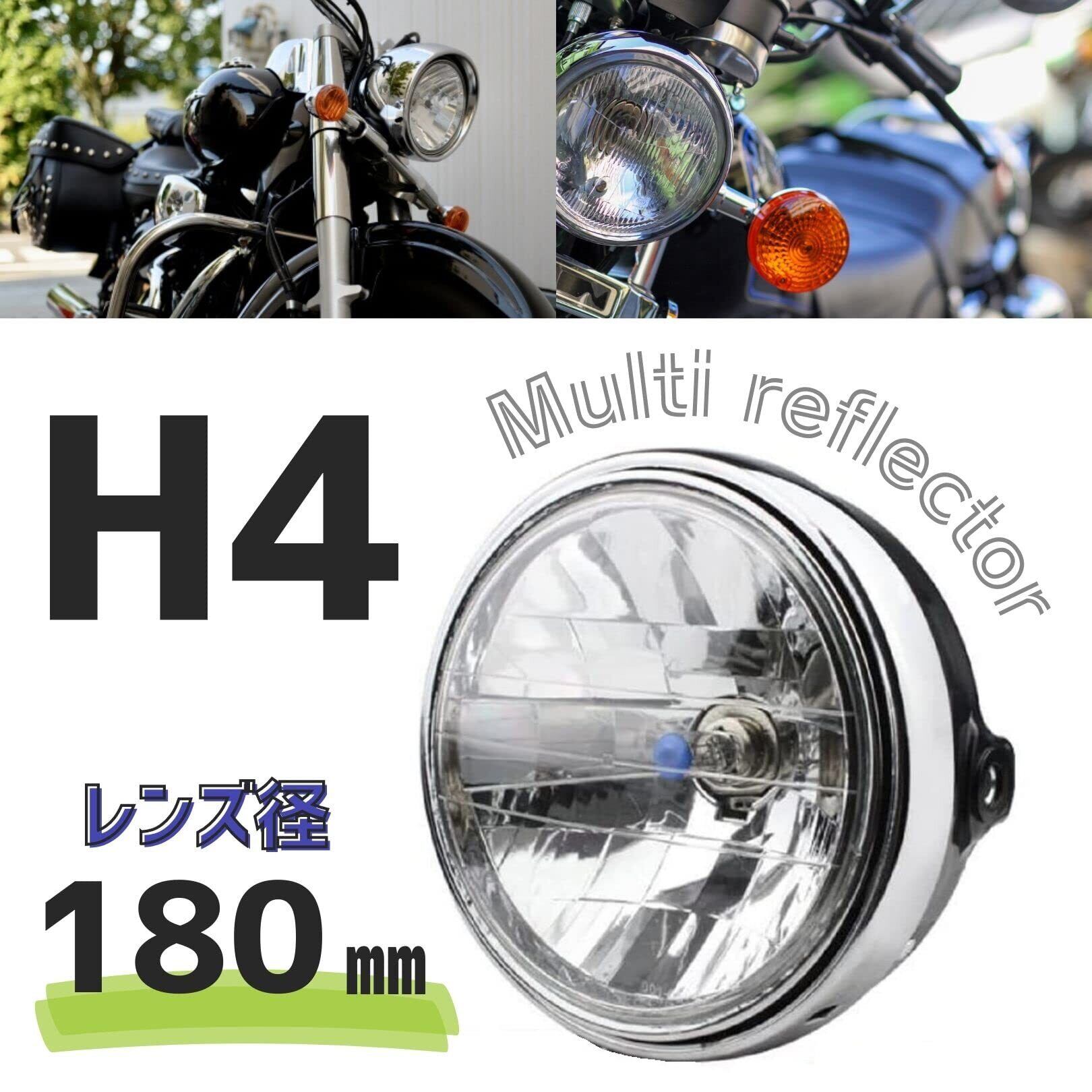 バイク 汎用 ヘッドライト リフレクター ダイヤモンドカット レンズ ハロゲン ランプ Ф180 バリオス ZRX ZR400 CB400SF VTR250 ゼファー 400 750 1100 旧車 (1個)