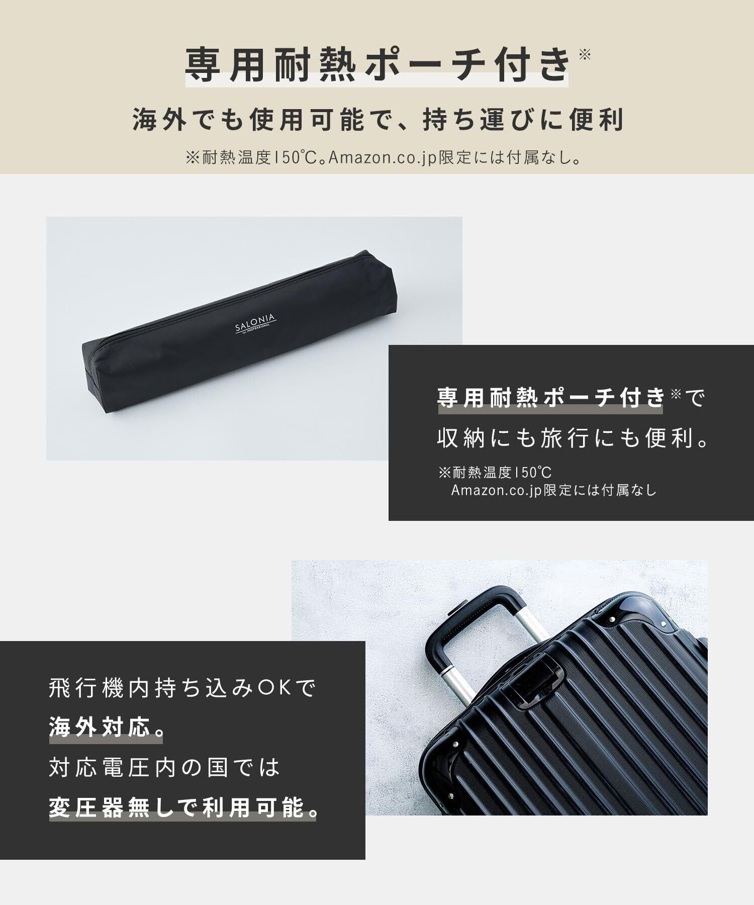 【持ち運びも収納にも便利】専用耐熱*ポーチ付き、さらに海外対応で旅行にもピッタリ(*耐熱温度150℃)