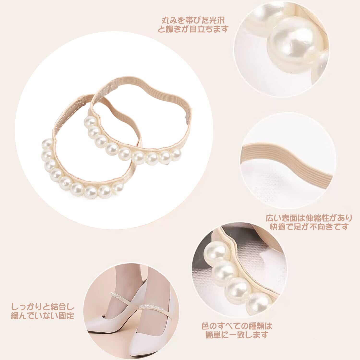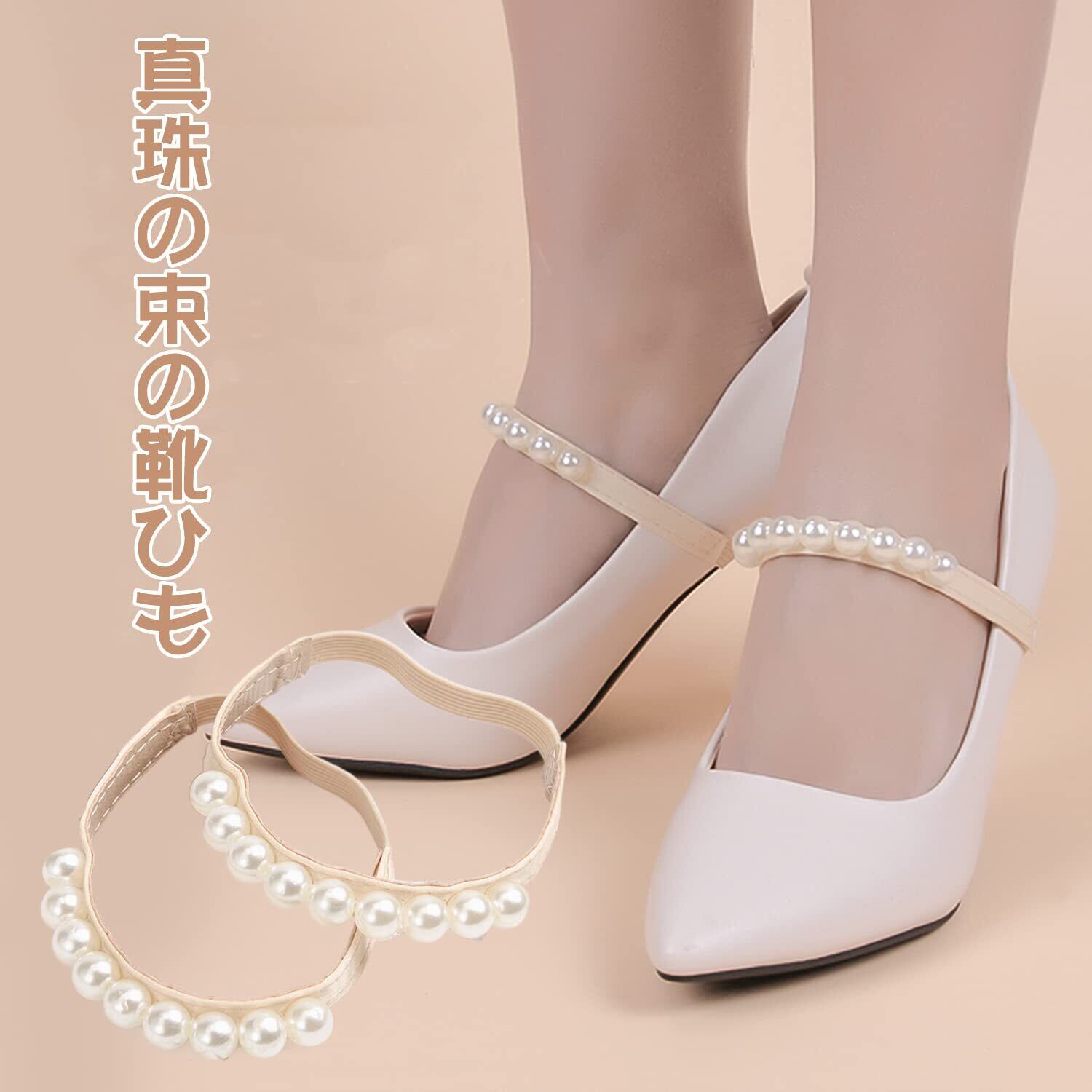 [RICISUNG] シューズスト 靴ストラップ シューズベルト 真珠 シューズバンド シューズストラップ 脱げ防止 靴ストラップ シューズベルト 調整可能 シューズアクセサリー