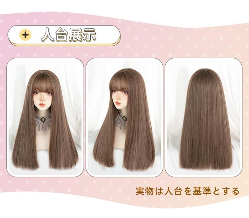Sizuuenn 女性用 ロングヘア ロングストレートヘア ぱっつん前髪 ライトブラウン 茶髪 ウィッグ 「温綿蜜茶」 蜜茶亜麻色 耐熱ウィッグ 高温ヘア糸 コスプレかつら 専用ネット イベント 学園祭 文化祭 撮影用 変装用