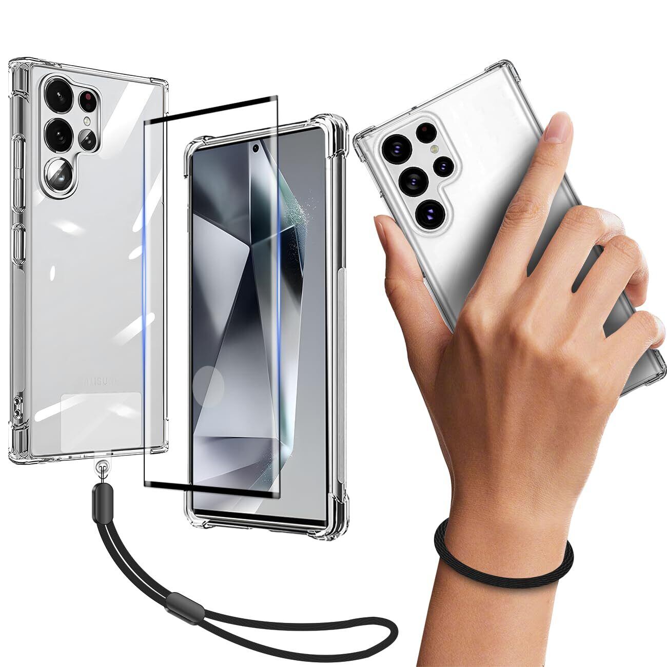 対応 Galaxy S24 Ultra 5G ケース クリア ケース Galaxy S24Ultra 5G SC-52E SCG26 SM-S928Q カバー TPU 保護ケース カバー背面 + GalaxyS24 Ultra 5G ガラスフィルム Galaxy S24 Ultra 5G フィルム フィルム Galaxy S24Ultra5G 強化ガラス 強化ガラス + ショート ストラップ 携帯ストラップ + TPU マテリアル
