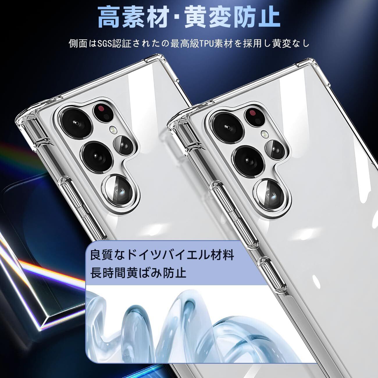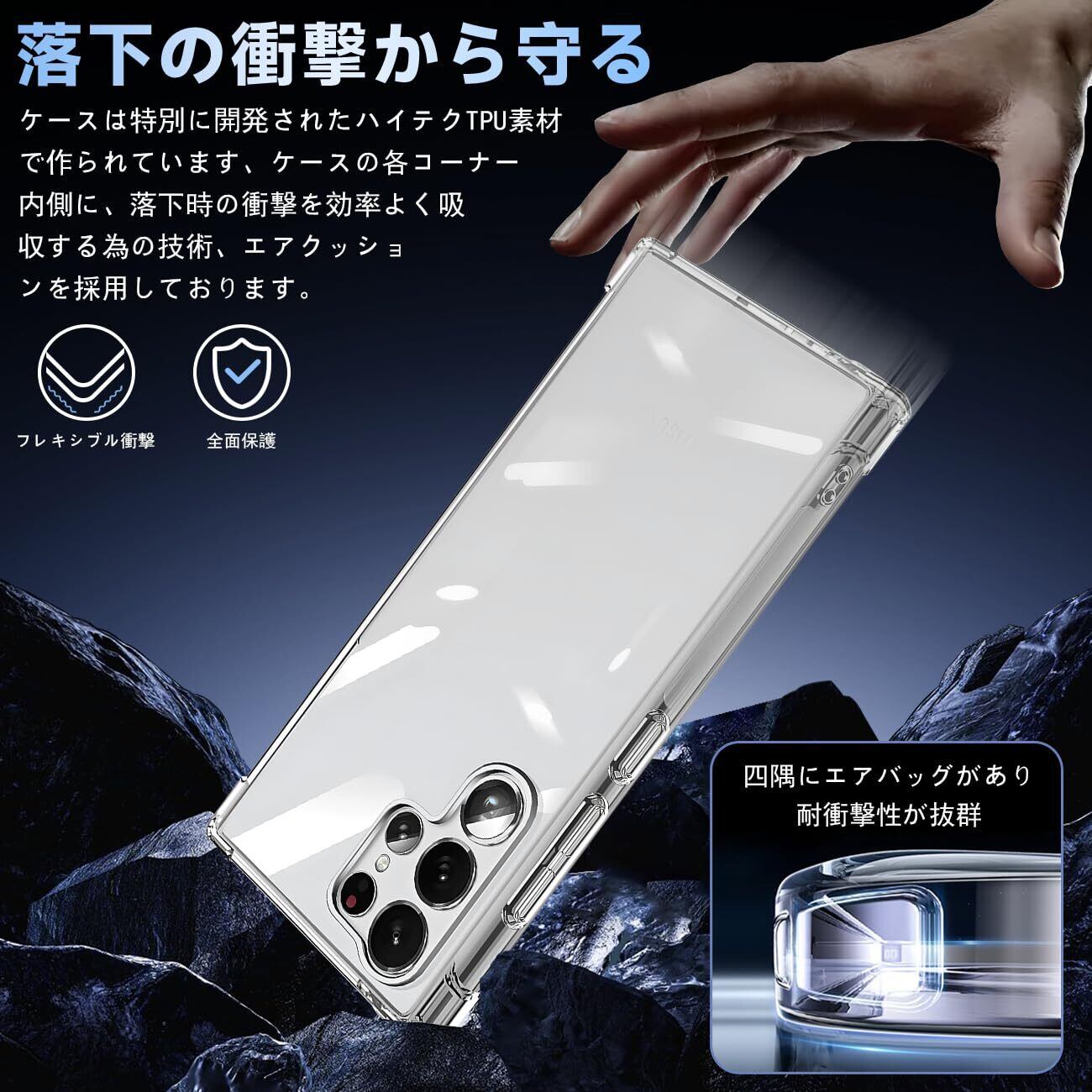 【360°フルガード 軍用グレード、高い耐衝撃性】 本製品はに対応 Galaxy S24 Ultra 5G する透明ケースです。外側のシェルは高い耐黄い耐性を備えた最先端技術ADMを採用しております。しかも環境にやさしく、無毒で無味の高品質の素材を使用して、酸化防止処理しており、長年でも黄色くなりません。多数回のテストした後、2mの高さで様々な角度から26回落としましたが、携帯電話が全然傷がありませんでした!更に四隅の耐衝撃性は通常の携帯電話ケースの5倍に達し、携帯電話を全面的に保護できます。(ご注意:ご購入前機種をよくご確認くださいね。間違った機種の購入による使えないことを避けてください)
