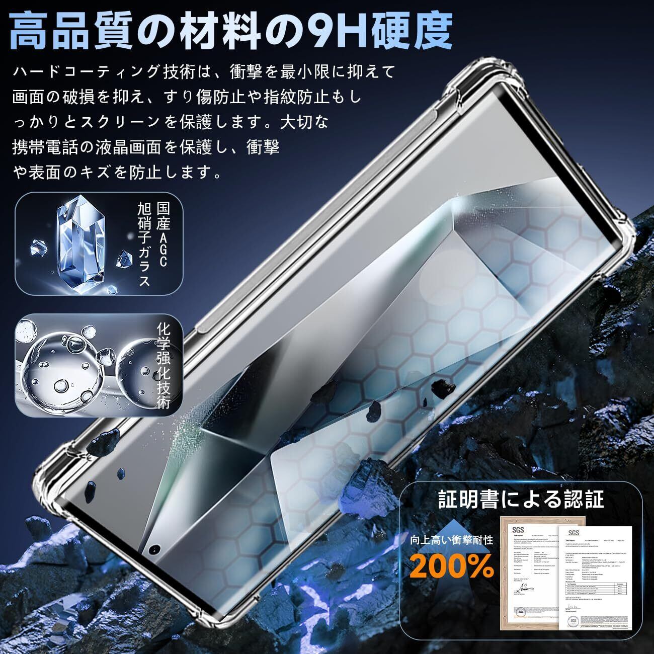 【専用設計·簡単に貼り付け】専用 Galaxy S24 Ultra 5G SC-52E SCG26 SM-S928Q 液晶画面保護ガラスフィルム。本商品は日本素材のAGC 旭硝子 素材を採用して作られております。フィルムのシリコン自己吸着層により、スチールフィルムを携帯電話に合わせて軽く置くだけで、気泡が入らないように簡単に取り付けられます。(重点説明:フロントカメラのカメラ穴についてですが、ほこり・異物などの堆積を防止するため、ガラスフィルムにカメラ穴を開けていません。Seninhiのガラスフィルム 、通過率は99.9%なので、フロントカメラの正常使用に全く影響が出ません。)*モデルによってサイズが異なりますので、モデルを確認してご購入ください。